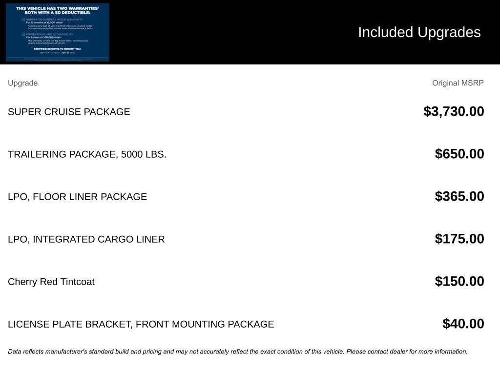 * 24 months/24,000 miles (whichever comes first) Certified Pre-Owned Scheduled Maintenance Plan and 3 days/150 miles (whichever comes first) Vehicle Exchange Program. 1 month of OnStar Safety & Security Plan, Navigation Services, Remote Access Plan, and 1 month or 3GB of 4G LTE data (whichever comes first).