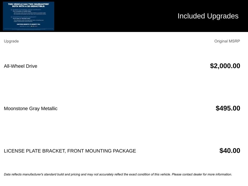 * 24 months/24,000 miles (whichever comes first) Certified Pre-Owned Scheduled Maintenance Plan and 3 days/150 miles (whichever comes first) Vehicle Exchange Program. 1 month of OnStar Safety & Security Plan, Navigation Services, Remote Access Plan, and 1 month or 3GB of 4G LTE data (whichever comes first).