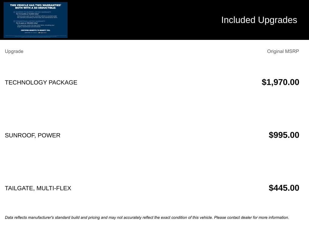 * Limited Warranty: 12 Month/12,000 Mile (whichever comes first) from certified purchase date