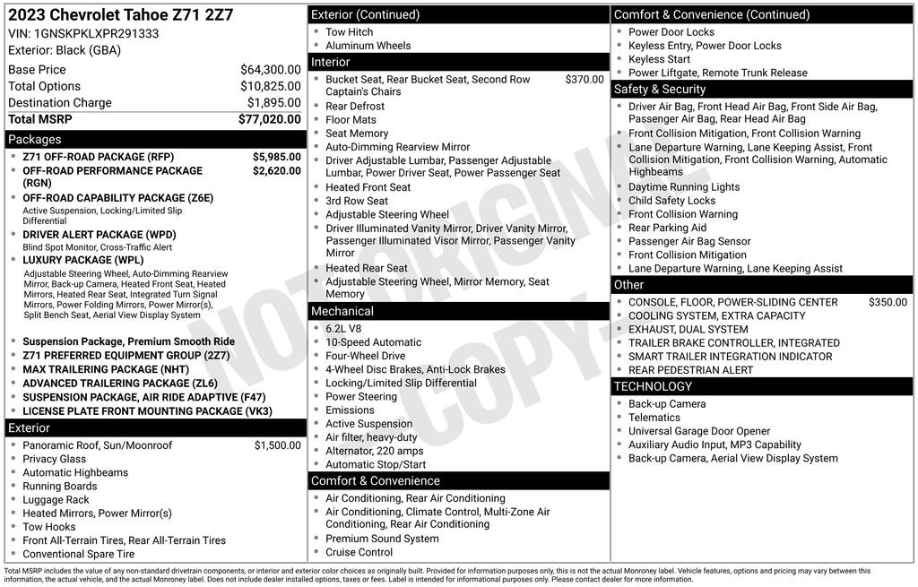 2023 Chevrolet Tahoe Z71 Black 4WD EcoTec3 6.2L V8 10-Speed Automatic with Overdrive