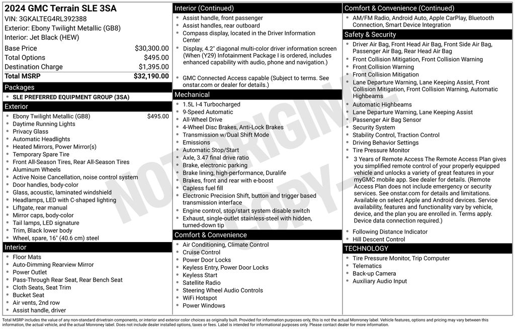 2024 GMC Terrain SLE Ebony Twilight Metallic AWD 1.5L DOHC 9-Speed Automatic