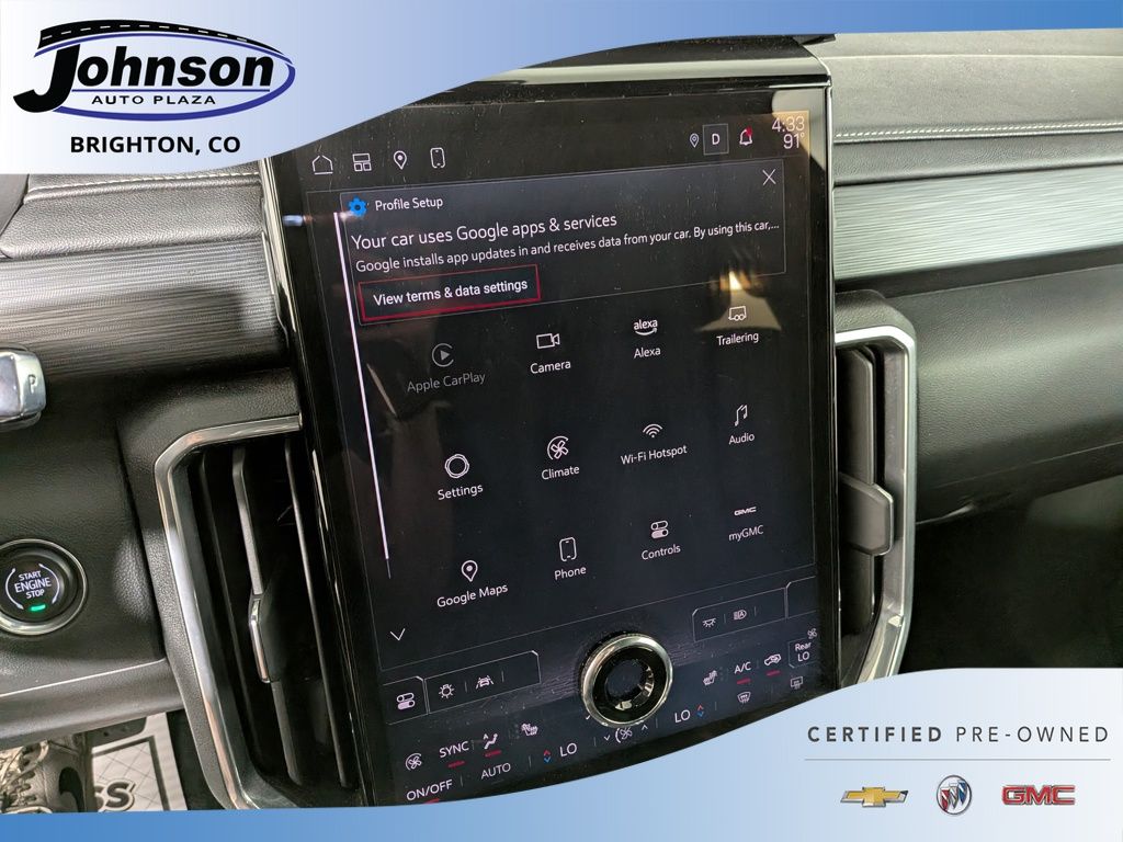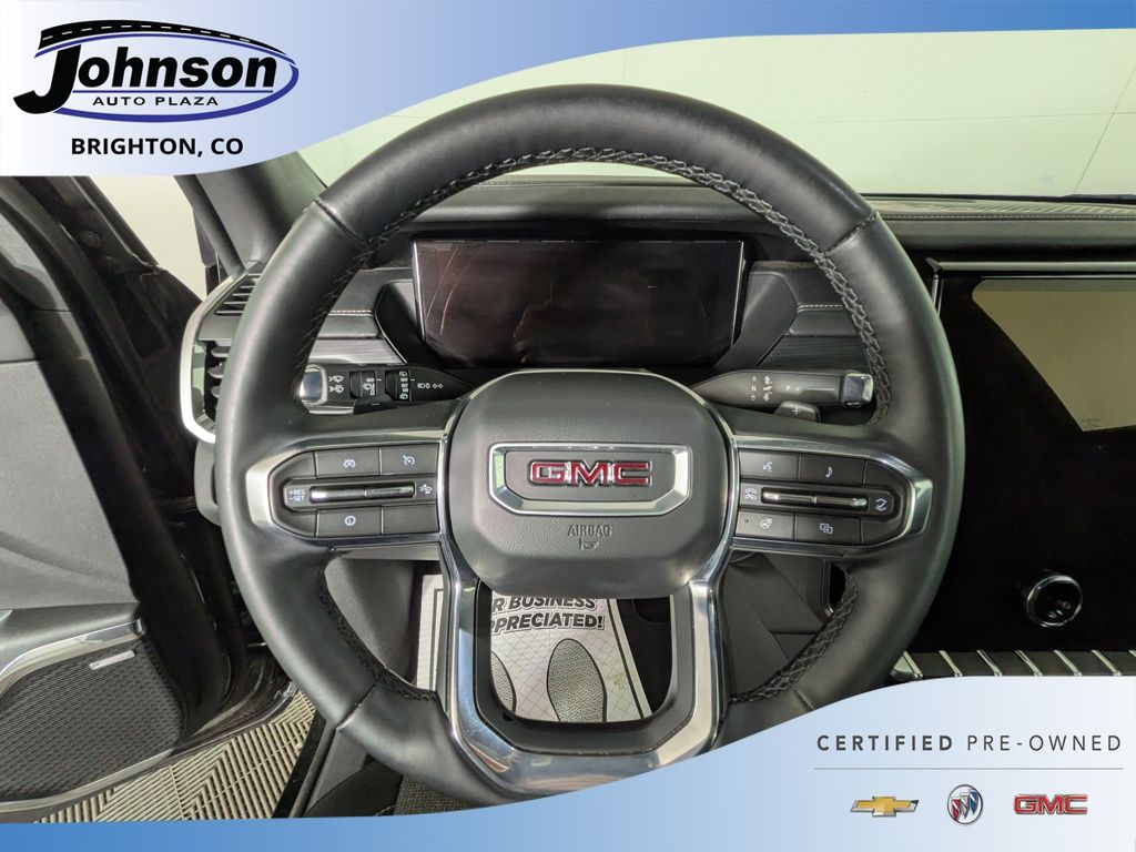 We look forward to serving you! Preferred Equipment Group 4SD, GMC Certified Pre-Owned Certified, AWD, After Dark Cloth, 12 Speakers, 18" x 7.5" Aluminum Wheels, 2-Way Driver Power Lumbar Seat Adjuster, 3.49 Final Drive Axle Ratio, 3rd row seats: split-bench, 4-Way Manual Front Passenger Seat Adjuster, 4-Wheel Disc Brakes, 8-Passenger Seating (2-3-3 Seating Configuration), 8-Way Power Driver Seat Adjuster, ABS brakes, Air Conditioning, Alloy wheels, AM/FM radio: SiriusXM with 360L, Apple CarPlay/Android Auto, Auto High-beam Headlights, Auto-dimming Rear-View mirror, Automatic temperature control, Bodyside moldings, Bose Premium 12-Speaker System w/Sub-Woofer, Brake assist, Bumpers: body-color, Cloth Seat Trim, Compass, Delay-off headlights, Driver door bin, Driver vanity mirror, Dual front impact airbags, Dual front side impact airbags, Electronic Stability Control, Emergency communication system: OnStar Services capable, Exterior Parking Camera Rear, Four wheel independent suspension, Front anti-roll bar, Front Bucket Seats, Front Center Armrest, Front dual zone A/C, Front fog lights, Front License Plate Bracket, Front reading lights, Fully automatic headlights, Heated door mirrors, Heated Driver & Front Passenger Seats, Heated front seats, Heated steering wheel, Illuminated entry, Leather steering wheel, Low tire pressure warning, Navigation System, Occupant sensing airbag, Outside temperature display, Overhead airbag, Overhead console, Panic alarm, Passenger door bin, Passenger vanity mirror, Power door mirrors, Power driver seat, Power Liftgate, Power steering, Power windows, Radio data system, Radio: 15" Premium GMC Infotainment System, Rear air conditioning, Rear anti-roll bar, Rear reading lights, Rear seat center armrest, Rear side impact airbag, Rear window defroster, Rear window wiper, Remote keyless entry, Security system, SiriusXM w/360L, Speed control, Speed-sensing steering, Split folding rear seat, Spoiler, Sport steering wheel, Steering wheel mounted audio controls, Tachometer, Telescoping steering wheel, Tilt steering wheel, Traction control, Trip computer, Turn signal indicator mirrors, Variably intermittent wipers, and VoltmeteR.