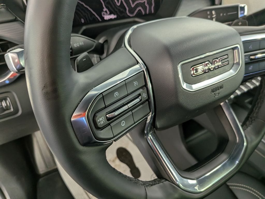 We look forward to serving you! All-Weather Package (1st and 2nd Row All-Weather Floor Mats and 3rd Row All-Weather Floor Liner), Black Edition (Gloss Black Roof Rails, Performance Suspension, and Wheels: 22" x 8.5" Gloss Black Aluminum), Elevation Premium Package (3-Channel Programmable Universal Home Remote, 6-Way Power Front Passenger Seat Adjuster, 7-Passenger Seating (2-2-3 Seating Configuration), Auto-Dimming Inside Rear-View Mirror, CoreTec Seat Trim, Front Passenger Power Lumbar Seat Adjuster, and Wheels: 20" x 8" Bright Silver Aluminum), Preferred Equipment Group 4SD, GMC Certified Pre-Owned Certified, AWD, After Dark Cloth, 12 Speakers, 18" x 7.5" Aluminum Wheels, 2-Way Driver Power Lumbar Seat Adjuster, 3.49 Final Drive Axle Ratio, 3rd row seats: split-bench, 4-Way Manual Front Passenger Seat Adjuster, 4-Wheel Disc Brakes, 8-Passenger Seating (2-3-3 Seating Configuration), 8-Way Power Driver Seat Adjuster, ABS brakes, Air Conditioning, Alloy wheels, AM/FM radio: SiriusXM with 360L, Apple CarPlay/Android Auto, Auto High-beam Headlights, Auto-dimming Rear-View mirror, Automatic temperature control, Bodyside moldings, Bose Premium 12-Speaker System with Sub-Woofer, Brake assist, Bumpers: body-color, Cloth Seat Trim, Compass, Delay-off headlights, Driver door bin, Driver vanity mirror, Dual front impact airbags, Dual front side impact airbags, Electronic Stability Control, Emergency communication system: OnStar Services capable, Exterior Parking Camera Rear, Four wheel independent suspension, Front anti-roll bar, Front Bucket Seats, Front Center Armrest, Front dual zone A/C, Front fog lights, Front License Plate Bracket, Front reading lights, Fully automatic headlights, Heated door mirrors, Heated Driver and Front Passenger Seats, Heated front seats, Heated steering wheel, Illuminated entry, Leather steering wheel, Low tire pressure warning, Navigation System, Occupant sensing airbag, Outside temperature display, Overhead airbag, Overhead console, Panic alarm, Passenger door bin, Passenger vanity mirror, Power door mirrors, Power driver seat, Power Liftgate, Power steering, Power windows, Radio data system, Radio: 15" Diagonal Premium GMC Infotainment System, Rear air conditioning, Rear anti-roll bar, Rear reading lights, Rear seat center armrest, Rear side impact airbag, Rear window defroster, Rear window wiper, Remote keyless entry, Security system, SiriusXM with 360L, Speed control, Speed-sensing steering, Split folding rear seat, Spoiler, Sport steering wheel, Steering wheel mounted audio controls, Tachometer, Telescoping steering wheel, Tilt steering wheel, Traction control, Trip computer, Turn signal indicator mirrors, Variably intermittent wipers, and VoltmeteR.