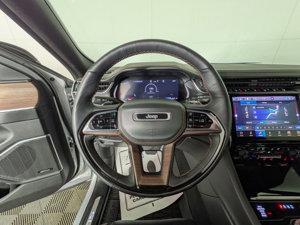 We look forward to serving you! ADV Protech Group IV (Heads-Up Display, Night Vision w/Pedestrian-Animal Detection, and Rearview Autodim Digital Display Mirror), Luxury Tech Group V (2nd-Row Manual Window Shades and Wireless Charging Pad), Quick Order Package 23S, FCA US LLC Certified Pre-Owned Certified, 4WD, 10 Speakers, 3.45 Rear Axle Ratio, 4-Wheel Disc Brakes, ABS brakes, Active Noise Control System, Adaptive suspension, Air Conditioning, Alloy wheels, AM/FM radio: SiriusXM with 360L, Anti-whiplash front head restraints, Audio memory, Auto High-beam Headlights, Auto-dimming door mirrors, Auto-dimming Rear-View mirror, Auto-leveling suspension, Automatic temperature control, Auxiliary Battery, Brake assist, Bumpers: body-color, Compass, Delay-off headlights, Driver door bin, Driver vanity mirror, Dual front impact airbags, Dual front side impact airbags, Electronic Stability Control, Emergency communication system, Four wheel independent suspension, Front anti-roll bar, Front Bucket Seats, Front Center Armrest w/Storage, Front dual zone A/C, Front fog lights, Front License Plate Bracket, Front reading lights, Fully automatic headlights, Garage door transmitter, Genuine wood dashboard insert, Genuine wood door panel insert, Heated door mirrors, Heated front seats, Heated rear seats, Heated steering wheel, Illuminated entry, Knee airbag, Leather steering wheel, Low tire pressure warning, Memory seat, Nappa Leather Seats, Navigation System, Normal Duty Suspension, Occupant sensing airbag, Outside temperature display, Overhead airbag, Overhead console, Panic alarm, Passenger door bin, Passenger vanity mirror, Power door mirrors, Power driver seat, Power Liftgate, Power moonroof, Power passenger seat, Power steering, Power windows, Radio data system, Radio: Uconnect 5 Nav w/10.1" Display, Rain sensing wipers, Rear air conditioning, Rear anti-roll bar, Rear dual zone A/C, Rear reading lights, Rear seat center armrest, Rear window defroster, Rear window wiper, Remote keyless entry, Security system, Speed control, Speed-Sensitive Wipers, Split folding rear seat, Spoiler, Steering wheel memory, Steering wheel mounted audio controls, Tachometer, Telescoping steering wheel, Tilt steering wheel, Traction control, Trip computer, Turn signal indicator mirrors, Variably intermittent wipers, Ventilated front seats, Voltmeter, and Wheels: 20" x 8.5" Fully Painted Aluminum SilveR.