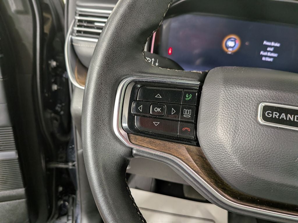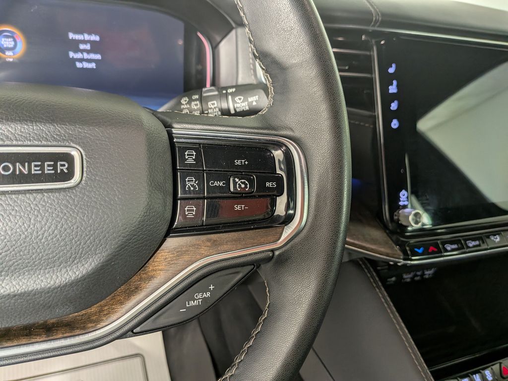 We look forward to serving you! Flexible Seating Group (2nd Row Dual Charge-Only USB Ports, 40/20/40 Power Recline Tip/Slide, and 8-Passenger Seating), Quick Order Package 23S, Two Tone Paint Group, FCA US LLC Certified Pre-Owned Certified, 19 Speakers, 3.92 Rear Axle Ratio, 3rd row seats: bench, 4-Wheel Disc Brakes, ABS brakes, Adjustable pedals, Air Conditioning, Alloy wheels, AM/FM radio: SiriusXM with 360L, Anti-whiplash front head restraints, Audio memory, Auto High-beam Headlights, Auto-dimming door mirrors, Auto-dimming Rear-View mirror, Auto-leveling suspension, Automatic temperature control, Body Color Roof, Brake assist, Bumpers: body-color, Compass, Delay-off headlights, Driver door bin, Driver vanity mirror, Driver's Seat Mounted Armrest, Dual front impact airbags, Dual front side impact airbags, Electronic Stability Control, Emergency communication system: Automatic SOS Call, Four wheel independent suspension, Front anti-roll bar, Front Bucket Seats, Front Center Armrest w/Storage, Front dual zone A/C, Front fog lights, Front reading lights, Fully automatic headlights, Garage door transmitter, Genuine wood console insert, Genuine wood dashboard insert, Genuine wood door panel insert, Heads-Up Display, Heated door mirrors, Heated front seats, Heated rear seats, Heated steering wheel, Illuminated entry, Knee airbag, Leather steering wheel, Leather Trimmed Bucket Seats, Low tire pressure warning, Memory seat, Navigation System, Normal Duty Suspension, Occupant sensing airbag, Outside temperature display, Overhead airbag, Overhead console, Panic alarm, Passenger door bin, Passenger seat mounted armrest, Passenger vanity mirror, Pedal memory, Power adjustable front head restraints, Power door mirrors, Power driver seat, Power Liftgate, Power moonroof, Power passenger seat, Power steering, Power windows, Radio data system, Radio: Uconnect 5 Nav w/12.0" Display, Rain sensing wipers, Rear air conditioning, Rear anti-roll bar, Rear dual zone A/C, Rear reading lights, Rear seat center armrest, Rear window defroster, Rear window wiper, Reclining 3rd row seat, Remote keyless entry, Security system, Speed control, Speed-sensing steering, Speed-Sensitive Wipers, Split folding rear seat, Steering wheel memory, Steering wheel mounted audio controls, Tachometer, Telescoping steering wheel, Tilt steering wheel, Traction control, Trip computer, Turn signal indicator mirrors, Variably intermittent wipers, Ventilated front seats, Voltmeter, and Wheels: 20" x 9.0" Premium 3 AluminuM.