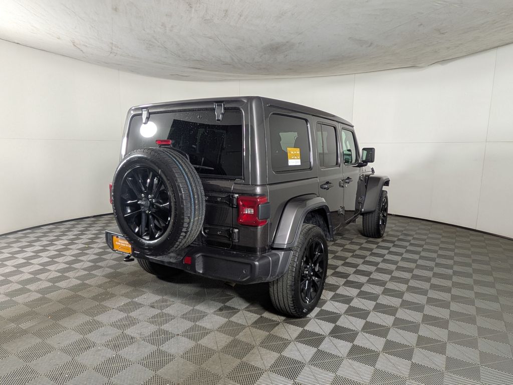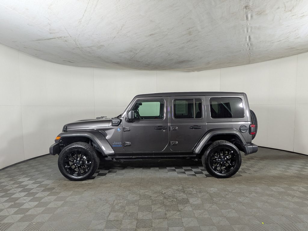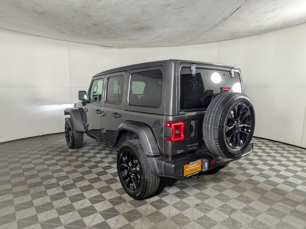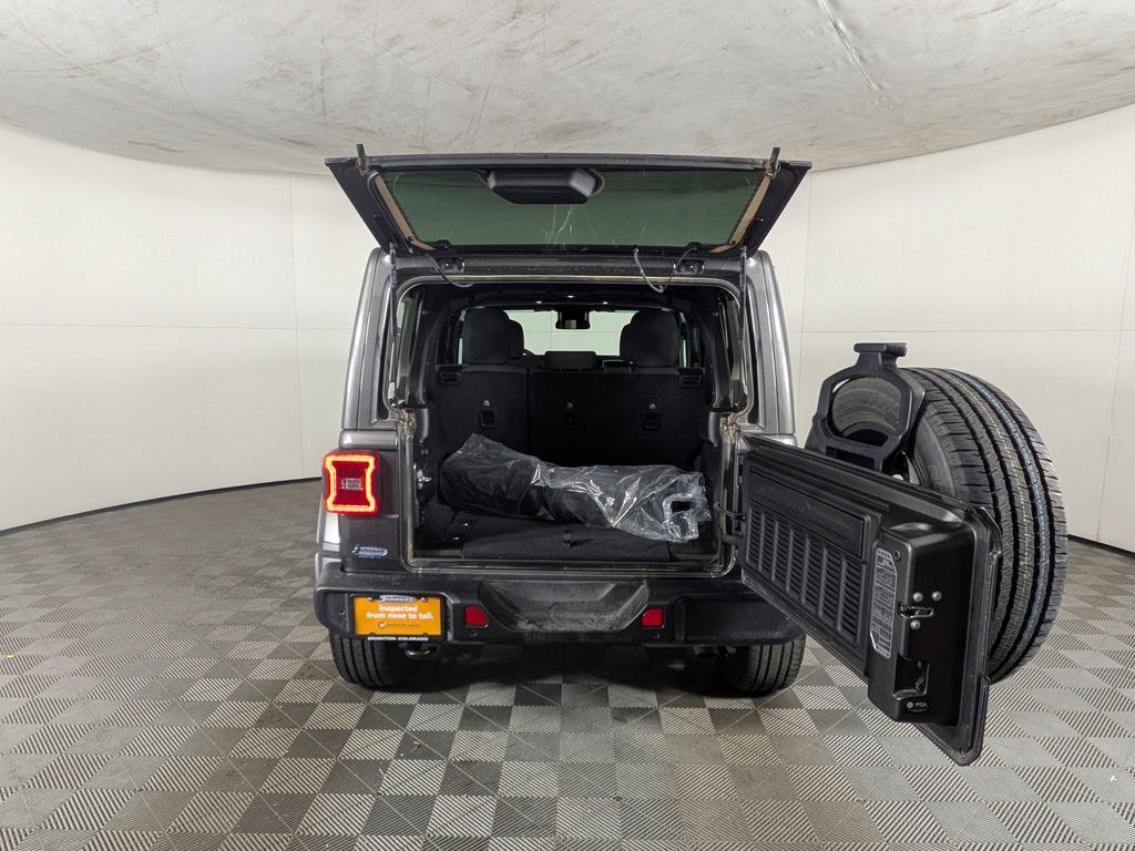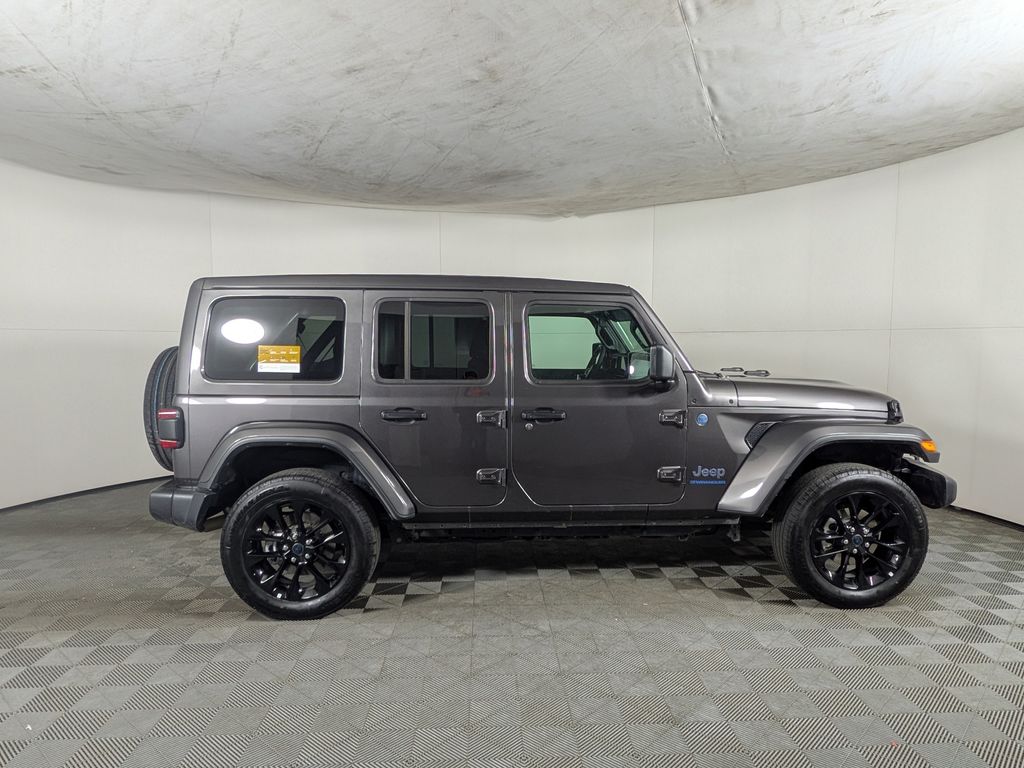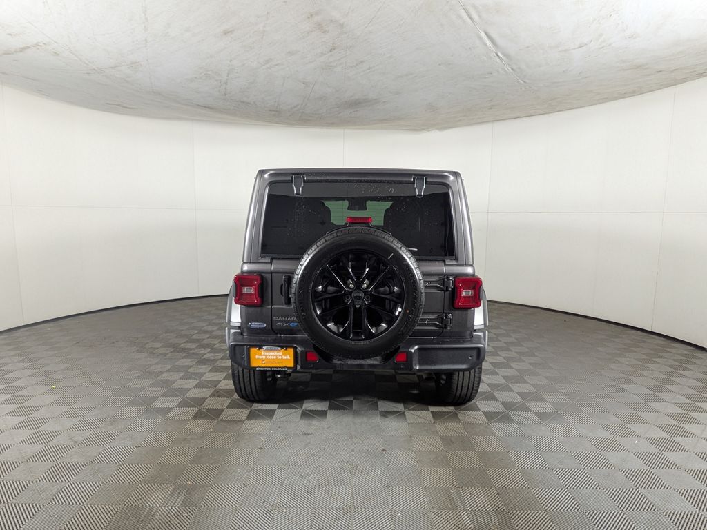 We look forward to serving you! Quick Order Package 29P Sahara 4xe, Safety Group (Auto High Beam Headlamp Control, Blind Spot & Cross Path Detection, and ParkSense Rear Park Assist System), FCA US LLC Certified Pre-Owned Certified, 2.0L I4 DOHC, 3.73 Rear Axle Ratio, 4-Wheel Disc Brakes, 4G LTE Wi-Fi Hot Spot, 8 Speakers, ABS brakes, Air Conditioning, Alloy wheels, AM/FM radio: SiriusXM, Apple CarPlay, Apple CarPlay/Android Auto, Automatic temperature control, Brake assist, Cloth Low-Back Bucket Seats, Compass, Connectivity - US/Canada, Delay-off headlights, Driver door bin, Driver vanity mirror, Dual front impact airbags, Dual front side impact airbags, Electronic Stability Control, Emergency communication system: Jeep Connect, Front anti-roll bar, Front Bucket Seats, Front Center Armrest w/Storage, Front dual zone A/C, Front fog lights, Front License Plate Bracket (DISC), Front reading lights, Fully automatic headlights, Google Android Auto, Heated door mirrors, Heated front seats, Heated steering wheel, Illuminated entry, Integrated Center Stack Radio, Integrated roll-over protection, Integrated Voice Command w/Bluetooth, Low tire pressure warning, Occupant sensing airbag, Outside temperature display, Overhead airbag, Panic alarm, ParkView Rear Back-Up Camera, Passenger door bin, Passenger vanity mirror, Power door mirrors, Power steering, Power Top Quarter Window Storage Bag, Power windows, Radio data system, Radio: Uconnect 5 w/12.3" Display, Rear anti-roll bar, Rear reading lights, Rear seat center armrest, Rear Window Defroster, Rear Window Wiper/Washer, Remote keyless entry, Removable Rear Quarter Windows, Security system, Sky 1-Touch Power Top, Speed control, Split folding rear seat, Sport Suspension, Steering wheel mounted audio controls, Tachometer, Telescoping steering wheel, Tilt steering wheel, Traction control, Trip computer, Variably intermittent wipers, Voltmeter, and Wheels: 20" x 8" Painted Black AluminuM.