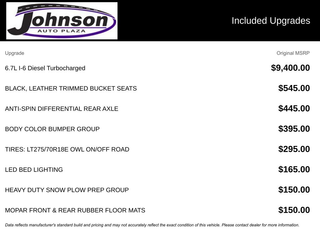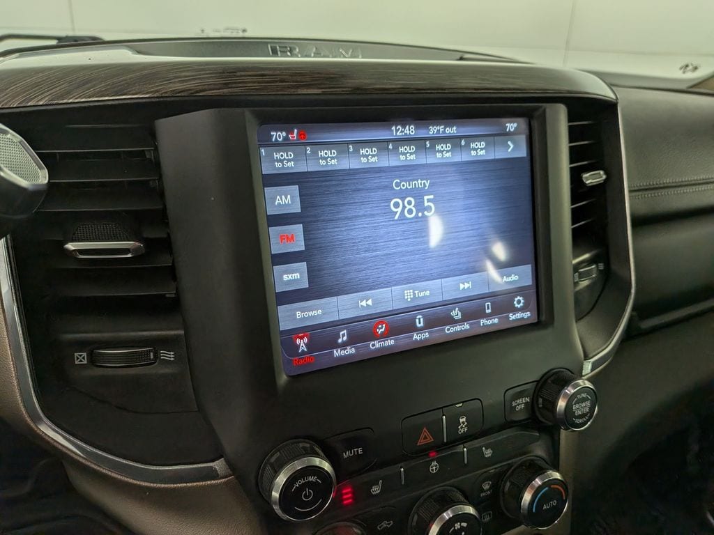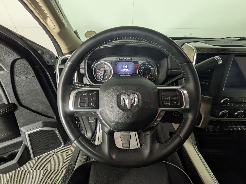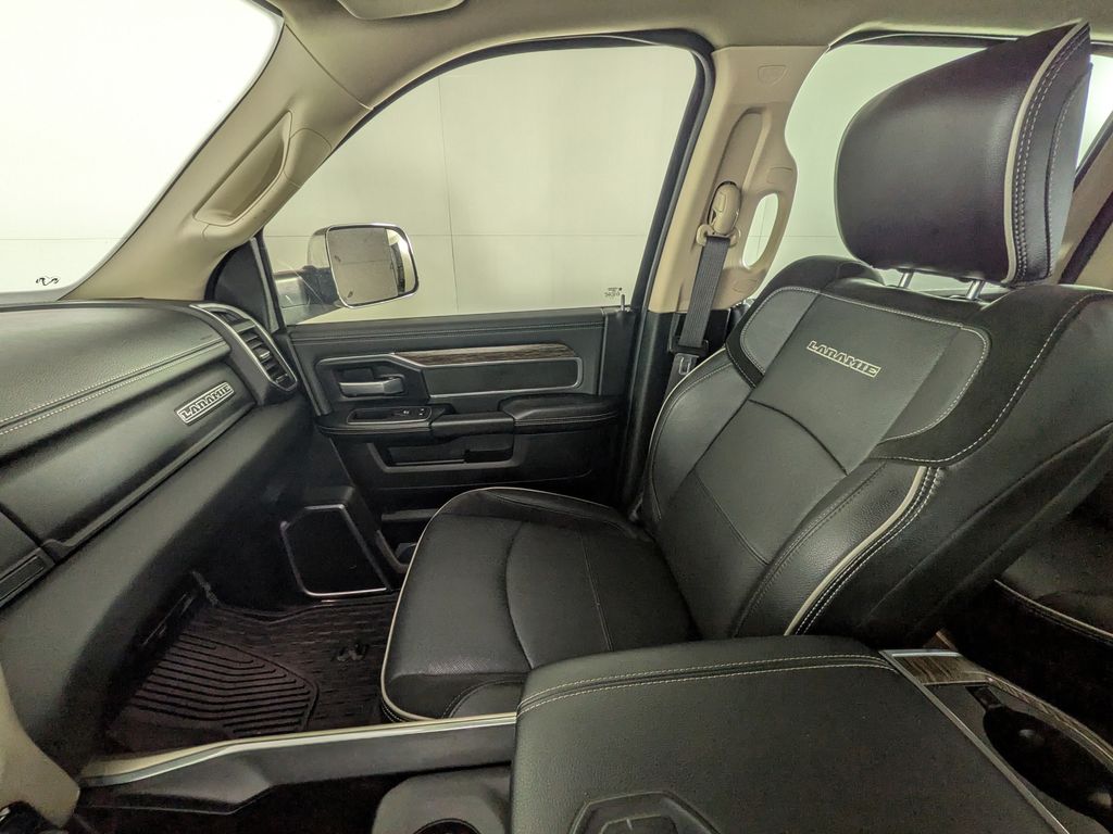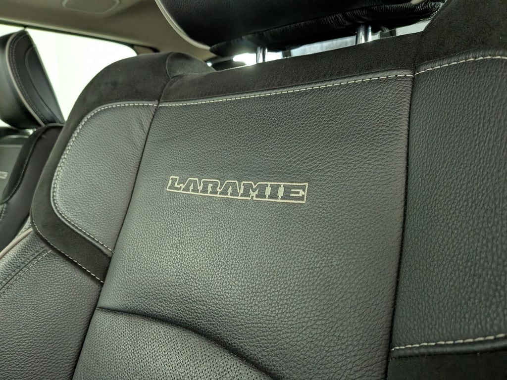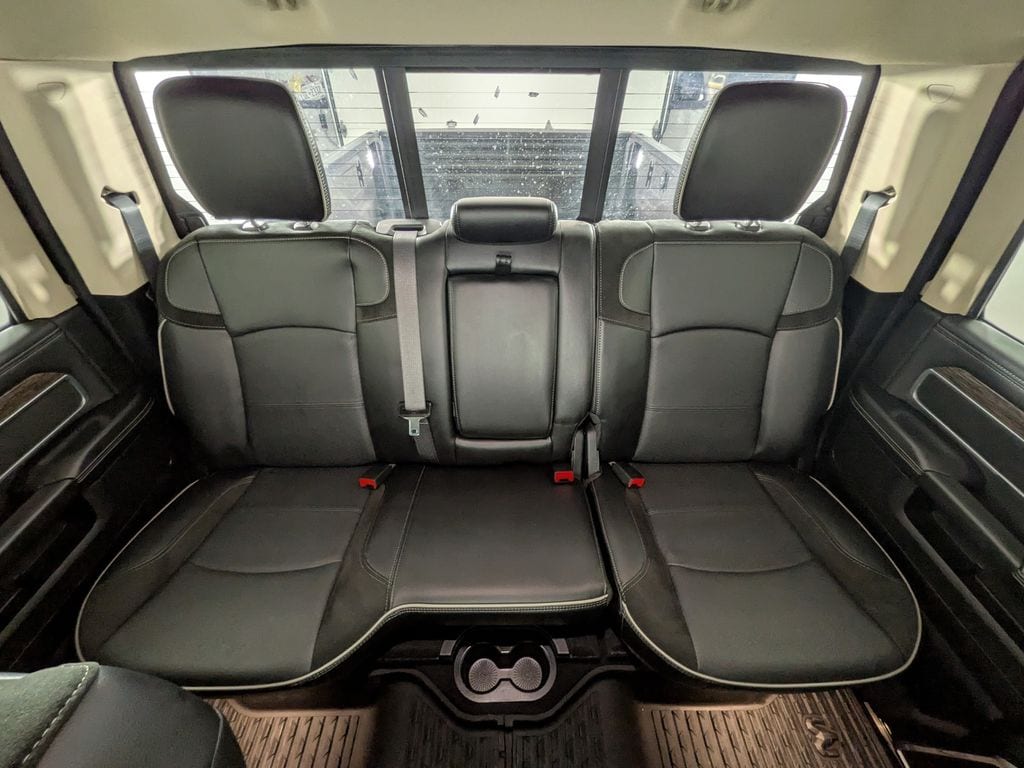 We look forward to serving you! Body Color Bumper Group (Painted Front Bumper and Painted Rear Bumper), Cold Weather Group (Engine Block Heater and MOPAR Winter Front Grille Cover), Heavy Duty Snow Plow Prep Group (220 Amp Alternator), Protection Group (Tow Hooks), Quick Order Package 2HH Laramie, FCA US LLC Certified Pre-Owned Certified, 10 Speakers, 115V Auxiliary Rear Power Outlet, 2 Way Rear Headrest Seat, 3.73 Axle Ratio, 4 Way Front Headrests, 4-Wheel Disc Brakes, 8.4" Touchscreen Display, ABS brakes, Active Noise Control System, Adjustable pedals, Air Conditioning, Alloy wheels, AM/FM radio: SiriusXM, Anti-Spin Differential Rear Axle, Apple CarPlay, Apple CarPlay/Android Auto, Auto-dimming Rear-View mirror, Automatic temperature control, Brake assist, Bumpers: chrome, Compass, Delay-off headlights, Driver door bin, Driver vanity mirror, Dual front impact airbags, Dual front side impact airbags, Electronic Stability Control, Electronically Controlled Throttle, Front anti-roll bar, Front Center Armrest w/Storage, Front dual zone A/C, Front fog lights, Front License Plate Bracket, Front reading lights, Front Seat Back Map Pockets, Fully automatic headlights, Garage door transmitter, Google Android Auto, GPS Antenna Input, Heated door mirrors, Heated Front Seats, Heated front seats, Heated Steering Wheel, Heated steering wheel, Illuminated entry, Integrated Center Stack Radio, Integrated Voice Command w/Bluetooth, Leather steering wheel, Leather Trim 40/20/40 Bench Seat, LED Bed Lighting, Low tire pressure warning, Manufacturer's Statement of Origin, MOPAR Front & Rear Rubber Floor Mats, Occupant sensing airbag, Outside temperature display, Overhead airbag, Overhead console, Panic alarm, ParkView Rear Back-Up Camera, Passenger door bin, Passenger vanity mirror, Power 2-Way Driver Lumbar Adjust, Power 2-Way Passenger Lumbar Adjust, Power Adjust 8-Way Driver Seat, Power Adjust 8-Way Front Passenger Seat, Power door mirrors, Power driver seat, Power passenger seat, Power steering, Power windows, Radio data system, Radio: Uconnect 4 w/8.4" Display, Rear 60/40 Folding Seat, Rear anti-roll bar, Rear reading lights, Rear seat center armrest, Rear step bumper, Rear window defroster, Remote keyless entry, Security system, SiriusXM Satellite Radio, Speed control, Split folding rear seat, Steering wheel mounted audio controls, Tachometer, Tilt steering wheel, Tip Start, Traction control, Trip computer, Turn signal indicator mirrors, Variably intermittent wipers, Vendor Painted Cargo Box Tracking, Voltmeter, and Wheels: 18" x 8.0" Polished AluminuM.