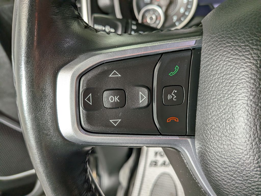We look forward to serving you! Bed Utility Group (MOPAR 4 Adjustable Cargo Tie-Down Hooks and Pick-Up Box Lighting), Laramie Level An Equipment Group (DISC) (Auto High Beam Headlamp Control, Foam Bottle Insert (Door Trim Panel), ParkSense Front/Rear Park Assist w/Stop, Rain Sensitive Windshield Wipers, Rear 60/40 Folding Split Recline Seat, and Remote Tailgate Release), Quick Order Package 27H Laramie, Sport Appearance Package (#1 Seat Foam Cushion, 3 Rear Seat Head Restraints, 4 Way Front Headrests, All Plant-Installed Decals, Auto-Dimming Exterior Driver Mirror, Black Interior Accents, Body Color Door Handles, Body Color Exterior Mirrors, Body Color Front Bumper, Body Color Premium Power Mirrors, Body Color Rear Bumper w/Step Pads, Bucket Seats, Convex Wide-Angle Mirror Insert, Delete LED Lamp - Floor Console Bin, Driver Seat Memory, Exterior Mirrors Courtesy Lamps, Exterior Mirrors w/Heating Element, Exterior Mirrors w/Memory, Exterior Mirrors w/Supplemental Signals, Front Seat Back Map Pockets, Full Length Upgraded Floor Console, Grille Surround 3 Body Color Tex 2 Black, Heated Front Seats, Heated Steering Wheel, Leather Trimmed Bucket Seats, Power 2-Way Driver Lumbar Adjust, Power 2-Way Passenger Lumbar Adjust, Power 8-Way Driver & Passenger Seats, Power-Folding Mirrors, Rear 60/40 Folding Seat, Sport Decal, Sport Performance Hood, Twill Film Appliques, and Ventilated Front Seats), FCA US LLC Certified Pre-Owned Certified, 10 Speakers, 12" Touchscreen Display, 2nd Row In Floor Storage Bins, 33 Gallon Fuel Tank, 4-Wheel Disc Brakes, 48V Belt Starter Generator, 4G LTE Wi-Fi Hot Spot, 8.4" Touchscreen Display, ABS brakes, Adjustable pedals, Air Conditioning, All R1 High Radios, All Radio Equipped Vehicles, Alloy wheels, AM/FM radio: SiriusXM, Anti-Spin Differential Rear Axle, Apple CarPlay, Apple CarPlay/Android Auto, Audio memory, Auto-dimming door mirrors, Auto-dimming Rear-View mirror, Automatic temperature control, Brake assist, Bumpers: chrome, Chrome Exterior Mirrors, Compass, Connected Travel & Traffic Services, Connectivity - US/Canada, Delay-off headlights, Disassociated Touchscreen Display, Driver door bin, Driver vanity mirror, Dual front impact airbags, Dual front side impact airbags, Electronic Stability Control, For Details, Visit DriveUconnect.com, For More Info, Call 800-643-2112, Front anti-roll bar, Front Center Armrest w/Storage, Front dual zone A/C, Front fog lights, Front License Plate Bracket, Front reading lights, Front wheel independent suspension, Fully automatic headlights, Garage door transmitter, Global Telematics Box Module (TBM), Google Android Auto, GPS Antenna Input, GPS Navigation, HD Radio, Heated door mirrors, Heated front seats, Heated steering wheel, Heavy-Duty Engine Cooling, Illuminated entry, Integrated Center Stack Radio, Integrated Voice Command w/Bluetooth, Leather steering wheel, Leather Trim 40/20/40 Bench Seat, Low tire pressure warning, Manufacturer's Statement of Origin, Memory sea