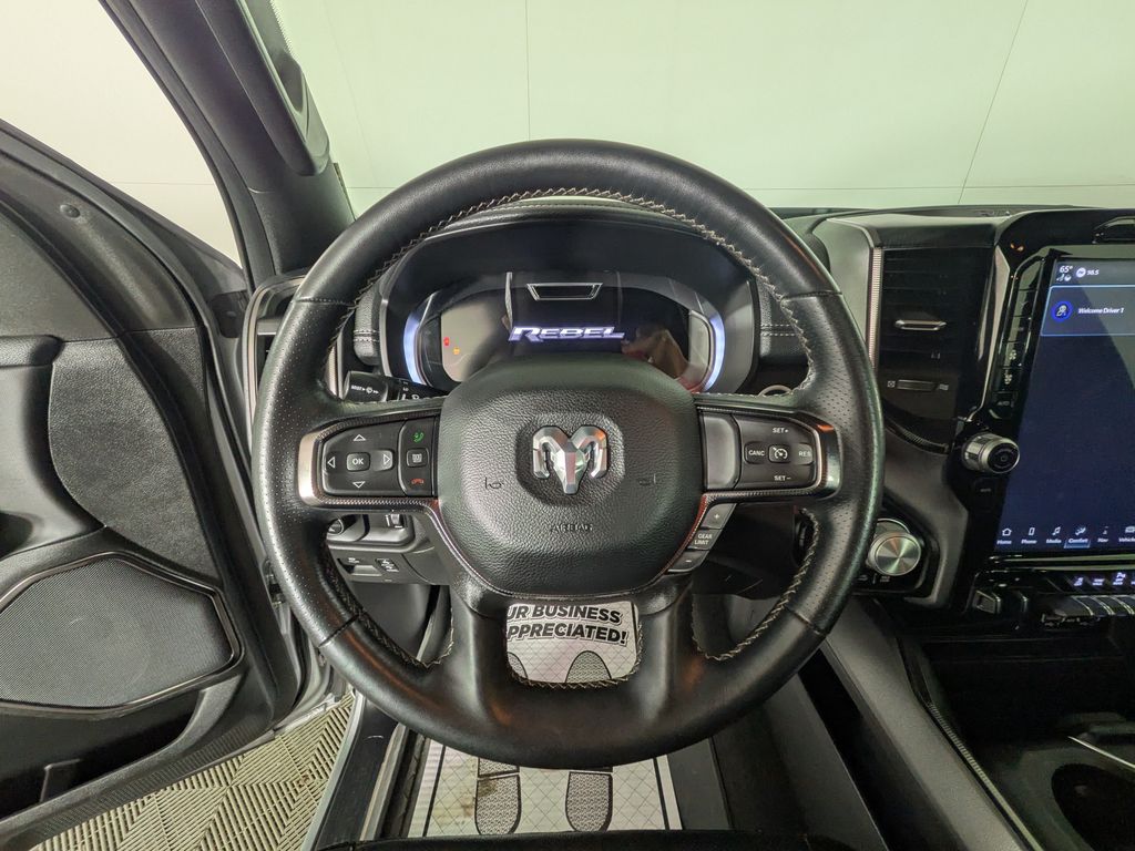 We look forward to serving you! Comfort/Convenience Group (Exterior Mirrors w/Memory, Heated Second Row Seats, Power 8-Way Driver & Passenger Seats, Remote Tailgate Release, and Wireless Charging Pad), Night Edition (Black Front Bumper w/Black Plate, Grille Surround 2 Black Texture 3 Black, RAM Grille Badge - Black, and Wheels: 18" x 8.0" Gloss Black), Quick Order Package 27W Rebel, Rebel Level 2 Equipment Group (115V Auxiliary Rear Power Outlet, 2-Door Passive Entry, Front Door Locks, 2nd Row In Floor Storage Bins, 4G LTE Wi-Fi Hot Spot, Accent Color Door Handles, Apple CarPlay, Auto-Dimming Exterior Driver Mirror, Black Premium Power Mirrors, Connected Travel & Traffic Services, Connectivity - US/Canada, Convex Wide-Angle Exterior Mirror Insert, Exterior Mirrors Courtesy Lamps, Exterior Mirrors w/Heating Element, Exterior Mirrors w/Supplemental Signals, Foam Bottle Insert (Door Trim Panel), For Details, Visit DriveUconnect.com, For More Info, Call 800-643-2112, Global Telematics Box Module (TBM), Google Android Auto, GPS Navigation, harman/kardon 19 Speaker Premium Sound, HD Radio, Heated Front Seats, Heated Steering Wheel, Integrated Voice Command w/Bluetooth, Media Hub w/2 Charge Only USBs, Off-Road Information Pages, ParkSense Front/Rear Park Assist w/Stop, Power 2-Way Driver Lumbar Adjust, Power 8-Way Driver Seat, Power Adjustable Pedals, Power-Folding Mirrors, Radio: Uconnect 5 Nav w/12.0" Display, Rain Sensitive Windshield Wipers, Rear Dome w/On/Off Switch Lamp, Rear Power Sliding Window, Rear Underseat Compartment Storage, Rear Window Defroster, Remote Start System, Security Alarm, SiriusXM Radio Service, SiriusXM w/360L, Sun Visors w/Illuminated Vanity Mirrors, Universal Garage Door Opener, and USB Host Flip), FCA US LLC Certified Pre-Owned Certified, 3.92 Rear Axle Ratio, 33 Gallon Fuel Tank, 4 Way Front Headrests, 4-Wheel Disc Brakes, 48V Belt Starter Generator, 6 Speakers, ABS brakes, Air Conditioning, Alloy wheels, AM/FM radio: SiriusXM with 360L, Apple CarPlay/Android Auto, Auto-dimming Rear-View mirror, Automatic temperature control, Blind Spot & Cross Path Detection, Brake assist, Bucket Seats, Class IV Receiver Hitch, Cloth/Vinyl Low Back Bucket Seats, Compass, Delay-off headlights, Driver door bin, Dual front impact airbags, Dual front side impact airbags, Electronic Stability Control, Emergency communication system: RAM Connect, Front anti-roll bar, Front Bucket Seats, Front Center Armrest w/Storage, Front dual zone A/C, Front fog lights, Front License Plate Bracket, Front reading lights, Front Seat Back Map Pockets, Front wheel independent suspension, Full Length Upgraded Floor Console, Fully automatic headlights, Heated door mirrors, Illuminated entry, Instrument Cluster Theme 5 - Rebel 2, Leather steering wheel, Low tire pressure warning, Manufacturer's Statement of Origin, Navigation System, Occupant sensing airbag, Outside temperature display, Overhead airbag, Overhead console, Panic alarm, ParkView