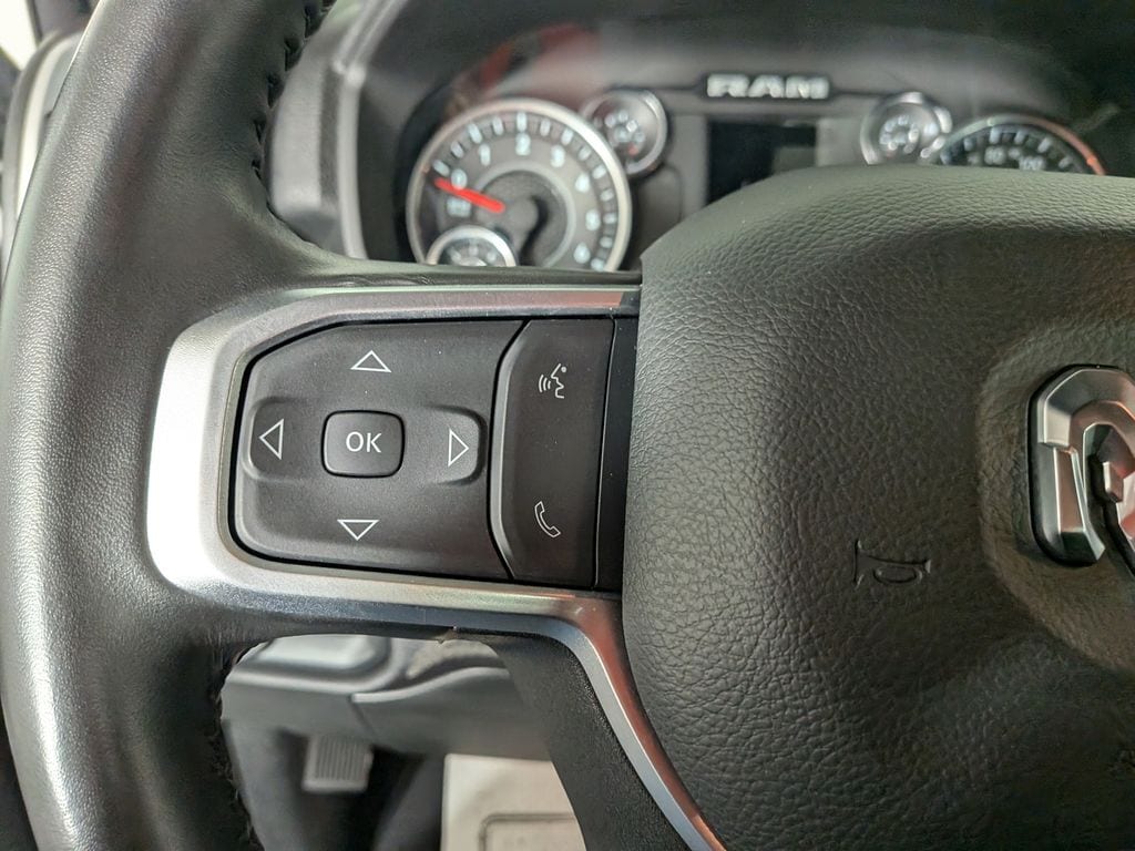 We look forward to serving you! Bed Utility Group (LED Bed Lighting, MOPAR Deployable Bed Step, and MOPAR Spray In Bedliner), Level 1 Equipment Group (2 Way Rear Headrest Seat, 2nd Row In Floor Storage Bins, 4 Way Front Headrests, 40/20/40 Split Bench Seat, 4G LTE Wi-Fi Hot Spot, 8.4" Touchscreen Display, Apple CarPlay, Auto Power-Folding Mirrors, Big Horn IP Badge, Black Exterior Mirrors, Bluetooth Handsfree Phone & Audio, Center Hub, Connectivity - US/Canada, Dual Glove Boxes, Exterior Mirrors Courtesy Lamps, Exterior Mirrors w/Heating Element, Exterior Mirrors w/Supplemental Signals, Foam Bottle Insert (Door Trim Panel), Footwell Courtesy Lamp, For Details, Visit DriveUconnect.com, For More Info, Call 800-643-2112, Forward & Reverse Utility Lights, Front Armrest w/Cupholders, Front Center Seat Cushion Storage, Front Fog Lamps, Front Seat Back Map Pockets, Global Telematics Box Module (TBM), Glove Box Lamp, Google Android Auto, GPS Antenna Input, Integrated Center Stack Radio, Integrated Voice Command w/Bluetooth, Leather Wrapped Steering Wheel, Locking Lower Glove Box, Manual Adjust 4-Way Front Passenger Seat, Mirror Running Lights, Power 2-Way Driver Lumbar Adjust, Power Adjust 8-Way Driver Seat, Power Adjust Mirrors, Power Adjustable Convex Aux Mirrors, Power Heated Fold Telescope Mirrors, Power Telescoping Mirrors, Rear 60/40 Folding Seat, Rear Dome w/On/Off Switch Lamp, Remote USB Port - Charge Only, Selectable Tire Fill Alert, SiriusXM Radio Service, SiriusXM Satellite Radio, Steering Wheel Mounted Audio Controls, Storage Tray, and Wheels: 18" x 8.0" Polished Aluminum), Protection Group (Tow Hooks), Quick Order Package 2GZ Big Horn, FCA US LLC Certified Pre-Owned Certified, 3.73 Axle Ratio, 4-Wheel Disc Brakes, 6 Speakers, 9 Alpine Speakers w/Subwoofer, ABS brakes, Active Noise Control System, Air Conditioning, Anti-Spin Differential Rear Axle, Brake assist, Bumpers: chrome, Center Stack Storage Drawer, Chrome Flat Cab-Length Side Steps, Cloth 40/20/40 Bench Seat, Compass, Delay-off headlights, Driver door bin, Dual front impact airbags, Dual front side impact airbags, Electronic Stability Control, Electronically Controlled Throttle, Emergency communication system: SiriusXM Guardian, Front anti-roll bar, Front Center Armrest w/Storage, Front License Plate Bracket, Front reading lights, Fully automatic headlights, Heated door mirrors, Illuminated entry, Low tire pressure warning, Manual Adjust 4-Way Driver Seat, Manufacturer's Statement of Origin, Occupant sensing airbag, Outside temperature display, Overhead airbag, Overhead console, Panic alarm, ParkView Rear Back-Up Camera, Passenger door bin, Passenger vanity mirror, Power door mirrors, Power steering, Power windows, Premium Cloth 40/20/40 Bench Seat (DISC), Radio data system, Radio: Uconnect 3 w/5" Display, Radio: Uconnect 5 W w/8.4" Display, Rear anti-roll bar, Rear Folding Seat, Rear seat center armrest, Rear step bumper, Remote keyless entry