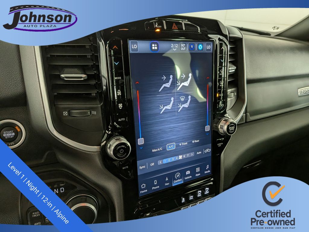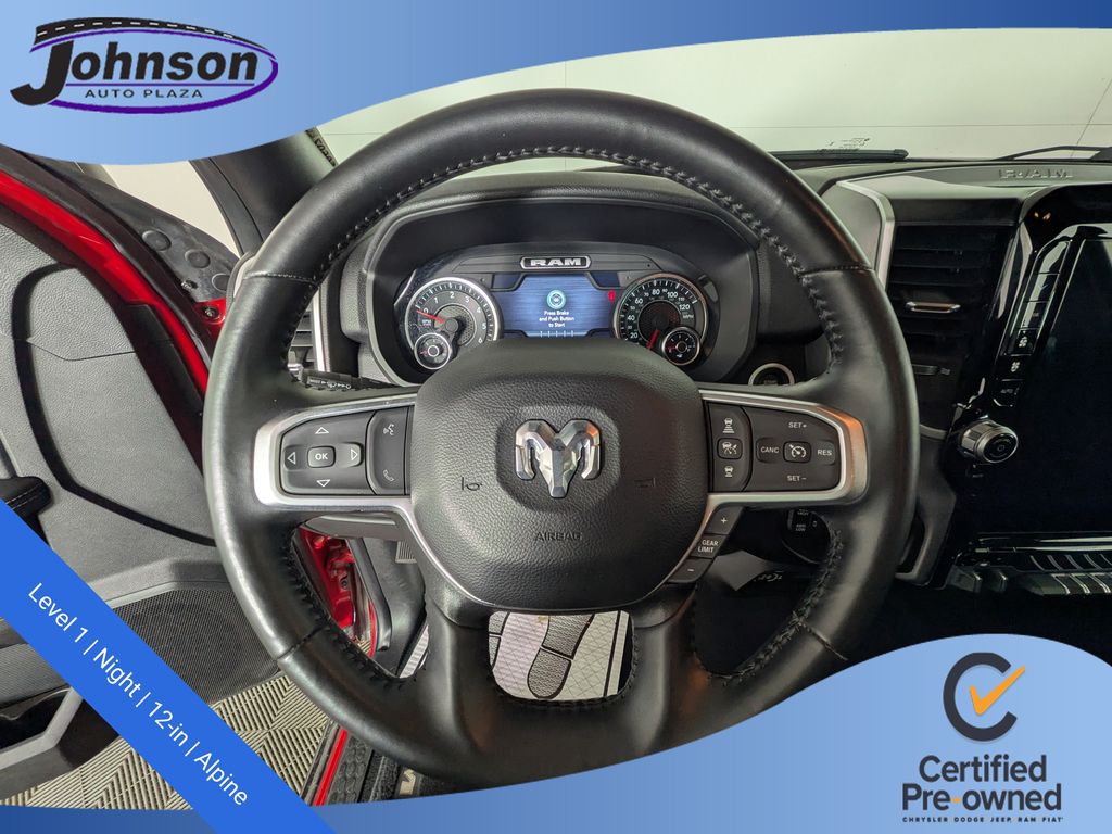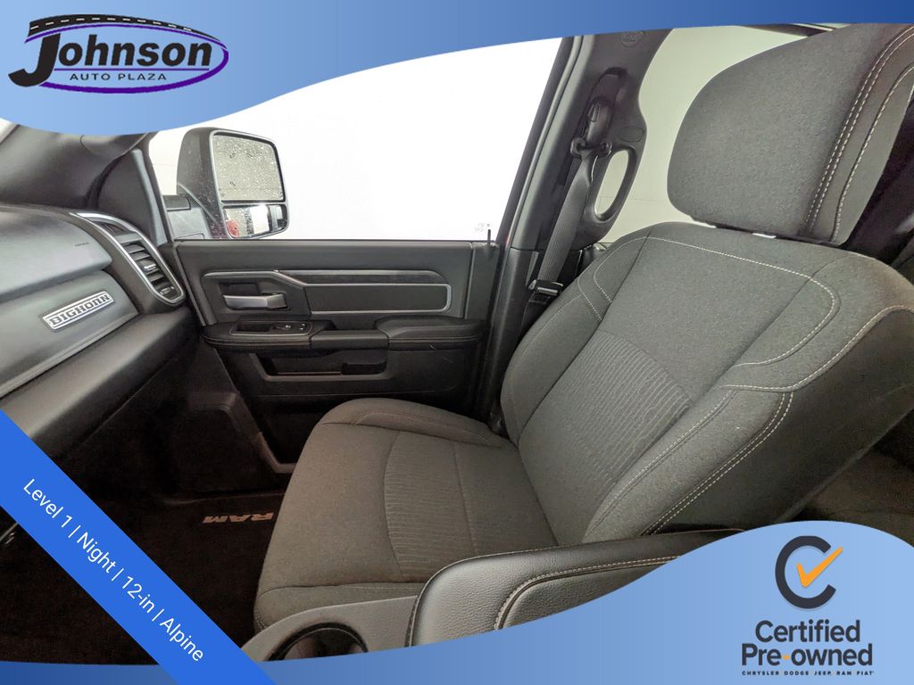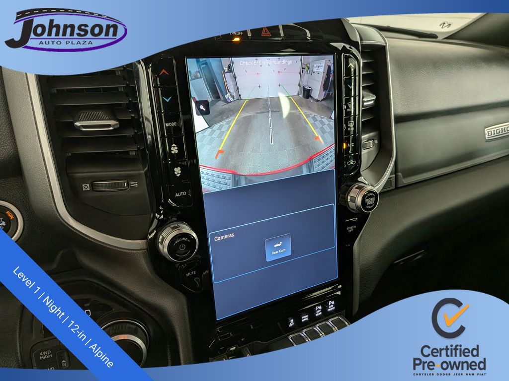 We look forward to serving you! Bed Utility Group (LED Bed Lighting, MOPAR Deployable Bed Step, and MOPAR Spray In Bedliner), Level 1 Equipment Group (2 Way Rear Headrest Seat, 2nd Row In Floor Storage Bins, 4 Way Front Headrests, 40/20/40 Split Bench Seat, 4G LTE Wi-Fi Hot Spot, 8.4" Touchscreen Display, Apple CarPlay, Auto Power-Folding Mirrors, Big Horn IP Badge, Black Exterior Mirrors, Bluetooth Handsfree Phone & Audio, Center Hub, Connectivity - US/Canada, Dual Glove Boxes, Exterior Mirrors Courtesy Lamps, Exterior Mirrors w/Heating Element, Exterior Mirrors w/Supplemental Signals, Foam Bottle Insert (Door Trim Panel), Footwell Courtesy Lamp, For Details, Visit DriveUconnect.com, For More Info, Call 800-643-2112, Forward & Reverse Utility Lights, Front Armrest w/Cupholders, Front Center Seat Cushion Storage, Front Fog Lamps, Front Seat Back Map Pockets, Global Telematics Box Module (TBM), Glove Box Lamp, Google Android Auto, GPS Antenna Input, Integrated Center Stack Radio, Integrated Voice Command w/Bluetooth, Leather Wrapped Steering Wheel, Locking Lower Glove Box, Manual Adjust 4-Way Front Passenger Seat, Mirror Running Lights, Power 2-Way Driver Lumbar Adjust, Power Adjust 8-Way Driver Seat, Power Adjust Mirrors, Power Adjustable Convex Aux Mirrors, Power Heated Fold Telescope Mirrors, Power Telescoping Mirrors, Rear 60/40 Folding Seat, Rear Dome w/On/Off Switch Lamp, Remote USB Port - Charge Only, Selectable Tire Fill Alert, SiriusXM Radio Service, SiriusXM Satellite Radio, Steering Wheel Mounted Audio Controls, Storage Tray, and Wheels: 18" x 8.0" Polished Aluminum), Night Edition (Black Exterior Truck Badging, Black Headlamp Bezels, Black Interior Accents, Black Ram Head Tailgate Badge, Black Tail Lamp Bezels, Black Wheel Center Hub, Body Color Door Handles, Body Color Grille Surround, Gloss Black Nostrils/MIC Black Grille, Painted Front Bumper, Painted Rear Bumper, ParkSense Front/Rear Park Assist System, and Wheels: 20" x 8.0" Black Painted Aluminum), Protection Group (Tow Hooks), Quick Order Package 2GZ Big Horn, Safety Group (Adaptive Cruise Control w/Stop, Adaptive Steering System, Auto High Beam Headlamp Control, Auto-Dimming Rear-View Mirror, Full Speed Forward Collision Warning Plus, Lane Keep Assist, and Rain Sensitive Windshield Wipers), FCA US LLC Certified Pre-Owned Certified, 12" Touchscreen Display, 3.73 Axle Ratio, 4-Wheel Disc Brakes, 6 Speakers, 9 Alpine Speakers w/Subwoofer, ABS brakes, Active Noise Control System, Air Conditioning, Air Conditioning ATC w/Dual Zone Control, Alexa Built-In, All R1 High Radios, All Radio Equipped Vehicles, Anti-Spin Differential Rear Axle, Blind Spot & Cross Path Detection, Brake assist, Bumpers: chrome, Center Stack Storage Drawer, Cloth 40/20/40 Bench Seat, Compass, Connected Travel & Traffic Services, Delay-off headlights, Disassociated Touchscreen Display, Driver door bin, Dual front impact airbags, Dual front side impact airbags, Electronic Stability Co