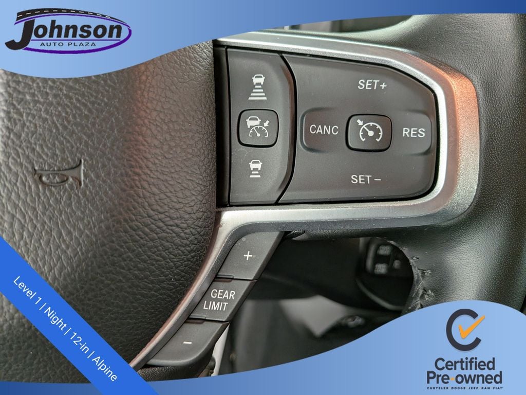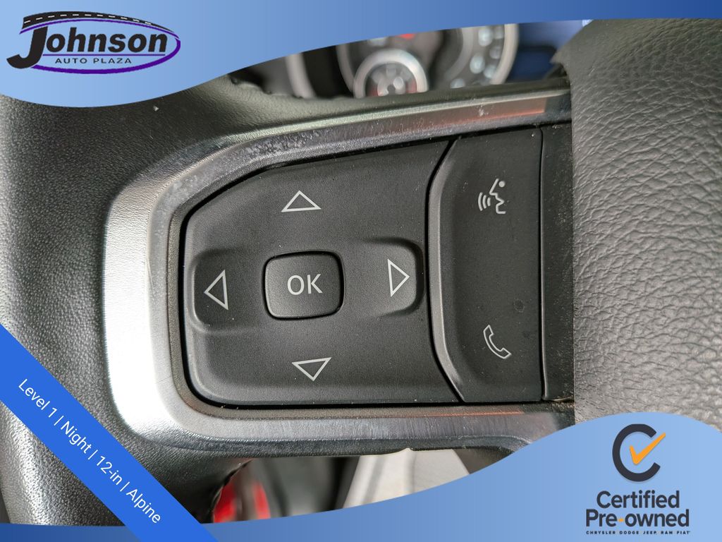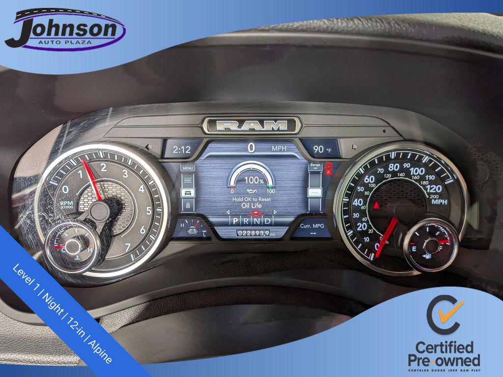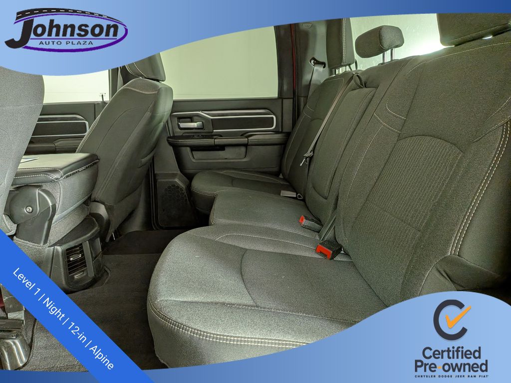 We look forward to serving you! Bed Utility Group (LED Bed Lighting, MOPAR Deployable Bed Step, and MOPAR Spray In Bedliner), Level 1 Equipment Group (2 Way Rear Headrest Seat, 2nd Row In Floor Storage Bins, 4 Way Front Headrests, 40/20/40 Split Bench Seat, 4G LTE Wi-Fi Hot Spot, 8.4" Touchscreen Display, Apple CarPlay, Auto Power-Folding Mirrors, Big Horn IP Badge, Black Exterior Mirrors, Bluetooth Handsfree Phone & Audio, Center Hub, Connectivity - US/Canada, Dual Glove Boxes, Exterior Mirrors Courtesy Lamps, Exterior Mirrors w/Heating Element, Exterior Mirrors w/Supplemental Signals, Foam Bottle Insert (Door Trim Panel), Footwell Courtesy Lamp, For Details, Visit DriveUconnect.com, For More Info, Call 800-643-2112, Forward & Reverse Utility Lights, Front Armrest w/Cupholders, Front Center Seat Cushion Storage, Front Fog Lamps, Front Seat Back Map Pockets, Global Telematics Box Module (TBM), Glove Box Lamp, Google Android Auto, GPS Antenna Input, Integrated Center Stack Radio, Integrated Voice Command w/Bluetooth, Leather Wrapped Steering Wheel, Locking Lower Glove Box, Manual Adjust 4-Way Front Passenger Seat, Mirror Running Lights, Power 2-Way Driver Lumbar Adjust, Power Adjust 8-Way Driver Seat, Power Adjust Mirrors, Power Adjustable Convex Aux Mirrors, Power Heated Fold Telescope Mirrors, Power Telescoping Mirrors, Rear 60/40 Folding Seat, Rear Dome w/On/Off Switch Lamp, Remote USB Port - Charge Only, Selectable Tire Fill Alert, SiriusXM Radio Service, SiriusXM Satellite Radio, Steering Wheel Mounted Audio Controls, Storage Tray, and Wheels: 18" x 8.0" Polished Aluminum), Night Edition (Black Exterior Truck Badging, Black Headlamp Bezels, Black Interior Accents, Black Ram Head Tailgate Badge, Black Tail Lamp Bezels, Black Wheel Center Hub, Body Color Door Handles, Body Color Grille Surround, Gloss Black Nostrils/MIC Black Grille, Painted Front Bumper, Painted Rear Bumper, ParkSense Front/Rear Park Assist System, and Wheels: 20" x 8.0" Black Painted Aluminum), Protection Group (Tow Hooks), Quick Order Package 2GZ Big Horn, Safety Group (Adaptive Cruise Control w/Stop, Adaptive Steering System, Auto High Beam Headlamp Control, Auto-Dimming Rear-View Mirror, Full Speed Forward Collision Warning Plus, Lane Keep Assist, and Rain Sensitive Windshield Wipers), FCA US LLC Certified Pre-Owned Certified, 12" Touchscreen Display, 3.73 Axle Ratio, 4-Wheel Disc Brakes, 6 Speakers, 9 Alpine Speakers w/Subwoofer, ABS brakes, Active Noise Control System, Air Conditioning, Air Conditioning ATC w/Dual Zone Control, Alexa Built-In, All R1 High Radios, All Radio Equipped Vehicles, Anti-Spin Differential Rear Axle, Blind Spot & Cross Path Detection, Brake assist, Bumpers: chrome, Center Stack Storage Drawer, Cloth 40/20/40 Bench Seat, Compass, Connected Travel & Traffic Services, Delay-off headlights, Disassociated Touchscreen Display, Driver door bin, Dual front impact airbags, Dual front side impact airbags, Electronic Stability Co