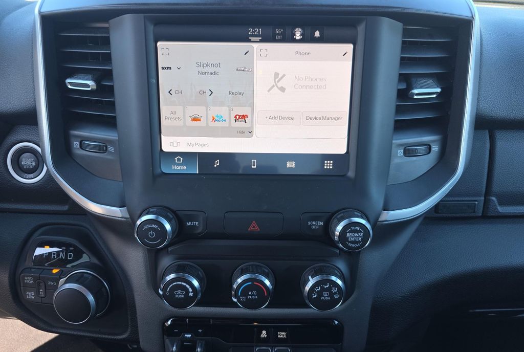 We look forward to serving you! Bed Utility Group (LED Bed Lighting, MOPAR Deployable Bed Step, and MOPAR Spray In Bedliner), Level 1 Equipment Group (2 Way Rear Headrest Seat, 2nd Row In Floor Storage Bins, 4 Way Front Headrests, 40/20/40 Split Bench Seat, 4G LTE Wi-Fi Hot Spot, 8.4" Touchscreen Display, Apple CarPlay, Auto Power-Folding Mirrors, Big Horn IP Badge, Black Exterior Mirrors, Bluetooth Handsfree Phone & Audio, Center Hub, Connectivity - US/Canada, Dual Glove Boxes, Exterior Mirrors Courtesy Lamps, Exterior Mirrors w/Heating Element, Exterior Mirrors w/Supplemental Signals, Foam Bottle Insert (Door Trim Panel), Footwell Courtesy Lamp, For Details, Visit DriveUconnect.com, For More Info, Call 800-643-2112, Forward & Reverse Utility Lights, Front Armrest w/Cupholders, Front Center Seat Cushion Storage, Front Fog Lamps, Front Seat Back Map Pockets, Global Telematics Box Module (TBM), Glove Box Lamp, Google Android Auto, GPS Antenna Input, Integrated Center Stack Radio, Integrated Voice Command w/Bluetooth, Leather Wrapped Steering Wheel, Locking Lower Glove Box, Manual Adjust 4-Way Front Passenger Seat, Mirror Running Lights, Power 2-Way Driver Lumbar Adjust, Power Adjust 8-Way Driver Seat, Power Adjust Mirrors, Power Adjustable Convex Aux Mirrors, Power Heated Fold Telescope Mirrors, Power Telescoping Mirrors, Rear 60/40 Folding Seat, Rear Dome w/On/Off Switch Lamp, Remote USB Port - Charge Only, Selectable Tire Fill Alert, SiriusXM Radio Service, SiriusXM Satellite Radio, Steering Wheel Mounted Audio Controls, Storage Tray, and Wheels: 18" x 8.0" Polished Aluminum), Protection Group (Tow Hooks), Quick Order Package 2GZ Big Horn, FCA US LLC Certified Pre-Owned Certified, 3.73 Axle Ratio, 4-Wheel Disc Brakes, 6 Speakers, 9 Alpine Speakers w/Subwoofer, ABS brakes, Active Noise Control System, Air Conditioning, Anti-Spin Differential Rear Axle, Brake assist, Bumpers: chrome, Center Stack Storage Drawer, Chrome Flat Cab-Length Side Steps, Cloth 40/20/40 Bench Seat, Compass, Delay-off headlights, Driver door bin, Dual front impact airbags, Dual front side impact airbags, Electronic Stability Control, Electronically Controlled Throttle, Emergency communication system: SiriusXM Guardian, Front anti-roll bar, Front Center Armrest w/Storage, Front License Plate Bracket, Front reading lights, Fully automatic headlights, Heated door mirrors, Illuminated entry, Low tire pressure warning, Manual Adjust 4-Way Driver Seat, Manufacturer's Statement of Origin, Occupant sensing airbag, Outside temperature display, Overhead airbag, Overhead console, Panic alarm, ParkView Rear Back-Up Camera, Passenger door bin, Passenger vanity mirror, Power door mirrors, Power steering, Power windows, Premium Cloth 40/20/40 Bench Seat (DISC), Radio data system, Radio: Uconnect 3 w/5" Display, Radio: Uconnect 5 W w/8.4" Display, Rear anti-roll bar, Rear Folding Seat, Rear seat center armrest, Rear step bumper, Remote keyless entry, Speed cont