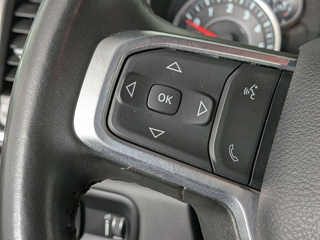 We look forward to serving you! Bed Utility Group (LED Bed Lighting, MOPAR Deployable Bed Step, and MOPAR Spray In Bedliner), Level 1 Equipment Group (2 Way Rear Headrest Seat, 2nd Row In Floor Storage Bins, 4 Way Front Headrests, 40/20/40 Split Bench Seat, 4G LTE Wi-Fi Hot Spot, 8.4" Touchscreen Display, Apple CarPlay, Auto Power-Folding Mirrors, Big Horn IP Badge, Black Exterior Mirrors, Bluetooth Handsfree Phone & Audio, Center Hub, Connectivity - US/Canada, Dual Glove Boxes, Exterior Mirrors Courtesy Lamps, Exterior Mirrors w/Heating Element, Exterior Mirrors w/Supplemental Signals, Foam Bottle Insert (Door Trim Panel), Footwell Courtesy Lamp, For Details, Visit DriveUconnect.com, For More Info, Call 800-643-2112, Forward & Reverse Utility Lights, Front Armrest w/Cupholders, Front Center Seat Cushion Storage, Front Fog Lamps, Front Seat Back Map Pockets, Global Telematics Box Module (TBM), Glove Box Lamp, Google Android Auto, GPS Antenna Input, Integrated Center Stack Radio, Integrated Voice Command w/Bluetooth, Leather Wrapped Steering Wheel, Locking Lower Glove Box, Manual Adjust 4-Way Front Passenger Seat, Mirror Running Lights, Power 2-Way Driver Lumbar Adjust, Power Adjust 8-Way Driver Seat, Power Adjust Mirrors, Power Adjustable Convex Aux Mirrors, Power Heated Fold Telescope Mirrors, Power Telescoping Mirrors, Rear 60/40 Folding Seat, Rear Dome w/On/Off Switch Lamp, Remote USB Port - Charge Only, Selectable Tire Fill Alert, SiriusXM Radio Service, SiriusXM Satellite Radio, Steering Wheel Mounted Audio Controls, Storage Tray, and Wheels: 18" x 8.0" Polished Aluminum), Protection Group (Tow Hooks), Quick Order Package 2GZ Big Horn, Sport Appearance Package (Black Interior Accents, Body Color Door Handles, Body Color Grille Surround, Painted Front Bumper, Painted Rear Bumper, ParkSense Front/Rear Park Assist System, and Sport Decal), FCA US LLC Certified Pre-Owned Certified, 12" Touchscreen Display, 3.73 Axle Ratio, 4-Wheel Disc Brakes, 6 Speakers, 9 Alpine Speakers w/Subwoofer, ABS brakes, Active Noise Control System, Air Conditioning, Air Conditioning ATC w/Dual Zone Control, Alexa Built-In.