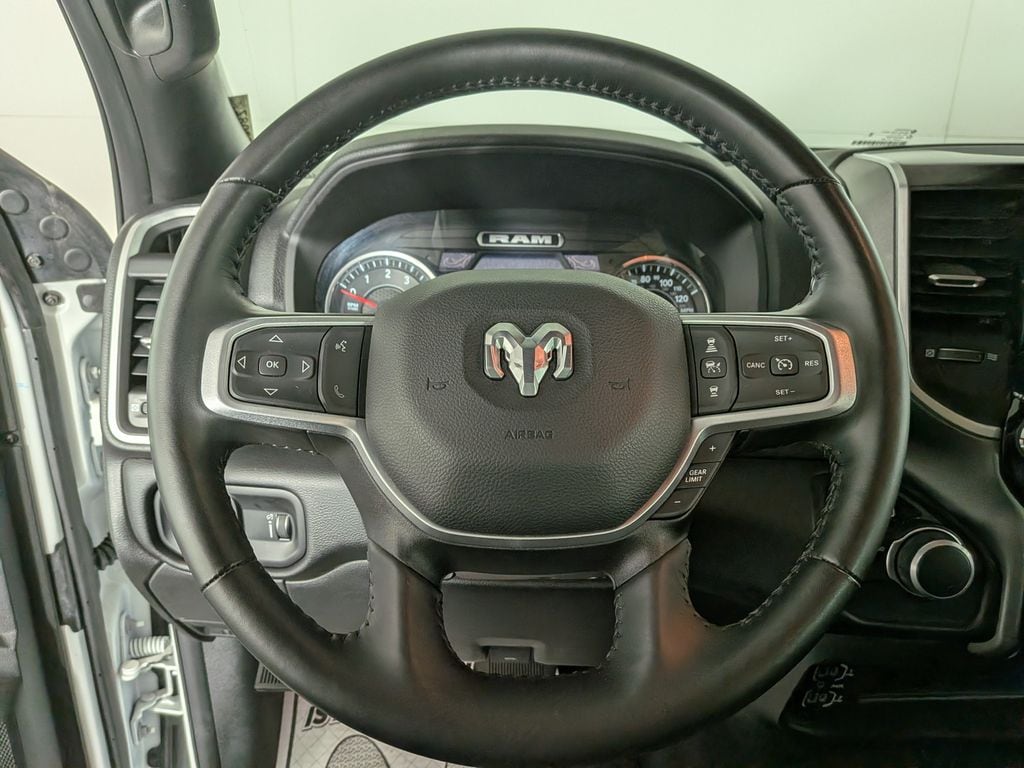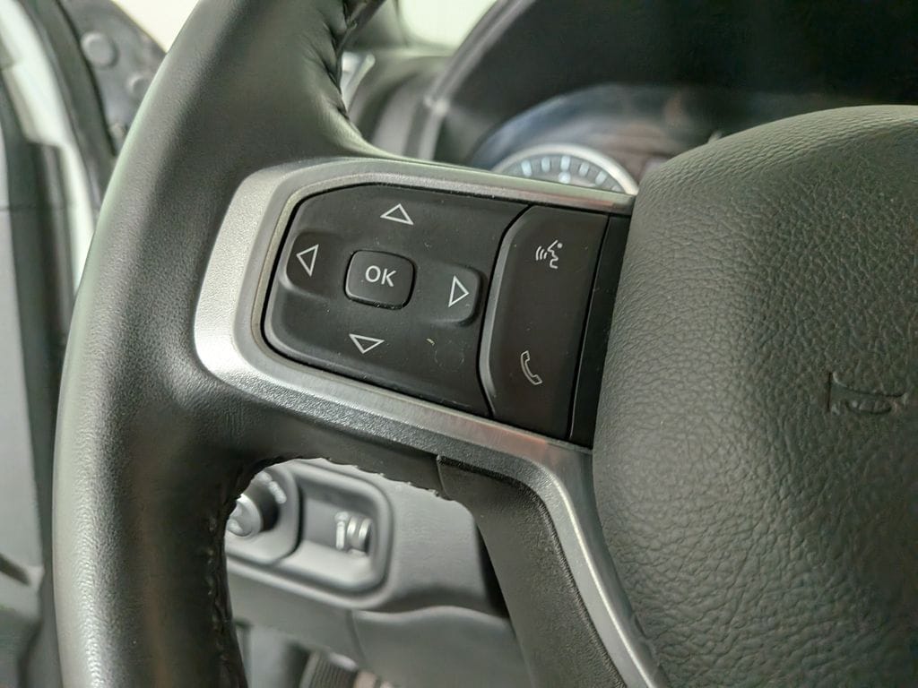 We look forward to serving you! Bed Utility Group (LED Bed Lighting, MOPAR Deployable Bed Step, and MOPAR Spray In Bedliner), Level 2 Equipment Group (115V Auxiliary Front Power Outlet, 12" Touchscreen Display, 2 Way Rear Headrest Seat, 2nd Row In Floor Storage Bins, 4 Way Front Headrests, 40/20/40 Split Bench Seat, 400W Inverter, 4G LTE Wi-Fi Hot Spot, Air Conditioning ATC w/Dual Zone Control, Alexa Built-In, All R1 High Radios, All Radio Equipped Vehicles, Apple CarPlay, Auto Power-Folding Mirrors, Big Horn IP Badge, Black Exterior Mirrors, Blind Spot & Cross Path Detection, Center Hub, Cluster 7.0" TFT Color Display, Connected Travel & Traffic Services, Connectivity - US/Canada, Dampened Tailgate, Disassociated Touchscreen Display, Dual Glove Boxes, Exterior 115V AC Outlet, Exterior Mirrors Courtesy Lamps, Exterior Mirrors w/Heating Element, Exterior Mirrors w/Supplemental Signals, Foam Bottle Insert (Door Trim Panel), Footwell Courtesy Lamp, For Details, Visit DriveUconnect.com, For More Info, Call 800-643-2112, Forward & Reverse Utility Lights, Front Armrest w/Cupholders, Front Center Seat Cushion Storage, Front Fog Lamps, Front Seat Back Map Pockets, Global Telematics Box Module (TBM), Glove Box Lamp, Google Android Auto, GPS Antenna Input, GPS Navigation, HD Radio, Heated Front Seats, Heated Steering Wheel, Integrated Voice Command w/Bluetooth, Leather Wrapped Steering Wheel, LED Tail Lamps, Locking Lower Glove Box, Manual Adjust 4-Way Front Passenger Seat, Media Hub w/2 Charge Only USBs, Mirror Running Lights, Off-Road Information Pages, ParkSense Front/Rear Park Assist System, Power 2-Way Driver Lumbar Adjust, Power Adjust 8-Way Driver Seat, Power Adjust Mirrors, Power Adjustable Convex Aux Mirrors, Power Adjustable Pedals, Power Heated Fold Telescope Mirrors, Power Telescoping Mirrors, Radio: Uconnect 5 Nav w/12.0" Display, Rear 60/40 Folding Seat, Rear Dome w/On/Off Switch Lamp, Rear Power Sliding Window, Rear Window Defroster, Remote Start System, Remote USB Port - Charge Only, Security Alarm, Selectable Tire Fill Alert, SiriusXM Radio Service, SiriusXM w/360L, Steering Wheel Mounted Audio Controls, Storage Tray, Sun Visors w/Illuminated Vanity Mirrors, Trailer Tow Pages, Universal Garage Door Opener, and 18" x 8.0" Polished Aluminum), Protection Group (Tow Hooks), Quick Order Package 2GZ, Safety Group (Adaptive C