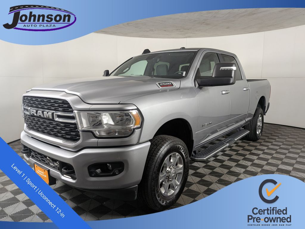 **Accident-Free Carfax, 1-Owner** **Chrysler Certified Pre-Owned** **Ram 2500 Big Horn Crew Cab 4WD** *6.4L Heavy-Duty HEMI V8* *Level 1 Equipment Group* *Sport Appearance Package* *Premium Cloth 40/20/40 Bench Seat* *8-Way Power Driver Seat* *Uconnect 5 12-in Touch-Screen Navigation with Bluetooth, Apple CarPlay, and Android Auto Compatibility* *9-Alpine Speakers with Subwoofer* *Dual-Zone Climate Control* *Remote Keyless Entry with Push Button Start* *Power Heat / Folding / Telescoping Mirror* *Chrome Flat Cab-Length Side-Steps* *Class V Receiver Hitch* *3.73 Rear Axle Ratio* *Anti-Spin Differential Rear Axle* *Protection Group with Transfer Case Skid Plate Shield and Tow Hooks* *Bed Utility Group with Spray-In Bedliner* *Optional Billet Silver Metallic Clearcoat*