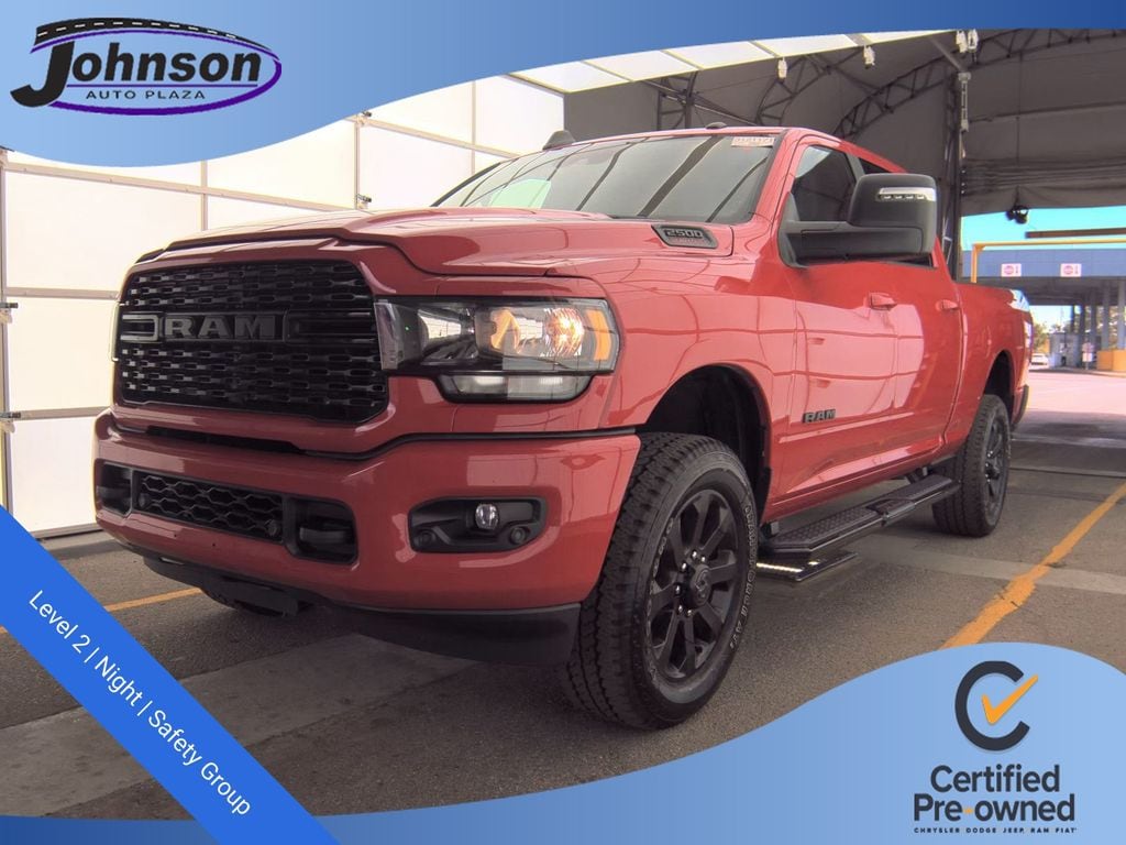 **Accident-Free Carfax, 1-Owner** **Chrysler Certified Pre-Owned** **Ram 2500 Big Horn Crew Cab 4WD** *6.4L Heavy-Duty HEMI V8* *Level 2 Equipment Group* *Night Edition* *Safety Group* *Premium Cloth 40/20/40 Bench Seat* *8-Way Power Driver Seat* *Heated Front Seats* *Leather-Wrapped Heated Steering Wheel* *Uconnect 5 12-in Touch-Screen Navigation with Bluetooth, Apple CarPlay, and Android Auto Compatibility* *9-Alpine Speakers with Subwoofer* *Dual Zone Climate Control* *Remote Keyless Entry with Push Button Start* *Remote Vehicle Start* *ParkSense Front and Rear Park-Assist System* *Blind Spot with Tag-Trailer & Cross-Path Detection* *Flat Cab-Length Painted Side Steps* *Protection Group with Transfer Case Skid-Plate Shield and Tow Hooks* *Bed Utility Group with Spray-In Bedliner*