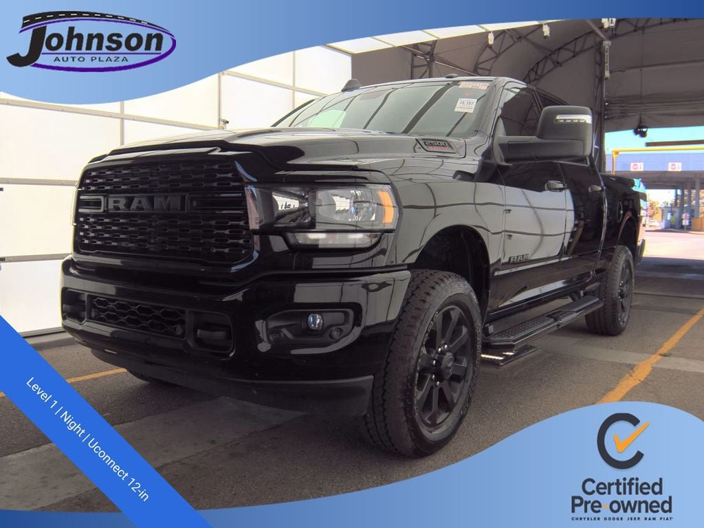 **Accident-Free Carfax, 1-Owner** **Chrysler Certified Pre-Owned** **Ram 2500 Big Horn Crew Cab 4WD** *6.4L Heavy-Duty HEMI V8* *Level 1 Equipment Group* *Night Edition* *Premium Cloth 40/20/40 Bench Seat* *8-Way Power Adjustable Driver Seat* *Uconnect 5 12-in Touch-Screen Navigation with Bluetooth, Apple CarPlay, and Android Auto Compatibility* *9-Alpine Speakers with Subwoofer* *Remote Keyless Entry with Push-Button Start* *Power Heat / Folding / Telescoping Mirrors* *ParkSense Front and Rear Park-Assist System* *Flat Cab-Length Painted Side Steps* *Protection Group with Transfer Case Skid-Plate Shield with Tow Hooks* *Bed Utility Group with Spray-In Bedliner* *Class V Receiver Hitch* *3.73 Rear Axle Ratio* *Optional Diamond Black Crystal Pearlcoat Exterior*