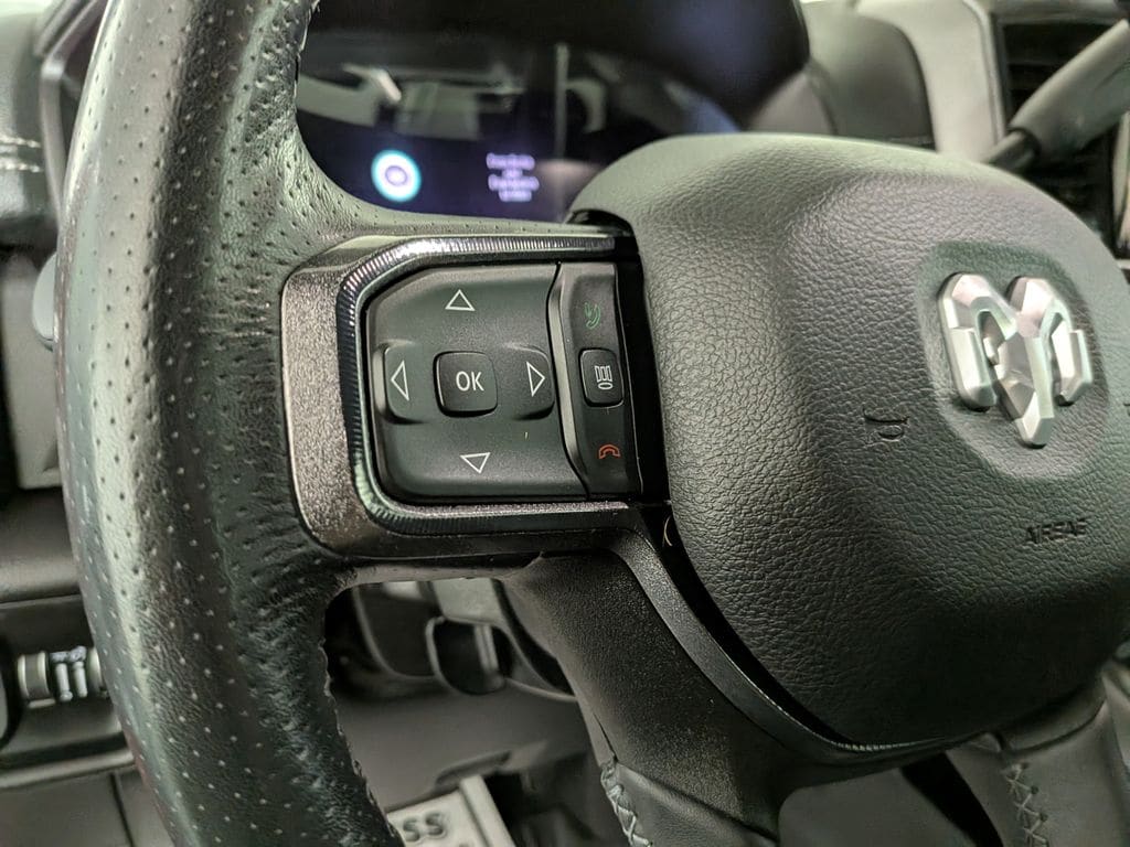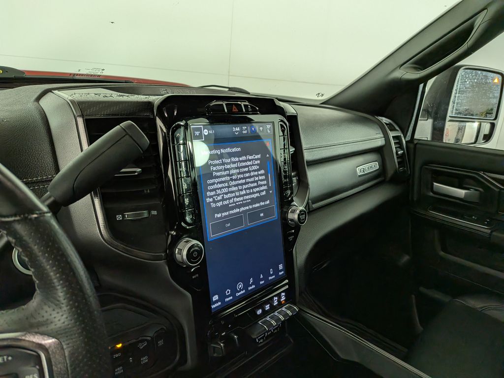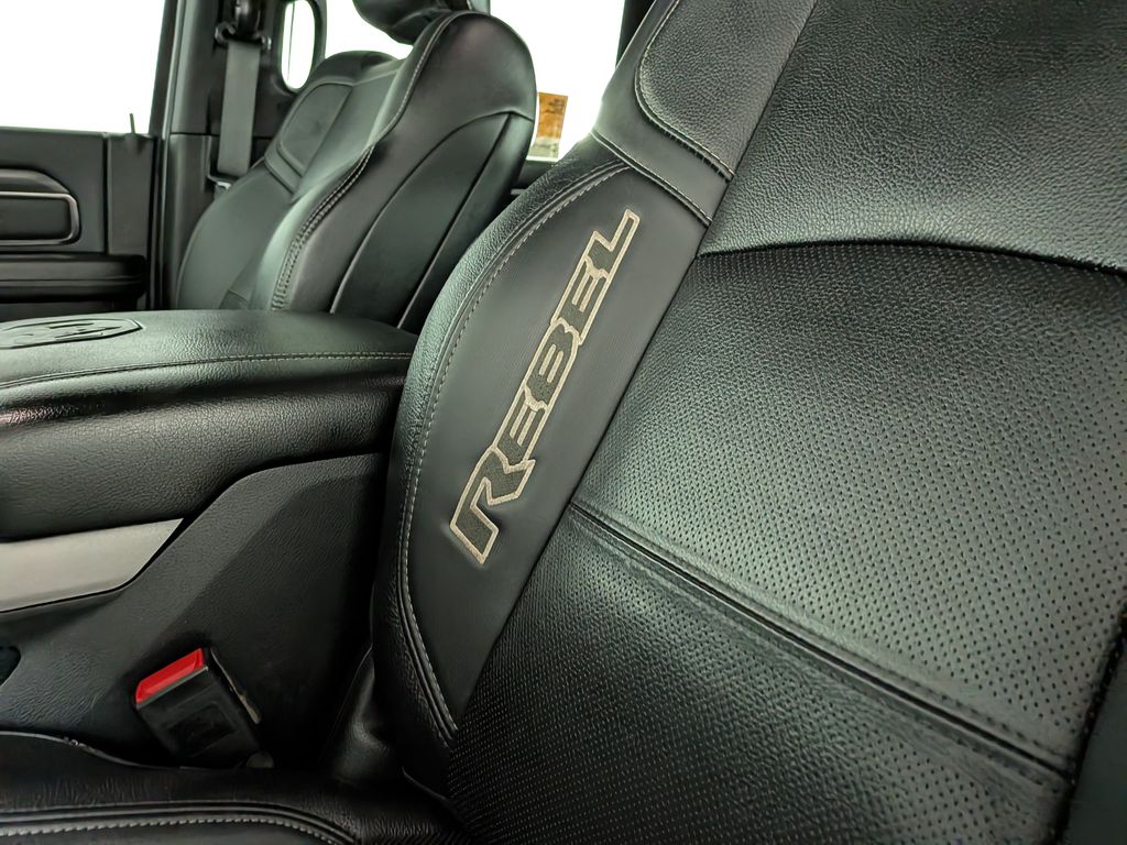We look forward to serving you! Cold Weather Group (Engine Block Heater and MOPAR Winter Front Grille Cover), Level 1 Equipment Group (12" Touchscreen Display, 2nd Row In Floor Storage Bins, 4G LTE Wi-Fi Hot Spot, 9 Alpine Speakers w/Subwoofer, Alexa Built-In, Apple CarPlay, Auto Adjust In Reverse Exterior Mirrors, Auto Dim Exterior Mirror, Auto High Beam Headlamp Control, Auto Power-Folding Mirrors, Auto-Dimming Exterior Passenger Mirror, Black Exterior Mirrors, Body Color Door Handles, Connected Travel & Traffic Services, Connectivity - US/Canada, Disassociated Touchscreen Display, Exterior Mirrors Courtesy Lamps, Exterior Mirrors w/Heating Element, Exterior Mirrors w/Memory, Exterior Mirrors w/Supplemental Signals, For Details, Visit DriveUconnect.com, For More Info, Call 800-643-2112, Forward & Reverse Utility Lights, Front Door Accent Lighting, Global Telematics Box Module (TBM), Google Android Auto, GPS Antenna Input, GPS Navigation, HD Radio, Integrated Voice Command w/Bluetooth, LED Dome Lamp w/On/Off Switch, LED Interior Lighting, Mirror Running Lights, MOPAR Front & Rear Rubber Floor Mats, Off-Road Information Pages, Overhead LED Lamps, Power Adjust Mirrors, Power Adjustable Convex Aux Mirrors, Power Adjustable Pedals w/Memory, Power Heated Fold Telescopic Mirrors w/Memory, Power Telescoping Mirrors, Premium Overhead Console, Radio: Uconnect 5 Nav w/12.0" Display, Rain Sensitive Windshield Wipers, Rear Door Accent Lighting, Rear Power Sliding Window, Rear Window Defroster, Remote Proximity Keyless Entry, Security Alarm, Selectable Tire Fill Alert, SiriusXM Radio Service, SiriusXM w/360L, Sport Performance Hood, Sun Visors w/Illuminated Vanity Mirrors, Trailer Tow Pages, and Universal Garage Door Opener), Quick Order Package 2HR Rebel (220 Amp Alternator, 4x4 Badge, Conventional Differential Front Axle, Electric Shift-On-The-Fly Transfer Case, Instrument Cluster Theme 2 - Rebel, Limited Slip Rear Differential w/Electronic Lock, Painted Semi-Texture Film Instrument Panel Bezels, Rebel Badge, Rebel Instrument Panel Badge, and Rebel Suspension), 2 Way Rear Headrest Seat, 3.73 Axle Ratio, 4 Way Front Headrests, 4-Wheel Disc Brakes, 40/20/40 Split Bench Seat, 5th Wheel/Gooseneck Towing Prep Group, 6 Speakers, ABS brakes, Active Noise Control System, Adjustable pedals, Air Conditioning, Alloy wheels, AM/FM radio: SiriusXM with 360L, Apple CarPlay/Android Auto, Auto-dimming Rear-View mirror, Automatic temperature control, Black Wheel Center Hub, Blind Spot & Cross Path Detection, Block heater, Brake assist, Cloth Heated Power Bench Seat (DISC), Compass, CTR Stop Lamp w/Cargo View Camera, Delay-off headlights, Driver door bin, Dual front impact airbags, Dual front side impact airbags, Electronic Stability Control, Electronically Controlled Throttle, Folding Flat Load Floor Storage, Front anti-roll bar, Front Center Armrest w/Storage, Front dual zone A/C, Front fog lights, Front License Plate Bracket, Front reading lights, Fully automatic headlights, Heated door mirrors, Heated front seats, Heated steering wheel, Illuminated entry, Leather steering wheel, Low tire pressure warning, Manufacturer's Statement of Origin, Navigation System.