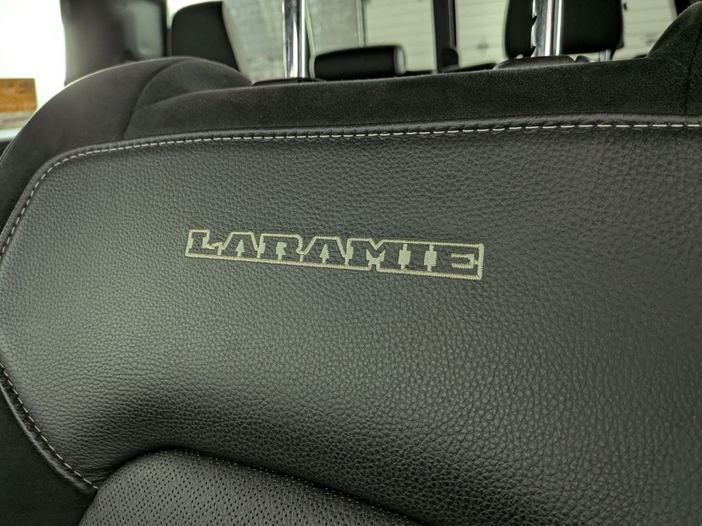 We look forward to serving you! Quick Order Package 21H Laramie, FCA US LLC Certified Pre-Owned Certified, 10 Speakers, 3 Rear Seat Head Restraints, 3.55 Rear Axle Ratio, 4 Way Front Headrests, 4-Wheel Disc Brakes, 4G LTE Wi-Fi Hot Spot, ABS brakes, Air Conditioning, Alloy wheels, AM/FM radio: SiriusXM with 360L, Apple CarPlay, Apple CarPlay/Android Auto, Audio memory, Auto High-beam Headlights, Auto Power-Folding Mirrors, Auto-dimming door mirrors, Auto-Dimming Exterior Driver Mirror, Auto-dimming Rear-View mirror, Automatic temperature control, Brake assist, Bumpers: chrome, Chrome Exterior Mirrors, Compass, Connected Travel & Traffic Services, Connectivity - US/Canada, Convex Wide-Angle Exterior Mirror Insert, Delay-off headlights, Driver door bin, Driver Seat Memory, Driver vanity mirror, Dual front impact airbags, Dual front side impact airbags, Electronic Stability Control, Exterior Mirrors Courtesy Lamps, Exterior Mirrors w/Heating Element, Exterior Mirrors w/Memory, Exterior Mirrors w/Supplemental Signals, Front anti-roll bar, Front Center Armrest w/Storage, Front dual zone A/C, Front fog lights, Front License Plate Bracket, Front reading lights, Front Seat Back Map Pockets, Front wheel independent suspension, Fully automatic headlights, Garage door transmitter, Google Android Auto, GPS Antenna Input, GPS Navigation, HD Radio, Heated door mirrors, Heated Front Seats, Heated front seats, Heated rear seats, Heated Steering Wheel, Heated steering wheel, Illuminated entry, Integrated Voice Command w/Bluetooth, Leather steering wheel, Leather Trim 40/20/40 Bench Seat, Low tire pressure warning, Manufacturer's Statement of Origin, Memory seat, Navigation System, Occupant sensing airbag, Outside temperature display, Overhead airbag, Overhead console, Panic alarm, ParkView Rear Back-Up Camera, Passenger door bin, Passenger vanity mirror, Power 2-Way Driver Lumbar Adjust, Power 2-Way Passenger Lumbar Adjust, Power Adjust 8-Way Front Passenger Seat, Power door mirrors, Power driver seat, Power passenger seat, Power steering, Power windows, Radio data system, Radio: Uconnect 5 Nav w/12.0" Display, RAM Grille Badge - Chrome, Rear anti-roll bar, Rear reading lights, Rear seat center armrest, Rear step bumper, Remote keyless entry, Security system, SiriusXM w/360L, Speed control, Split folding rear seat, Steering wheel mounted audio controls, Tachometer, Telescoping steering wheel, Tilt steering wheel, Traction control, Trip computer, Turn signal indicator mirrors, USB Host Flip, Variably intermittent wipers, Ventilated Front Seats, Ventilated front seats, Voltmeter, and Wheels: 20" x 9" Premium Paint/PolisH.