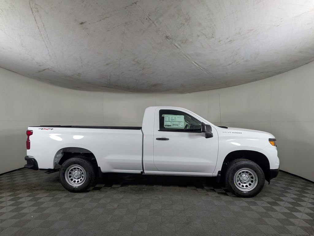 We look forward to serving you! Preferred Equipment Group 1WT (3.5 Monochromatic Display Driver Info Center, 4-Way Manual Driver Seat Adjuster, 40/20/40 Front Split Bench Seat, Black (Semi-Gloss) Front Bumper, Black (Semi-Gloss) Rear Bumper, Bluetooth® For Phone, Electronic Cruise Control, Front Frame-Mounted Black Recovery Hooks, HD Rear Vision Camera, Heated Power-Adjustable Outside Mirrors, Inside Rearview Mirror with Tilt, Locking Tailgate, Manual Tailgate Function with No EZ Lift, Manual Tilt Wheel Steering Column, OnStar Services Capable, Power Front Windows with Driver Express Up/Down, Power Front Windows with Passenger Express Down, Remote Keyless Entry, Rubberized-Vinyl Floor Covering, SiriusXM Delete, Solar Absorbing Tinted Glass, Standard Tailgate, Teen Driver, Tire Pressure Monitoring System, Vinyl Seat Trim, Wheels: 17 x 8 Ultra Silver Painted Steel, and Wi-Fi Hot Spot Capable), Snow Plow Prep Package (220 Amp Alternator and Heavy-Duty Air Filter), Standard Suspension Package, Trailering Package (Hitch Guidance), WT Convenience Package (Deep-Tinted Glass and Electric Rear-Window Defogger), WT Value Package, 10-Speed Automatic, 4WD, Jet Black Vinyl, 120-Volt Bed Mounted Power Outlet, 120-Volt Interior Power Outlet, 2 Speakers, 2-Speaker Audio System, 4-Wheel Disc Brakes, ABS brakes, Air Conditioning, AM/FM radio, Apple CarPlay/Android Auto, Auto High-beam Headlights, Auto-Locking Rear Differential, Automatic Emergency Braking, Auxiliary External Transmission Oil Cooler, Brake assist, Chevytec Spray-on Black Bedliner, Compass, Delay-off headlights, Driver door bin, Dual front impact airbags, Dual front side impact airbags, Electronic Stability Control, Emergency communication system: OnStar, External Engine Oil Cooler, EZ Lift Power Lock and Release Tailgate, Following Distance Indicator, Forward Collision Alert, Front anti-roll bar, Front Center Armrest w/Storage, Front License Plate Kit, Front Pedestrian Braking, Front reading lights, Front wheel independent suspension, Fully automatic headlights, Heated door mirrors, Illuminated entry, Integrated Trailer Brake Controller, IntelliBeam Automatic High Beam on/Off, Lane Keep Assist with Lane Departure Warning, Low tire pressure warning, Occupant sensing airbag, Outside temperature display, Overhead airbag, Overhead console, Panic alarm, Passenger door bin, Passenger vanity mirror, Power door mirrors, Power steering, Power windows, Premium audio system: Chevrolet Infotainment 3, Radio data system, Radio: Chevrolet Infotainment 3 System, Rear reading lights, Rear step bumper, Remote keyless entry, Speed control, Speed-sensing steering, Tachometer, Tilt steering wheel, Traction control, Trip computer, Variably intermittent wipers, and VoltmeteR. All customers may not qualify for all rebates. Price includes: $1698 - Supplier Discount for Everyone. Exp. 04/30/2026 $4250 - Customer Cash. Exp. 04/30/2026 $500 - Bonus Cash. Exp. 04/30/2026