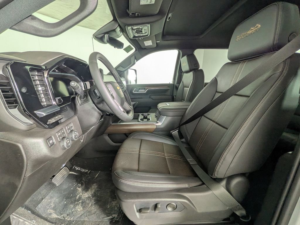 We look forward to serving you! Gooseneck/5th Wheel Prep Package (Chevytec Spray-on Black Bedliner), High Country Premium Package (Power Sunroof), Preferred Equipment Group 3LZ (120-Volt Bed Mounted Power Outlet, 120-Volt Interior Power Outlet, 170 Amp Alternator, 6 Rectangular Chromed Tubular Assist Steps, Auto-Dimming Inside Rear-View Mirror, Bed View Camera with Two Trailer Camera Provisions, Bluetooth® For Phone, Chevrolet Connected Access Capable, Chrome Door Handles, Chrome Mirror Caps, Color-Keyed Carpeting Floor Covering, Compass Located in Instrument Cluster, Deep-Tinted Glass, Durabed Pickup Bed, Electric Rear-Window Defogger, Front Bucket Seats, Front Carpeted Floor Mats, Front Chrome Recovery Hooks, Front LED Fog Lamps, Front Rain-Sensing Wipers, Heated 2nd Row Outboard Seats, Heated Steering Wheel, Hitch Guidance with Hitch View, in-Vehicle Trailering App System, Keyless Open and Start, LED Cargo Area Lighting, Manual Tilt-Wheel/Telescoping Steering Column, OnStar Services Capable, Perforated Leather Seating Surfaces, Polished Exhaust Tip, Power Door Locks, Power Front Windows with Driver Express Up/Down, Power Front Windows with Passenger Express Up/Down, Power Rear Windows with Express Down, Power Sliding Rear Window with Defogger, Power Tailgate, Push Button Start, Rear Carpeted Floor Mats, Rear Cross Traffic Alert, Rear Wheelhouse Liners, Remote Vehicle Starter System, SiriusXM with 360L Trial Subscription, Standard Tailgate, Steering Wheel Audio Controls, Trailer Camera Provisions, Trailer Side Blind Zone Alert, Ultrasonic Front and Rear Park Assist, Unauthorized Entry Theft-Deterrent System, Universal Home Remote, Wi-Fi Hotspot Capable, Wireless Charging, and Wrapped Steering Wheel), Snow Plow Prep/Camper Package (220 Amp Alternator), Suspension Package, Technology Package (Auto-Dimming Inside Rearview Mirror with Camera and Multicolor 15 Diagonal Head-Up Display), Up-Level Rear Seat with Storage Package, 10-Speed Automatic, 4WD, Jet Black Leather, 10-Way Power Driver Seat Adjuster with Lumbar, 10-Way Power Passenger Seat Adjuster with Lumbar, 4-Wheel Disc Brakes, 7 Speakers, ABS brakes, Air Conditioning, Alloy wheels, AM/FM radio: SiriusXM with 360L, Apple CarPlay/Android Auto, Auto High-beam Headlights, Auto-dimming door mirrors, Auto-dimming Rear-View mirror, Automatic temperature control, Bodyside moldings, Bose Premium 7-Speaker Sound System, Brake assist, Bumpers: body-color, Compass, Delay-off headlights, Driver door bin, Driver Memory, Driver vanity mirror, Dual 220-Amps Primary and 170-Amps Auxiliary Alternators, Dual front impact airbags, Dual front side impact airbags, Electronic Stability Control, Emergency communication system, Engine Block Heater, Exhaust Brake, Floor-Mounted Center Console, Front anti-roll bar, Front Center Armrest, Front dual zone A/C, Front fog lights, Front License Plate Kit, Front reading lights, Front wheel independent suspension, Fully automatic headlights, Garage door transmitter, Genuine wood console insert, Genuine wood dashboard insert, Genuine wood door panel insert, Heated door mirrors, Heated Driver and Front Outboard Passenger Seats, Heated front seats, Heated rear seats, Heated steering wheel, Heavy-Duty 80 Amp-Hour Battery, High Idle Switch, Illuminated entry, Low tire pressure warning, Memory seat, Occupant sensing airbag, Outside temperature display, Overhead airbag, Overhead console, Panic alarm, Passenger door bin, Passenger vanity mirror, Power d All customers may not qualify for