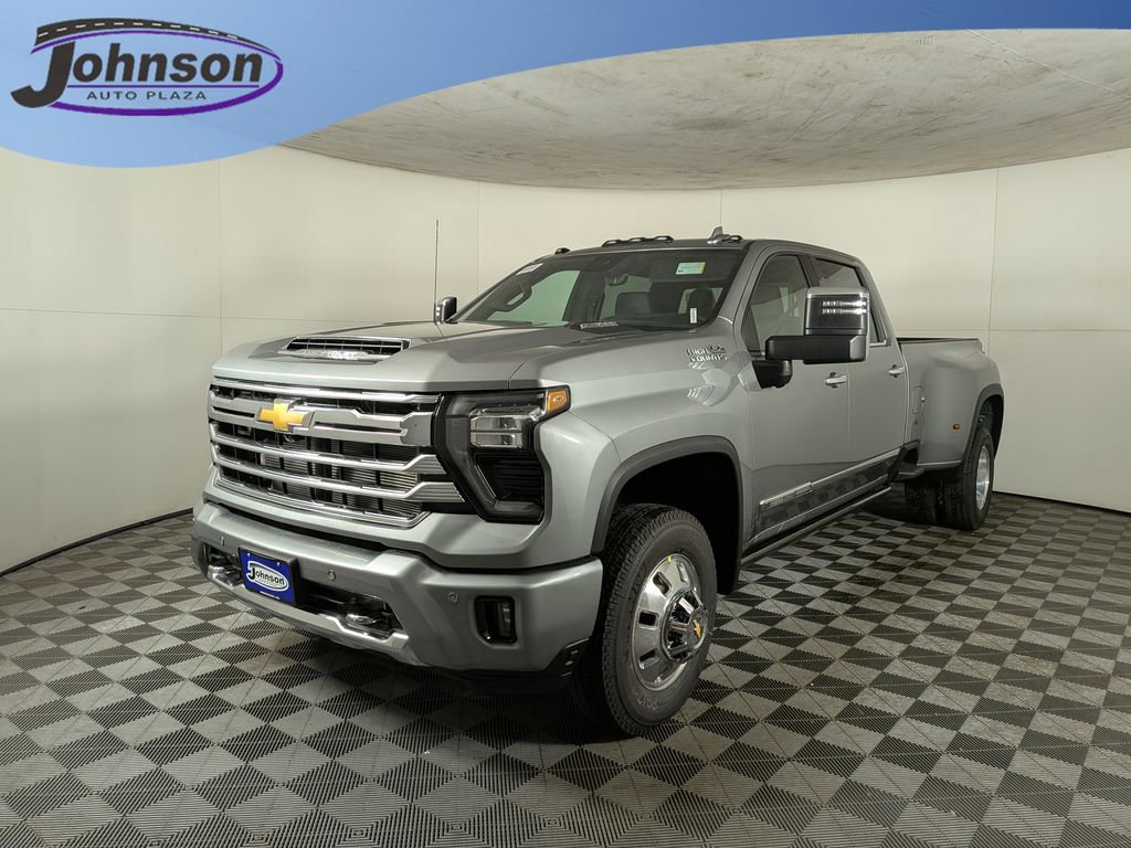Johnson Auto Plaza is pleased to offer this: 2026 Chevrolet Silverado 3500HD High Country Sterling Gray Metallic 4WD Duramax 6.6L V8 Turbodiesel 10-Speed Automatic10-Speed Automatic, 4WD, Jet Black Leather.Recent Arrival!Visit www.johnsonautoplaza.com for more information. Feel free to browse our inventory online, request more information about vehicles, set up a test drive or inquire about financing.We look forward to serving you! Suspension Package, Up-Level Rear Seat w/Storage Package, 10-Speed Automatic, 4WD, Jet Black Leather, 10-Way Power Driver Seat Adjuster w/Lumbar, 10-Way Power Passenger Seat Adjuster w/Lumbar, 120-Volt Bed Mounted Power Outlet, 120-Volt Interior Power Outlet, 170 Amp Alternator, 3.73 Rear Axle Ratio, 4-Wheel Disc Brakes, 6 Rectangular Chromed Tubular Assist Steps, 7 Speakers, ABS brakes, Air Conditioning, Alloy wheels, AM/FM radio: SiriusXM with 360L, Apple CarPlay/Android Auto, Auto High-beam Headlights, Auto-dimming door mirrors, Auto-Dimming Inside Rear-View Mirror, Auto-dimming Rear-View mirror, Automatic temperature control, Bed View Camera w/2 Trailer Camera Provisions, Bluetooth® For Phone, Bodyside moldings, Bose Premium 7-Speaker Sound System, Brake assist, Bumpers: body-color, Chevrolet Connected Access Capable, Chevytec Spray-On Black Bedliner, Chrome Door Handles, Chrome Mirror Caps, Color-Keyed Carpeting Floor Covering, Compass, Compass Located In Instrument Cluster, Deep-Tinted Glass, Delay-off headlights, Driver door bin, Driver Memory, Driver vanity mirror, Dual front impact airbags, Dual front side impact airbags, Durabed Pickup Bed, Electric Rear-Window Defogger, Electronic Stability Control, Emergency communication system, Floor-Mounted Center Console, Front anti-roll bar, Front Bucket Seats, Front Carpeted Floor Mats, Front Center Armrest, Front Chrome Recovery Hooks, Front dual zone A/C, Front fog lights, Front LED Fog Lamps, Front Rain-Sensing Wipers, Front reading lights, Front wheel independent suspension, Fully automatic headlights, Garage door transmitter, Genuine wood console insert, Genuine wood dashboard insert, Genuine wood door panel insert, Heated 2nd Row Outboard Seats, Heated door mirrors, Heated Driver & Front Outboard Passenger Seats, Heated front seats, Heated rear seats, Heated Steering Wheel, Heated steering wheel, Heavy-Duty 80 Amp-Hr Battery, Hitch Guidance w/Hitch View, Illuminated entry, In-Vehicle Trailering App System, Keyless Open & Start, LED Cargo Area Lighting, Low tire pressure warning, Manual Tilt-Wheel/Telescoping Steering Column, Memory seat, Occupant sensing airbag, OnStar Services Capable, Outside temperature display, Overhead airbag, Overhead console, Panic alarm, Passenger door bin, Passenger vanity mirror, Perforated Leather Seating Surfaces, Polished Exhaust Tip, Power Door Locks, Power door mirrors, Power driver seat, Power Front Windows w/Driver Express Up/Down, Power Front Windows w/Passenger Express Up/Down, Power passenger seat, Power Rear Windows w/Express Down, Power Sliding Rear Window w/Defogger, Power steering, Power Tailgate, Power windows, Premium audio system: Chevrolet Infotainment 3 Premium, Push Button Start, Radio: Chevrolet Infotainment 3 Premium System, Rain sensing wipers, Rear Carpeted Floor Mats, Rear Cross Traffic Alert, Rear reading lights, Rear seat center armrest, Rear step bumper, Rear window defroster, Remote keyless entry, Remote Vehicle Starter System, Security system, SiriusXM w/360L Trial Subscription, Speed control, Speed-sensing steering, Split folding rear seat, Standard Tailgate, Steering Wheel Audio Controls, Steering wheel mounted audio controls, Tachometer, Telescoping steering wheel, Tilt steering wheel, Traction control, Trailer Camera Provisions, Trailer Side Blind Zone Alert, Trip computer, Turn signal indicator mirrors, Ultrasonic Front & Rear Park Assist, Unauthorized Entry Theft-Dete All customers may not qualify for all rebates. Price includes: $1500 - Customer