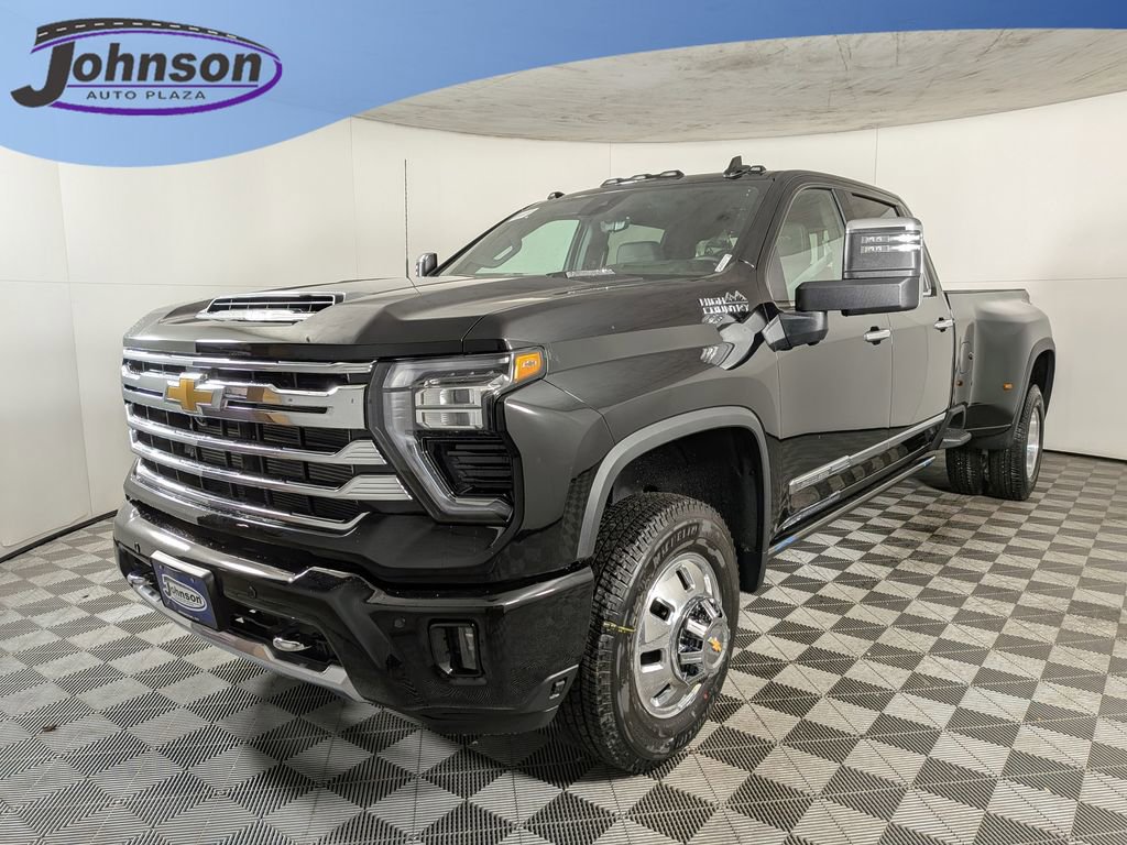 Johnson Auto Plaza is pleased to offer this: 2026 Chevrolet Silverado 3500HD High Country Black 4WD Duramax 6.6L V8 Turbodiesel 10-Speed Automatic10-Speed Automatic, 4WD, Jet Black Leather.Recent Arrival!Visit www.johnsonautoplaza.com for more information. Feel free to browse our inventory online, request more information about vehicles, set up a test drive or inquire about financing.We look forward to serving you! Suspension Package, Up-Level Rear Seat w/Storage Package, 10-Speed Automatic, 4WD, Jet Black Leather, 10-Way Power Driver Seat Adjuster w/Lumbar, 10-Way Power Passenger Seat Adjuster w/Lumbar, 120-Volt Bed Mounted Power Outlet, 120-Volt Interior Power Outlet, 170 Amp Alternator, 4-Wheel Disc Brakes, 6 Rectangular Chromed Tubular Assist Steps, 7 Speakers, ABS brakes, Air Conditioning, Alloy wheels, AM/FM radio: SiriusXM with 360L, Apple CarPlay/Android Auto, Auto High-beam Headlights, Auto-dimming door mirrors, Auto-Dimming Inside Rear-View Mirror, Auto-dimming Rear-View mirror, Automatic temperature control, Bed View Camera w/2 Trailer Camera Provisions, Bluetooth® For Phone, Bodyside moldings, Bose Premium 7-Speaker Sound System, Brake assist, Bumpers: body-color, Chevrolet Connected Access Capable, Chevytec Spray-On Black Bedliner, Chrome Door Handles, Chrome Mirror Caps, Color-Keyed Carpeting Floor Covering, Compass, Compass Located In Instrument Cluster, Deep-Tinted Glass, Delay-off headlights, Driver door bin, Driver Memory, Driver vanity mirror, Dual front impact airbags, Dual front side impact airbags, Durabed Pickup Bed, Electric Rear-Window Defogger, Electronic Stability Control, Emergency communication system, Floor-Mounted Center Console, Front anti-roll bar, Front Bucket Seats, Front Carpeted Floor Mats, Front Center Armrest, Front Chrome Recovery Hooks, Front dual zone A/C, Front fog lights, Front LED Fog Lamps, Front Rain-Sensing Wipers, Front reading lights, Front wheel independent suspension, Fully automatic headlights, Garage door transmitter, Genuine wood console insert, Genuine wood dashboard insert, Genuine wood door panel insert, Heated 2nd Row Outboard Seats, Heated door mirrors, Heated Driver & Front Outboard Passenger Seats, Heated front seats, Heated rear seats, Heated Steering Wheel, Heated steering wheel, Heavy-Duty 80 Amp-Hr Battery, Hitch Guidance w/Hitch View, Illuminated entry, In-Vehicle Trailering App System, Keyless Open & Start, LED Cargo Area Lighting, Low tire pressure warning, Manual Tilt-Wheel/Telescoping Steering Column, Memory seat, Occupant sensing airbag, OnStar Services Capable, Outside temperature display, Overhead airbag, Overhead console, Panic alarm, Passenger door bin, Passenger vanity mirror, Perforated Leather Seating Surfaces, Polished Exhaust Tip, Power Door Locks, Power door mirrors, Power driver seat, Power Front Windows w/Driver Express Up/Down, Power Front Windows w/Passenger Express Up/Down, Power passenger seat, Power Rear Windows w/Express Down, Power Sliding Rear Window w/Defogger, Power steering, Power Tailgate, Power windows, Premium audio system: Chevrolet Infotainment 3 Premium, Push Button Start, Radio: Chevrolet Infotainment 3 Premium System, Rain sensing wipers, Rear Carpeted Floor Mats, Rear Cross Traffic Alert, Rear reading lights, Rear seat center armrest, Rear step bumper, Rear window defroster, Remote keyless entry, Remote Vehicle Starter System, Security system, SiriusXM w/360L Trial Subscription, Speed control, Speed-sensing steering, Split folding rear seat, Standard Tailgate, Steering Wheel Audio Controls, Steering wheel mounted audio controls, Tachometer, Telescoping steering wheel, Tilt steering wheel, Traction control, Trailer Camera Provisions, Trailer Side Blind Zone Alert, Trip computer, Turn signal indicator mirrors, Ultrasonic Front & Rear Park Assist, Unauthorized Entry Theft-Deterrent System, Universal Home Remote, Va All customers may not qualify for all rebates. Price includes: $1500 - Customer