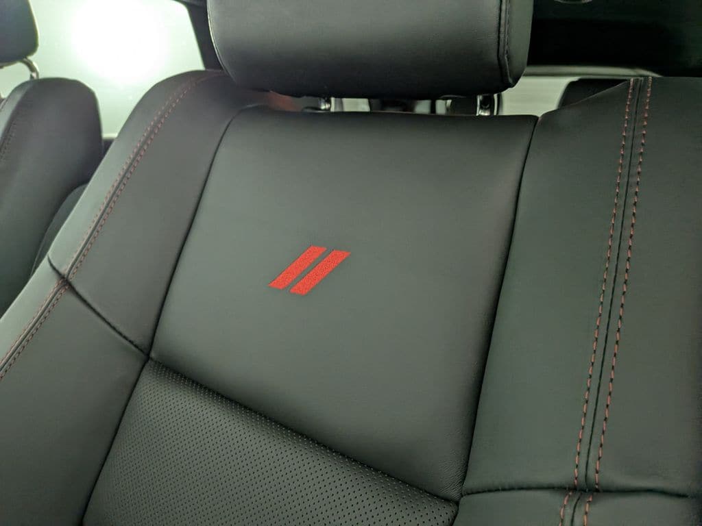 We look forward to serving you! Blacktop Package (Black Roof Rails, Gloss Black Badges, Gloss Black Exterior Mirrors, and Integrated Roof Rail Crossbars), Quick Order Package 22T GT Plus (7 & 4 Pin Wiring Harness, Auto High Beam Headlamp Control, Exterior Mirrors w/Heating Element, Exterior Mirrors w/Supplemental Signals, Power 6x9 Multi-Function Foldaway Mirrors, Radio/Driver Seat/Mirrors Memory, Red Accent Stitching, and Ventilated Front Seats), AWD, 3.09 Rear Axle Ratio, 3rd row seats: split-bench, 4-Wheel Disc Brakes, 9 Speakers, ABS brakes, Air Conditioning, Alloy wheels, AM/FM radio: SiriusXM w/360L, Apple CarPlay/Android Auto, Auto-dimming Rear-View mirror, Auto-leveling suspension, Automatic temperature control, Brake assist, Bumpers: body-color, Cloth Bucket Seats w/Shift Insert, Compass, Delay-off headlights, Driver door bin, Driver vanity mirror, Dual front impact airbags, Dual front side impact airbags, Electronic Stability Control, Emergency communication system: Dodge Connect, Four wheel independent suspension, Front anti-roll bar, Front Bucket Seats, Front Center Armrest w/Storage, Front dual zone A/C, Front License Plate Bracket, Front reading lights, Fully automatic headlights, Garage door transmitter, Heated door mirrors, Heated front seats, Heated steering wheel, Illuminated entry, Knee airbag, Leather steering wheel, Low tire pressure warning, Navigation System, Occupant sensing airbag, Outside temperature display, Overhead airbag, Overhead console, Panic alarm, ParkView Rear Back-Up Camera, Passenger door bin, Passenger vanity mirror, Power door mirrors, Power driver seat, Power Liftgate, Power steering, Power windows, Radio data system, Radio: Uconnect 5 Nav w/10.1" Display, Rain sensing wipers, Rear air conditioning, Rear anti-roll bar, Rear Load Leveling Suspension, Rear reading lights, Rear seat center armrest, Rear window defroster, Rear window wiper, Remote keyless entry, Security system, Speed control, Speed-sensing steering, Speed-Sensitive Wipers, Split folding rear seat, Spoiler, Sport steering wheel, Steering wheel mounted audio controls, Tachometer, Telescoping steering wheel, Tilt steering wheel, Traction control, Trip computer, Variably intermittent wipers, Voltmeter, Wheels: 20" x 8" Black Noise Split 5-Spoke, and Wheels: 20" x 8" Satin Carbon Split 5-SpokE.