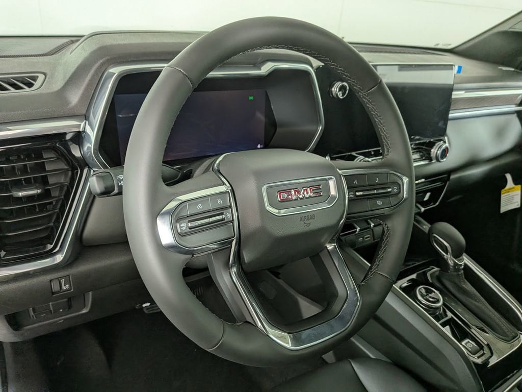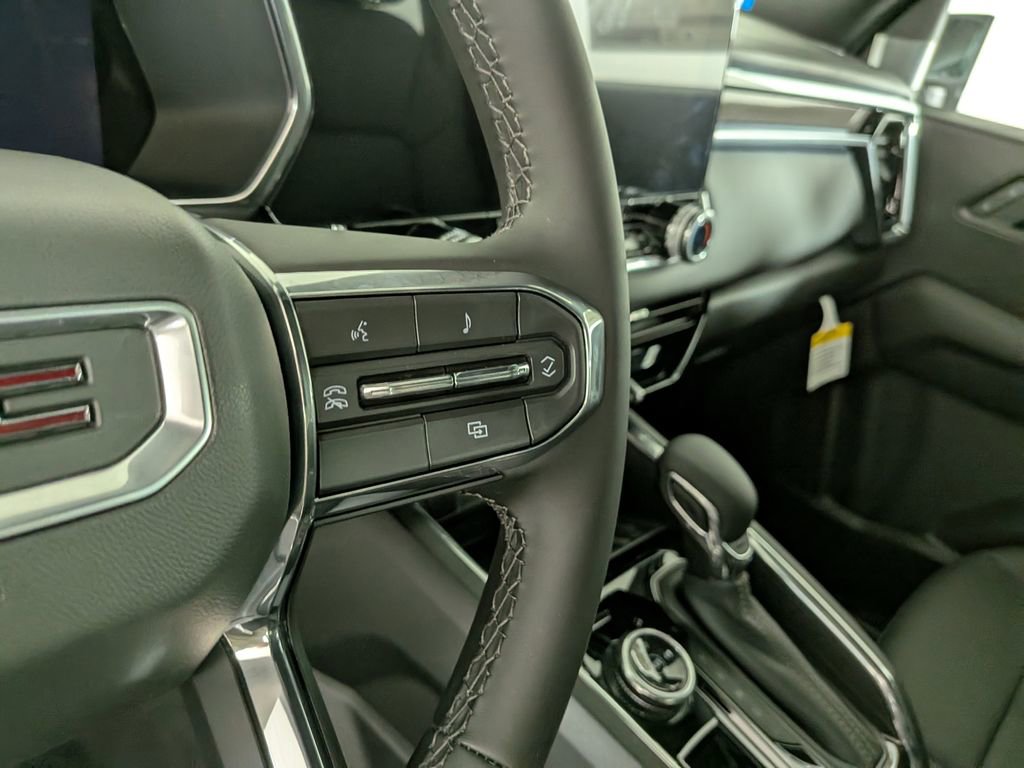 We look forward to serving you! Canyon Safety Plus Package (Blind Zone Steering Assist with Trailering, Rear Cross Traffic Braking, and Ultrasonic Rear Park Assist), 4WD, 1 Rear USB Port in Center Console (Charge-Only), 2 1st Row USB Charge/Data Ports, 3.42 Rear Axle Ratio, 4-Way Manual Front Passenger Seat Adjuster, 4-Wheel Disc Brakes, 6 Speakers, 6-Speaker Audio System Feature, 6-Way Manual Driver Seat Adjuster, ABS brakes, Air Conditioning, Alloy wheels, AM/FM radio: SiriusXM with 360L, Apple CarPlay/Android Auto, Auto High-beam Headlights, Automatic Emergency Braking, Automatic Stop/Start, Brake assist, Bumpers: body-color, Canyon Pro Safety, Cloth Seat Trim, Compass, Delay-off headlights, Driver door bin, Driver Mode Selector, Driver vanity mirror, Dual front impact airbags, Dual front side impact airbags, Electronic Stability Control, Emergency communication system: OnStar, Following Distance Indicator, Forward Collision Alert, Front anti-roll bar, Front Bucket Seats, Front Center Armrest, Front Passenger Seatback Map Pocket, Front Pedestrian and Bicyclist Braking, Front wheel independent suspension, Heated door mirrors, Illuminated entry, IntelliBeam Automatic High Beam on/Off, Lane Keep Assist with Lane Departure Warning, Low tire pressure warning, Navigation System, Occupant sensing airbag, Off-Road Suspension, Outside temperature display, Overhead airbag, Overhead console, Panic alarm, Passenger door bin, Passenger vanity mirror, Power door mirrors, Power steering, Power windows, Radio data system, Radio: 11.3 Diagonal Premium GMC Infotainment System, Rear reading lights, Rear step bumper, Rear window defroster, Remote keyless entry, Security system, SiriusXM with 360L, Speed control, Speed-sensing steering, Split folding rear seat, Steering wheel mounted audio controls, Stop/Start System Disable Button Engine Control, Tachometer, Tilt steering wheel, Traction control, Trip computer, Variably intermittent wipers, Wheels: 18 x 8.5 Gloss Black Finish Aluminum, and Wireless Apple CarPlay/Wireless Android AutO.