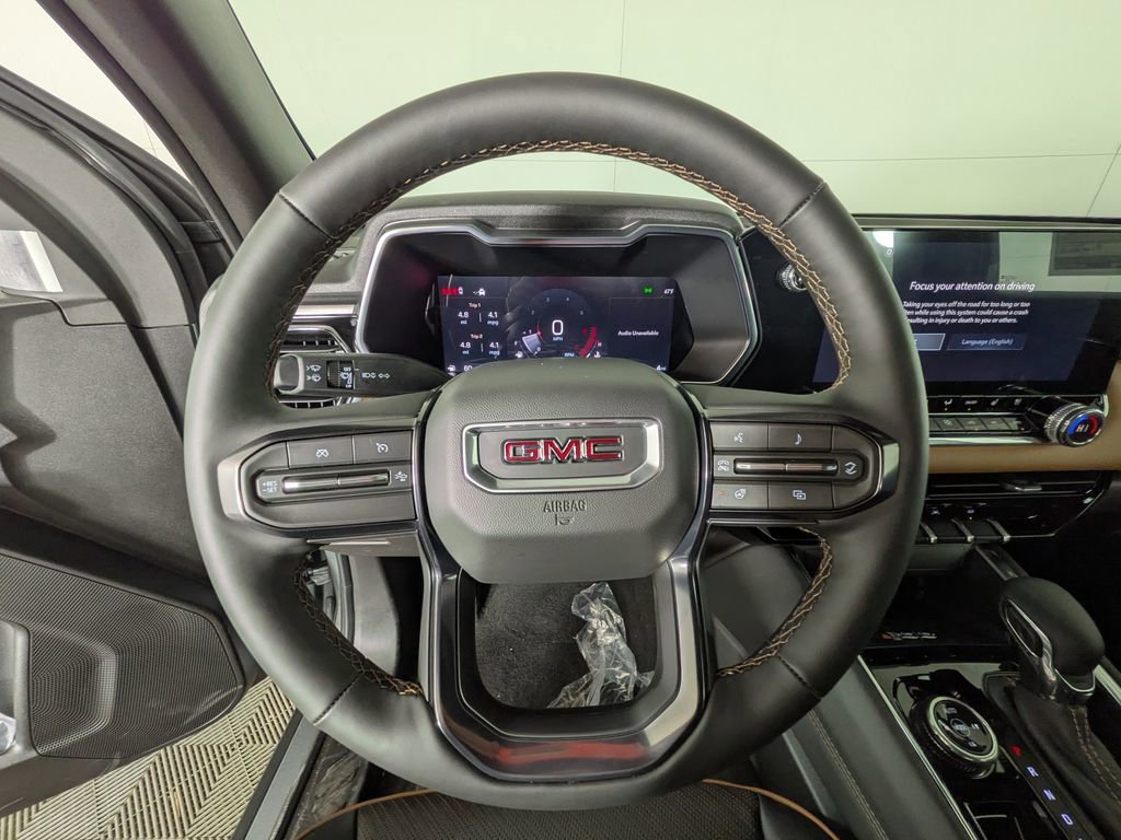 We look forward to serving you! AT4 Premium Package (6-Way Power Passenger Seat Adjuster, Driver and Front Passenger Ventilated Seats, Driver Memory, Driver Seatback Map Pocket, Heated Steering Wheel, Perforated Leather-Appointed Seat Trim, Power Passenger Lumbar Control Seat Adjuster, Rear Center Fold-Down Armrest with 2 Cupholders, and Wireless Phone Charging), Canyon Safety Plus Package (Blind Zone Steering Assist with Trailering, Rear Cross Traffic Braking, and Ultrasonic Rear Park Assist), Preferred Equipment Group 4SG (120-Volt Bed Mounted Power Outlet, 2 Rear USB Ports in Center Console (Charge-Only), 8-Way Power Driver Seat Adjuster, Automatic Emergency Braking, Canyon Pro Safety, Driver and Front Passenger Illuminated Visors, Dual-Zone Automatic Climate Control Air Conditioning, EZ-Lift and Lower Tailgate, Following Distance Indicator, Forward Collision Alert, Front LED Fog Lamps, Front Pedestrian and Bicyclist Braking, Heated Driver and Front Passenger Seats, Inside Rear-View Auto-Dimming Mirror, IntelliBeam Automatic High Beam on/Off, Interior Overhead Courtesy Light with Dual Reading Lamp, Lane Keep Assist with Lane Departure Warning, MultiStow Tailgate Storage Compartment, Power Driver Lumbar Control Seat Adjuster, Rear of Console 120-Volt Power Outlet, Remote Vehicle Starter System, Tailgate Keyed Cylinder Lock, and Til and Telescopic Manual Steering Column), Technology Plus Package (Adaptive Cruise Control, HD Surround Vision, Laminated Windshield Acoustic Glass, Multicolor 6.3 Diagonal Head-Up Display, Power Inner Sliding Glass Sunroof with Manual Shade, Premium 7-Speaker Bose Sound System, and Rear Pedestrian Alert), 4WD, 2 1st Row USB Charge/Data Ports, 3.42 Rear Axle Ratio, 4-Way Manual Front Passenger Seat Adjuster, 4-Wheel Disc Brakes, 6 Speakers, 6-Speaker Audio System Feature, ABS brakes, Air Conditioning, Alloy wheels, AM/FM radio: SiriusXM with 360L, Apple CarPlay/Android Auto, Auto High-beam Headlights, Auto-dimming Rear-View mirror, Automatic Stop/Start, Automatic temperature control, Brake assist, Bumpers: body-color, Cloth/CoreTec Seat Trim, Compass, Delay-off headlights, Driver door bin, Driver Mode Selector, Driver vanity mirror, Dual front impact airbags, Dual front side impact airbags, Electronic Stability Control, Emergency communication system: OnStar, Front anti-roll bar, Front Bucket Seats, Front Center Armrest, Front dual zone A/C, Front fog lights, Front License Plate Kit, Front Passenger Seatback Map Pocket, Front reading lights, Front wheel independent suspension, Heated door mirrors, Heated front seats, Illuminated entry, Low tire pressure warning, Navigation System, Occupant sensing airbag, Off-Road Suspension, Outside temperature display, Overhead airbag, Overhead console, Panic alarm, Passenger door bin, Passenger vanity mirror, Power door mirrors, Power driver seat, Power steering, Power windows, Radio data system, Radio: 11.3 Diagonal Premium GMC Infotainment System, Rear reading lights, Rear step bumper, Rear window defroster, Remote keyless entry, Security system, SiriusXM with 360L, Speed control, Speed-sensing steering, Split folding rear seat, Spray-on Bedliner with GMC Logo, Steering wheel mounted audio controls, Stop/Start System Disable Button Engine Control, Tachometer, Telescoping steering wheel, Tilt steering wheel, Traction control, Trip computer, Variably intermittent wipers, Wheels: 18 x 8.5 Gloss Black Aluminum, and Wireless Apple CarPlay/Wireless Android AutO.