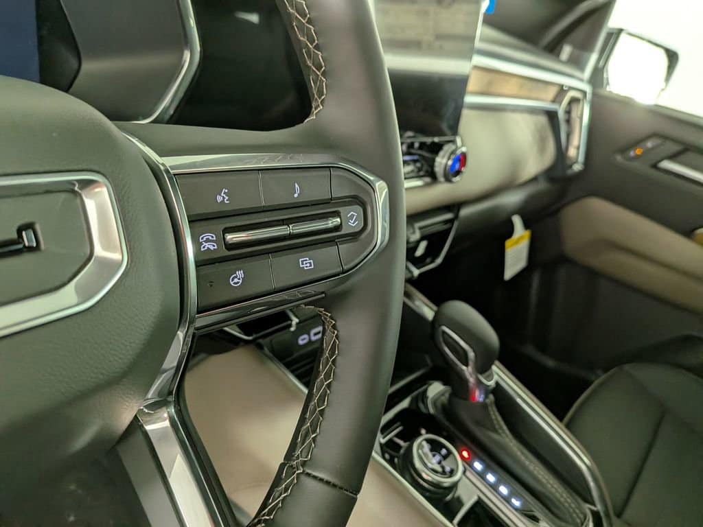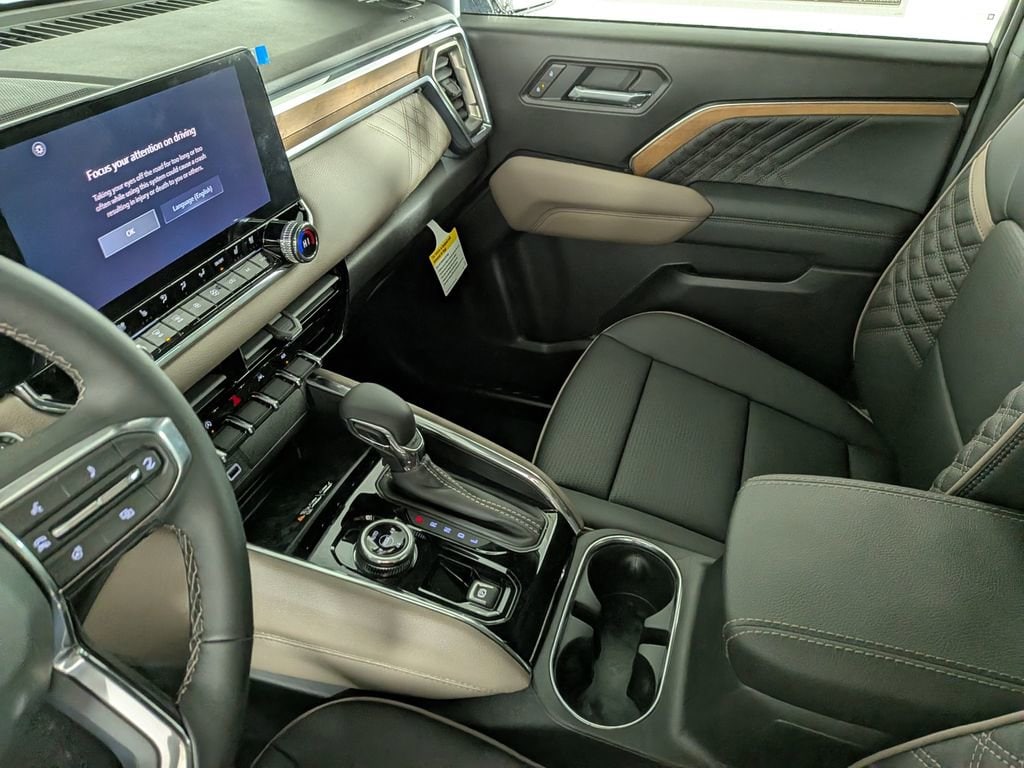 We look forward to serving you! Canyon Safety Plus Package (Blind Zone Steering Assist with Trailering, Rear Cross Traffic Braking, and Ultrasonic Rear Park Assist), 4WD, 120-Volt Bed Mounted Power Outlet, 2 1st Row USB Charge/Data Ports, 2 Rear USB Ports in Center Console (Charge-Only), 3.42 Rear Axle Ratio, 4-Wheel Disc Brakes, 5 Rectangular Chrome Assist Steps, 6-Way Power Passenger Seat Adjuster, 7 Speakers, 8-Way Power Driver Seat Adjuster, ABS brakes, Adaptive Cruise Control, Air Conditioning, Alloy wheels, AM/FM radio: SiriusXM with 360L, Apple CarPlay/Android Auto, Auto High-beam Headlights, Auto-dimming Rear-View mirror, Automatic Emergency Braking, Automatic Stop/Start, Automatic temperature control, Brake assist, Bumpers: body-color, Canyon Pro Safety, Compass, Delay-off headlights, Driver and Front Passenger Illuminated Visors, Driver and Front Passenger Ventilated Seats, Driver door bin, Driver Memory, Driver Mode Selector, Driver Seatback Map Pocket, Driver vanity mirror, Dual front impact airbags, Dual front side impact airbags, Dual-Zone Automatic Climate Control Air Conditioning, Electronic Stability Control, Emergency communication system: OnStar, EZ-Lift and Lower Tailgate, Following Distance Indicator, Forward Collision Alert, Front anti-roll bar, Front Bucket Seats, Front Center Armrest, Front dual zone A/C, Front fog lights, Front LED Fog Lamps, Front Passenger Seatback Map Pocket, Front Pedestrian and Bicyclist Braking, Front reading lights, Front wheel independent suspension, Genuine wood dashboard insert, Genuine wood door panel insert, HD Surround Vision, Heads-Up Display, Heated door mirrors, Heated Driver and Front Passenger Seats, Heated front seats, Heated Steering Wheel, Heated steering wheel, Illuminated entry, Inside Rear-View Auto-Dimming Mirror, IntelliBeam Automatic High Beam on/Off, Interior Overhead Courtesy Light with Dual Reading Lamp, Lane Keep Assist with Lane Departure Warning, Low tire pressure warning, Memory seat, Multicolor 6.3 Diagonal Head-Up Display, MultiStow Tailgate Storage Compartment, Navigation System, Occupant sensing airbag, Off-Road Suspension, Outside temperature display, Overhead airbag, Overhead console, Panic alarm, Passenger door bin, Passenger vanity mirror, Perforated Leather-Appointed Seat Trim, Power door mirrors, Power Driver Lumbar Control Seat Adjuster, Power driver seat, Power Passenger Lumbar Control Seat Adjuster, Power passenger seat, Power steering, Power windows, Premium 7-Speaker Bose Sound System, Radio data system, Radio: 11.3 Diagonal Premium GMC Infotainment System, Rear Center Fold-Down Armrest with 2 Cupholders, Rear of Console 120-Volt Power Outlet, Rear Pedestrian Alert, Rear reading lights, Rear seat center armrest, Rear step bumper, Rear window defroster, Remote keyless entry, Remote Vehicle Starter System, Safety Alert Seat, Security system, SiriusXM with 360L, Speed control, Speed-sensing steering, Split folding rear seat, Spray-on Bedliner with GMC Logo, Steering wheel mounted audio controls, Stop/Start System Disable Button Engine Control, Tachometer, Tailgate Keyed Cylinder Lock, Telescoping steering wheel, Til and Telescopic Manual Steering Column, Tilt steering wheel, Traction control, Trip computer, Variably intermittent wipers, Ventilated front seats, Wheels: 20 x 9 Diamond Cut Dark Gray Aluminum, Wireless Apple CarPlay/Wireless Android Auto, and Wireless Phone CharginG.