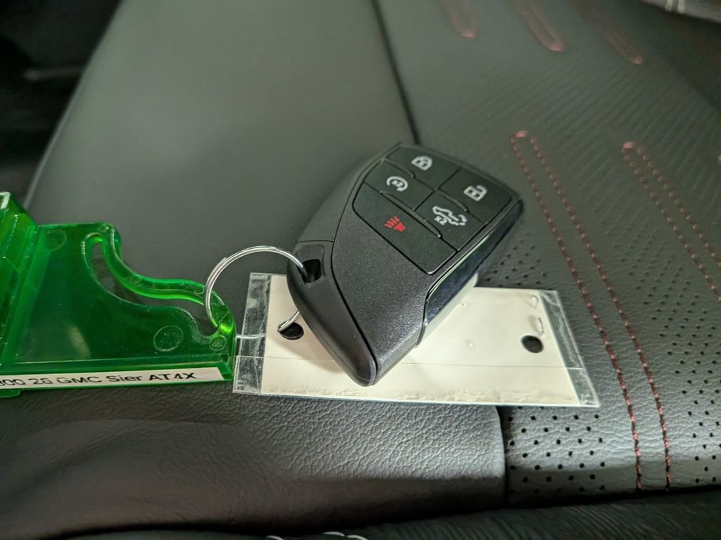 We look forward to serving you! 10-Speed Automatic, 4WD, Obsidian Rush Leather, 12 Speakers, 120-Volt Bed Mounted Power Outlet, 120-Volt Instrument Panel Power Outlet, 16-Way Power Driver Seat Adjuster with Lumbar, 16-Way Power Passenger Seat Adjuster with Lumbar, 2 Charge-Only Rear USB Ports, 2 Charge/Data USB Ports Inside Center Console, 2 USB Ports, 2-Speed Active Transfer Case, 3.73 Rear Axle Ratio, 4-Wheel Disc Brakes, ABS brakes, Air Conditioning, Alloy wheels, AM/FM radio: SiriusXM with 360L, Apple CarPlay/Android Auto, Auto High-beam Headlights, Auto-dimming door mirrors, Auto-dimming Rear-View mirror, Automatic Emergency Braking, Automatic temperature control, Bed View Camera with Two Trailer Camera Provisions, Bose Premium Series 12-Speaker System, Brake assist, Buckle to Drive, Compass, Deep-Tinted Glass, Delay-off headlights, Driver door bin, Driver Memory, Driver vanity mirror, Dual front impact airbags, Dual front side impact airbags, Electric Rear-Window Defogger, Electronic Stability Control, Emergency communication system: OnStar, Floor-Mounted Center Console, Following Distance Indicator, Forward Collision Alert, Front anti-roll bar, Front Bucket Seats, Front Center Armrest, Front dual zone A/C, Front fog lights, Front Pedestrian Braking, Front Premium Floor Liners with Removable Carpet Insert, Front Rain-Sensing Wipers, Front reading lights, Front wheel independent suspension, Full Grain Leather Seat Trim, Fully automatic headlights, Garage door transmitter, Gloss Black Door Handles, Gloss Black Header Grille and Grille Insert Bars, HD Surround Vision, Heads-Up Display, Heated 2nd Row Outboard Seats, Heated door mirrors, Heated Driver and Front Outboard Passenger Seats, Heated front seats, Heated rear seats, Heated steering wheel, Heavy-Duty 80 Amp Battery, Hill Descent Control, Hitch Guidance with Hitch View, Illuminated entry, in-Vehicle Trailering System App, Inside Rearview Auo-Dimming Rear Camera Mirror, IntelliBeam Automatic High Beam on/Off, Keyless Open and Start, Lane Departure Warning System, Leather steering wheel, LED Cargo Area Lighting, LED Smoked Amber Roof Marker Lamps, Low tire pressure warning, Manual Tilt-Wheel/Telescoping Steering Column, Memory seat, Multicolor 15 Diagonal Head-Up Display, Occupant sensing airbag, Off-Road Suspension, OnStar Services Capable, Outside temperature display, Overhead airbag, Overhead console, Panic alarm, Passenger door bin, Passenger vanity mirror, Pickup Box, Power door mirrors, Power driver seat, Power Front Passenger Windows with Express Up/Down, Power moonroof, Power passenger seat, Power Sliding Rear Window with Defogger, Power steering, Power Sunroof, Power windows, Premium audio system: Premium GMC Infotainment System, Push Button Start, Radio: AM/FM Stereo with Premium GMC Infotainment System, Rain sensing wipers, Rear Cross Traffic Alert, Rear Premium Floor Liners with Removable Carpet Insert, Rear reading lights, Rear seat center armrest, Rear step bumper, Rear Wheelhouse Liners, Rear window defroster, Remote keyless entry, Remote Vehicle Starter System, Safety Alert Seat, Security system, SiriusXM with 360L Trial Subscription, Speed control, Speed-sensing steering, Split folding rear seat, Spray-on Pickup Bedliner with GMC Logo, Steering Wheel Audio Controls, Steering wheel mounted audio controls, Tachometer, Telescoping steering wheel, Tilt steering wheel, Traction control, Trailer Cam Provisions and Trailer Viewin All customers may not qualify for a