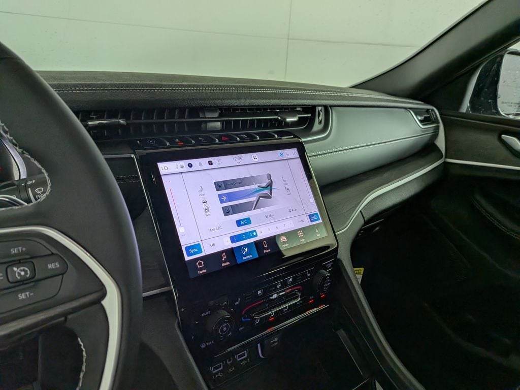 We look forward to serving you! Black Appearance Package (Gloss Black Exterior Accents and Wheels: 20" x 8.5" Gloss Black Painted Aluminum), Luxury Tech Group II (2nd-Row Manual Window Shades, Auto-Dimming Exterior Driver Mirror, Capri Leatherette w/Axis II Seats, Front/Rear Doors & Liftgate w/Passive Entry, Integrated Off-Road Camera, Intersection Collision Assist System, Memory Steering Column, ParkSense Front/Rear Park Assist w/Stop, Power Tilt/Telescope Steering Column, Rain Sensitive Windshield Wipers, Rear Back-Up Camera Washer, Rearview Autodim Digital Display Mirror, Surround View Camera System, Ventilated Front Seats, and Wireless Charging Pad), Quick Order Package 23E (DISC), Trailer Tow Package (220 Amp Alternator, 7 & 4-Pin Wiring Harness, Automatic Headlamp Levelling System, Class IV Receiver Hitch, Heavy-Duty Engine Cooling, Rear Load Levelling Suspension, and Trailer Hitch Zoom), 4WD, 4-Wheel Disc Brakes, 6 Speakers, ABS brakes, Active Noise Control System, Air Conditioning, Alloy wheels, AM/FM radio: SiriusXM with 360L, Anti-whiplash front head restraints, Audio memory, Auto High-beam Headlights, Automatic temperature control, Brake assist, Bumpers: body-color, Capri Leatherette Seats, Compass, Delay-off headlights, Driver door bin, Driver vanity mirror, Dual front impact airbags, Dual front side impact airbags, Dual-Pane Panoramic Sunroof, Electronic Stability Control, Emergency communication system, Four wheel independent suspension, Front anti-roll bar, Front Bucket Seats, Front Center Armrest w/Storage, Front dual zone A/C, Front fog lights, Front License Plate Bracket, Front reading lights, Fully automatic headlights, Garage door transmitter, Heated door mirrors, Heated front seats, Heated rear seats, Heated steering wheel, Illuminated entry, Knee airbag, Low tire pressure warning, Memory seat, Model Year Tracking, Navigation System, Normal Duty Suspension, Occupant sensing airbag, Outside temperature display, Overhead airbag, Overhead console, Panic alarm, ParkView Rear Back-Up Camera, Passenger door bin, Passenger vanity mirror, Power door mirrors, Power driver seat, Power Liftgate, Power passenger seat, Power steering, Power windows, Radio data system, Radio: Uconnect 5 Nav w/10.1" Display, Rear anti-roll bar, Rear reading lights, Rear window defroster, Rear window wiper, Remote keyless entry, Security system, Speed control, Speed-Sensitive Wipers, Split folding rear seat, Spoiler, Steering wheel mounted audio controls, Tachometer, Telescoping steering wheel, Tilt steering wheel, Traction control, Trip computer, Turn signal indicator mirrors, Variably intermittent wipers, Voltmeter, and Wheels: 18" x 8" Polished/Painted AluminuM. All customers may not qualify for all rebates. Price includes: $1750 - 2025  National Retail Bonus Cash . Exp. 11/03/2025 $500 - 2025 National Jeep Monopoly Money Bonus Cash . Exp. 11/03/2025