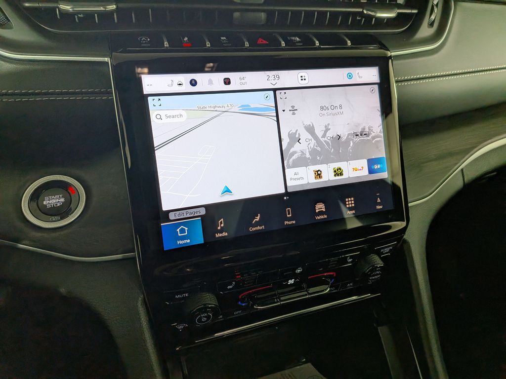 We look forward to serving you! Black Appearance Package (Gloss Black Exterior Accents and Wheels: 20" x 8.5" Gloss Black Painted Aluminum), Quick Order Package 22E, Trailer Tow Package (220 Amp Alternator, 7 & 4 Pin Wiring Harness, Automatic Headlamp Leveling System, Class IV Receiver Hitch, Dual Exhaust Tips, Heavy-Duty Engine Cooling, Rear Load Leveling Suspension, and Trailer Hitch Zoom), 3.45 Rear Axle Ratio, 3rd row seats: split-bench, 4-Wheel Disc Brakes, 6 Speakers, ABS brakes, Active Noise Control System, Air Conditioning, Alloy wheels, AM/FM radio: SiriusXM with 360L, Anti-whiplash front head restraints, Audio memory, Auto High-beam Headlights, Automatic temperature control, Brake assist, Bumpers: body-color, Capri Leatherette Seats, Compass, Delay-off headlights, Driver door bin, Driver vanity mirror, Dual front impact airbags, Dual front side impact airbags, Dual-Pane Panoramic Sunroof, Electronic Stability Control, Emergency communication system, Four wheel independent suspension, Front anti-roll bar, Front Bucket Seats, Front Center Armrest w/Storage, Front dual zone A/C, Front fog lights, Front License Plate Bracket, Front reading lights, Fully automatic headlights, Garage door transmitter, Heated door mirrors, Heated front seats, Heated rear seats, Heated steering wheel, Illuminated entry, Interior Rear Facing Camera, Knee airbag, Low tire pressure warning, Manual Fold Seatbacks, Memory seat, Model Year Tracking, Navigation System, Normal Duty Suspension, Occupant sensing airbag, Outside temperature display, Overhead airbag, Overhead console, Panic alarm, ParkView Rear Back-Up Camera, Passenger door bin, Passenger vanity mirror, Power door mirrors, Power driver seat, Power Liftgate, Power passenger seat, Power steering, Power windows, Radio data system, Radio: Uconnect 5 Nav w/10.1" Display, Rear air conditioning, Rear anti-roll bar, Rear reading lights, Rear window defroster, Rear window wiper, Reclining 3rd row seat, Remote keyless entry, Security system, Speed control, Speed-Sensitive Wipers, Split folding rear seat, Spoiler, Steering wheel mounted audio controls, Tachometer, Telescoping steering wheel, Tilt steering wheel, Traction control, Trip computer, Turn signal indicator mirrors, Variably intermittent wipers, Voltmeter, and Wheels: 18" x 8.0" Polished/Painted AluminuM.