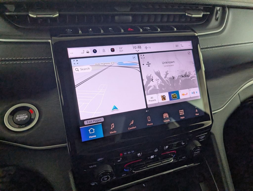 We look forward to serving you! Black Appearance Package (Gloss Black Exterior Accents and Wheels: 20" x 8.5" Gloss Black Painted Aluminum), Luxury Tech Group II (2nd Row Manual Window Shades, Auto-Dimming Exterior Driver Mirror, Capri Leatherette w/Axis II Seats, Integrated Off-Road Camera, Intersection Collision Assist System, Memory Steering Column, ParkSense Front/Rear Park Assist w/Stop, Passive Entry - Front/Rear Doors, Liftgate, Power Tilt/Telescope Steering Column, Rain Sensitive Windshield Wipers, Rear Back Up Camera Washer, Rearview Autodim Digital Display Mirror, Surround View Camera System, Ventilated Front Seats, and Wireless Charging Pad), Quick Order Package 22E, Trailer Tow Package (220 Amp Alternator, 7 & 4 Pin Wiring Harness, Automatic Headlamp Leveling System, Class IV Receiver Hitch, Dual Exhaust Tips, Heavy-Duty Engine Cooling, Rear Load Leveling Suspension, and Trailer Hitch Zoom), 3.45 Rear Axle Ratio, 3rd row seats: split-bench, 4-Wheel Disc Brakes, 6 Speakers, ABS brakes, Active Noise Control System, Air Conditioning, Alloy wheels, AM/FM radio: SiriusXM with 360L, Anti-whiplash front head restraints, Audio memory, Auto High-beam Headlights, Automatic temperature control, Brake assist, Bumpers: body-color, Capri Leatherette Seats, Compass, Delay-off headlights, Driver door bin, Driver vanity mirror, Dual front impact airbags, Dual front side impact airbags, Dual-Pane Panoramic Sunroof, Electronic Stability Control, Emergency communication system, Four wheel independent suspension, Front anti-roll bar, Front Bucket Seats, Front Center Armrest w/Storage, Front dual zone A/C, Front fog lights, Front License Plate Bracket, Front reading lights, Fully automatic headlights, Garage door transmitter, Heated door mirrors, Heated front seats, Heated rear seats, Heated steering wheel, Illuminated entry, Interior Rear Facing Camera, Knee airbag, Low tire pressure warning, Manual Fold Seatbacks, Memory seat, Model Year Tracking, Navigation System, Normal Duty Suspension, Occupant sensing airbag, Outside temperature display, Overhead airbag, Overhead console, Panic alarm, ParkView Rear Back-Up Camera, Passenger door bin, Passenger vanity mirror, Power door mirrors, Power driver seat, Power Liftgate, Power passenger seat, Power steering, Power windows, Radio data system, Radio: Uconnect 5 Nav w/10.1" Display, Rear air conditioning, Rear anti-roll bar, Rear reading lights, Rear window defroster, Rear window wiper, Reclining 3rd row seat, Remote keyless entry, Security system, Speed control, Speed-Sensitive Wipers, Split folding rear seat, Spoiler, Steering wheel mounted audio controls, Tachometer, Telescoping steering wheel, Tilt steering wheel, Traction control, Trip computer, Turn signal indicator mirrors, Variably intermittent wipers, Voltmeter, and Wheels: 18" x 8.0" Polished/Painted AluminuM.