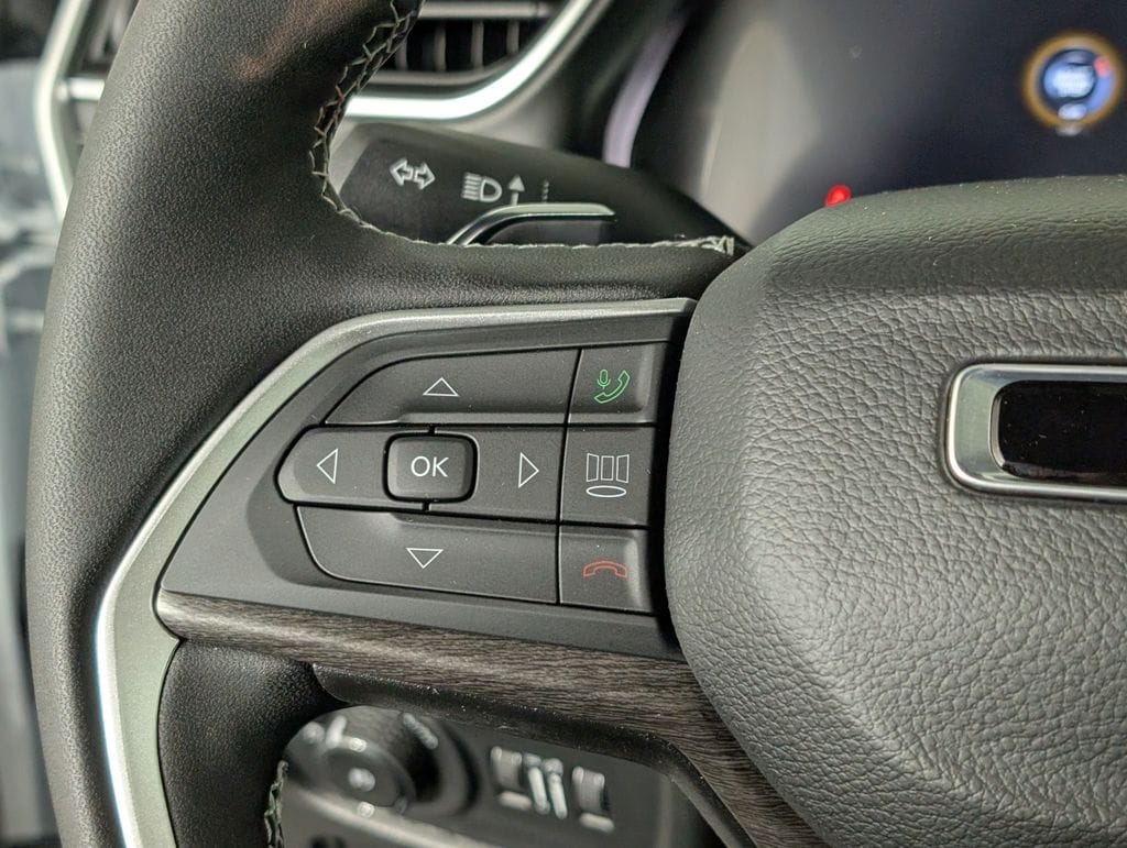 We look forward to serving you! Black Appearance Package (Gloss Black Exterior Accents and Wheels: 20" x 8.5" Gloss Black Painted Aluminum), Quick Order Package 22E, Trailer Tow Package (220 Amp Alternator, 7 and 4 Pin Wiring Harness, Automatic Headlamp Leveling System, Class IV Receiver Hitch, Dual Exhaust Tips, Heavy-Duty Engine Cooling, Rear Load Leveling Suspension, and Trailer Hitch Zoom), 3.45 Rear Axle Ratio, 3rd row seats: split-bench, 4-Wheel Disc Brakes, 6 Speakers, ABS brakes, Active Noise Control System, Air Conditioning, Alloy wheels, AM/FM radio: SiriusXM with 360L, Anti-whiplash front head restraints, Audio memory, Auto High-beam Headlights, Automatic temperature control, Brake assist, Bumpers: body-color, Capri Leatherette Seats, Compass, Delay-off headlights, Driver door bin, Driver vanity mirror, Dual front impact airbags, Dual front side impact airbags, Dual-Pane Panoramic Sunroof, Electronic Stability Control, Emergency communication system, Four wheel independent suspension, Front anti-roll bar, Front Bucket Seats, Front Center Armrest w/Storage, Front dual zone A/C, Front fog lights, Front License Plate Bracket, Front reading lights, Fully automatic headlights, Garage door transmitter, Heated door mirrors, Heated front seats, Heated rear seats, Heated steering wheel, Illuminated entry, Interior Rear Facing Camera, Knee airbag, Low tire pressure warning, Manual Fold Seatbacks, Memory seat, Model Year Tracking, Navigation System, Normal Duty Suspension, Occupant sensing airbag, Outside temperature display, Overhead airbag, Overhead console, Panic alarm, ParkView Rear Back-Up Camera, Passenger door bin, Passenger vanity mirror, Power door mirrors, Power driver seat, Power Liftgate, Power passenger seat, Power steering, Power windows, Radio data system, Radio: Uconnect 5 Nav with 10.1" Display, Rear air conditioning, Rear anti-roll bar, Rear reading lights, Rear window defroster, Rear window wiper, Reclining 3rd row seat, Remote keyless entry, Security system, Speed control, Speed-Sensitive Wipers, Split folding rear seat, Spoiler, Steering wheel mounted audio controls, Tachometer, Telescoping steering wheel, Tilt steering wheel, Traction control, Trip computer, Turn signal indicator mirrors, Variably intermittent wipers, Voltmeter, and Wheels: 18" x 8.0" Polished/Painted AluminuM. All customers may not qualify for all rebates. Price includes: $1500 - 2025 National Stellantis Loyalty Retail Bonus Cash . Exp. 01/05/2026 $2500 - 2025 National Retail Bonus Cash . Exp. 01/05/2026