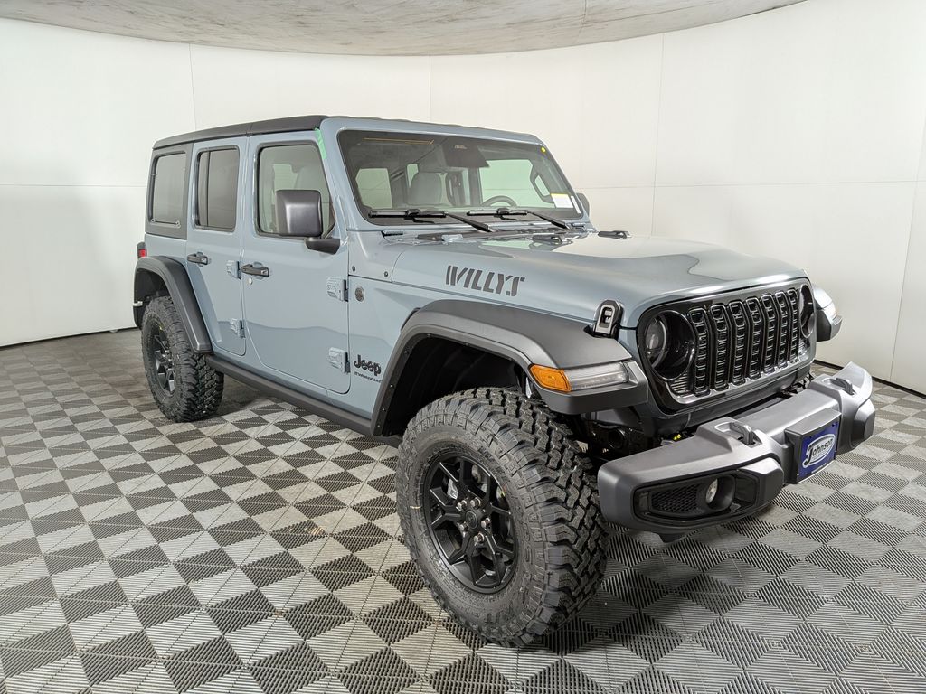 We look forward to serving you! Convenience Group (2-Door Passive Entry, Front Door Locks, Air Conditioning with Auto Temp Control, Air Filtering, Cluster 7.0" TFT Color Display, Emergency/Assistance Call, Heated Front Seats, Heated Steering Wheel, and Universal Garage Door Opener), Quick Order Package 22W Willys (4-Wheel Drive Swing Gate Decal, 7 and 4 Pin Wiring Harness, Advanced Brake Assist, Automatic Headlamps, Auxiliary Switches, Black Grille, Class II Receiver Hitch, Conventional Differential Front Axle, Corning Gorilla Glass, Dana M210 Wide HD Tube Front Axle, Dana M220 Wide Rear Axle, Daytime Running Lamps LED Accents, Deep Tint Sunscreen Windows, E-Locker Rear Axle, Enhanced Adaptive Cruise Control, Front LED Fog Lamps, Full Speed Forward Collision Warning Plus, Injection Molded Black Rear Bumper, LED Premium Reflector Headlamps, Mold in Color Bumper with Gloss Black, Molded in Color Rubicon Highline Flare, MOPAR All-Weather Floor Mats, Off-Road Plus Mode, Power Heated Mirrors, Premium Wrapped Steering Wheel, Security Alarm, Sun Visors with Illuminated Vanity Mirrors, Wheels: 17" x 7.5" Painted Black, Willy's Suspension, and Willys Hood Decal), 12.3" Touchscreen Display, 4-Wheel Disc Brakes, 4G LTE Wi-Fi Hot Spot, 8 Speakers, ABS brakes, Air Conditioning, AM/FM radio: SiriusXM with 360L, Apple CarPlay, Apple CarPlay/Android Auto, Aux Battery, Black 3-Piece Hard Top, Brake assist, Cloth Low-Back Bucket Seats, Compass, Connectivity - US/Canada, Delay-off headlights, Driver door bin, Driver vanity mirror, Dual front impact airbags, Dual front side impact airbags, Electronic Stability Control, For More Info, Call 800-643-2112, Freedom Panel Storage Bag, Front anti-roll bar, Front Bucket Seats, Front Center Armrest w/Storage, Front fog lights, Front reading lights, Google Android Auto, Illuminated entry, Integrated Center Stack Radio, Integrated roll-over protection, Low tire pressure warning, Non-Lock Fuel Cap Without Discriminator, Normal Duty Suspension, Occupant sensing airbag, Outside temperature display, Overhead airbag, Panic alarm, ParkView Rear Back-Up Camera, Passenger door bin, Passenger vanity mirror, Power steering, Power windows, Radio data system, Radio: Uconnect 5 with 12.3" Display, Rear anti-roll bar, Rear reading lights, Rear Window Defroster, Rear Window Wiper/Washer, Remote keyless entry, SiriusXM Radio Service, SiriusXM with 360L, Speed control, Split folding rear seat, Steering wheel mounted audio controls, Stop-Start Dual Battery System, Tachometer, Telescoping steering wheel, Tilt steering wheel, Traction control, Trip computer, Variably intermittent wipers, and Wheels: 17" x 7.5" Black Steel StyleD. All customers may not qualify for all rebates. Price includes: $1500 - 2026 National Select Inventory Bonus Cash . Exp. 01/05/2026 $1500 - 2026 National Stellantis Loyalty Retail Bonus Cash . Exp. 01/05/2026