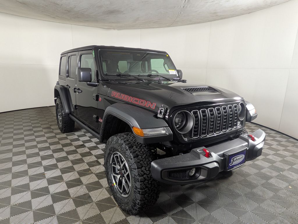 We look forward to serving you! Convenience Group (Heated Front Seats, Heated Steering Wheel, and Universal Garage Door Opener), Quick Order Package 23R Rubicon, Steel Performance Hood Package (Performance Hood), 12.3" Touchscreen Display, 4-Wheel Disc Brakes, 4.10 Rear Axle Ratio, 4G LTE Wi-Fi Hot Spot, 8 Speakers, ABS brakes, Air Conditioning, Alloy wheels, AM/FM radio: SiriusXM with 360L, Apple CarPlay, Apple CarPlay/Android Auto, Automatic temperature control, Aux Battery, Auxiliary Switches, Black 3-Piece Hard Top, Brake assist, Class II Receiver Hitch, Cloth Low-Back Bucket Seats, Compass, Connectivity - US/Canada, Delay-off headlights, Driver door bin, Driver vanity mirror, Dual front impact airbags, Dual front side impact airbags, Electronic Stability Control, Emergency communication system: Jeep Connect, For More Info, Call 800-643-2112, Freedom Panel Storage Bag, Front anti-roll bar, Front Bucket Seats, Front Center Armrest w/Storage, Front dual zone A/C, Front fog lights, Front License Plate Bracket, Front reading lights, Fully automatic headlights, Google Android Auto, Heated door mirrors, Illuminated entry, Integrated Center Stack Radio, Integrated roll-over protection, Low tire pressure warning, MOPAR All-Weather Floor Mats, No Soft Top, Non-Lock Fuel Cap Without Discriminator, Occupant sensing airbag, Outside temperature display, Overhead airbag, Panic alarm, ParkView Rear Back-Up Camera, Passenger door bin, Passenger vanity mirror, Performance Suspension, Power door mirrors, Power steering, Power windows, Radio data system, Radio: Uconnect 5 with 12.3" Display, Rear anti-roll bar, Rear reading lights, Rear Window Defroster, Rear Window Wiper/Washer, Remote keyless entry, Security system, SiriusXM Radio Service, SiriusXM with 360L, Speed control, Split folding rear seat, Steering wheel mounted audio controls, Stop-Start Dual Battery System, Tachometer, Telescoping steering wheel, Tilt steering wheel, Traction control, Trip computer, Variably intermittent wipers, Voltmeter, and Wheels: 17" x 7.5" Machined/Painted BlacK. All customers may not qualify for all rebates. Price includes: $1000 - 2026 National Retail Bonus Cash . Exp. 04/30/2026