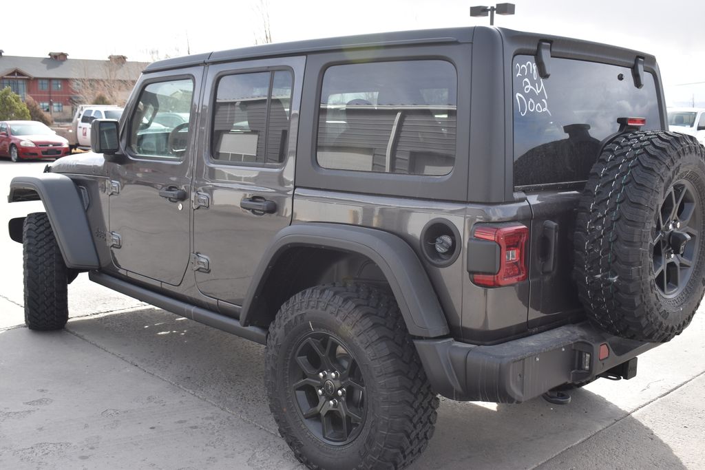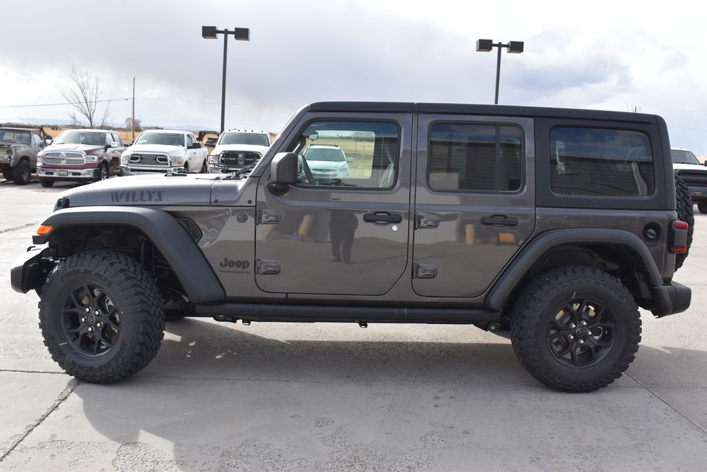 We look forward to serving you! Convenience Group (2-Door Passive Entry, Front Door Locks, Air Conditioning with Auto Temp Control, Air Filtering, Cluster 7.0" TFT Color Display, Emergency/Assistance Call, Heated Front Seats, Heated Steering Wheel, and Universal Garage Door Opener), Quick Order Package 24W Willys (4-Wheel Drive Swing Gate Decal, 7 and 4 Pin Wiring Harness, Advanced Brake Assist, Automatic Headlamps, Auxiliary Switches, Black Grille with Gloss Black Rings, Class II Receiver Hitch, Conventional Differential Front Axle, Corning Gorilla Glass, Dana M210 Wide HD Tube Front Axle, Dana M220 Wide Rear Axle, Daytime Running Lamps LED Accents, Deep Tint Sunscreen Windows, E-Locker Rear Axle, Enhanced Adaptive Cruise Control, Front LED Fog Lamps, Full Speed Forward Collision Warning Plus, Injection Molded Black Rear Bumper, LED Premium Reflector Headlamps, Mold in Color Bumper with Gloss Black, Molded in Color Rubicon Highline Flare, MOPAR All-Weather Floor Mats, Off-Road Plus Mode, Power Heated Mirrors, Premium Wrapped Steering Wheel, Security Alarm, Sun Visors with Illuminated Vanity Mirrors, Wheels: 17" x 7.5" Painted Black, Willy's Suspension, and Willys Hood Decal), Safety Group (Auto High Beam Headlamp Control, Blind Spot and Cross Path Detection, LED Taillamps, and ParkSense Rear Park Assist System), Steel Power Dome Hood Package (Power Dome Dual Vented Hood), Trailer Tow and Auxiliary Switch Group, 12.3" Touchscreen Display, 4-Wheel Disc Brakes, 4G LTE Wi-Fi Hot Spot, 8 Speakers, ABS brakes, Air Conditioning, AM/FM radio: SiriusXM with 360L, Apple CarPlay, Apple CarPlay/Android Auto, Aux Battery, Black 3-Piece Hard Top, Brake assist, Compass, Connectivity - US/Canada, Delay-off headlights, Driver door bin, Driver vanity mirror, Dual front impact airbags, Dual front side impact airbags, Electronic Stability Control, For More Info, Call 800-643-2112, Freedom Panel Storage Bag, Front anti-roll bar, Front Bucket Seats, Front Center Armrest w/Storage, Front fog lights, Front reading lights, Google Android Auto, Illuminated entry, Integrated Center Stack Radio, Integrated roll-over protection, Low tire pressure warning, No Soft Top, Non-Lock Fuel Cap Without Discriminator, Normal Duty Suspension, Occupant sensing airbag, Outside temperature display, Overhead airbag, Panic alarm, ParkView Rear Back-Up Camera, Passenger door bin, Passenger vanity mirror, Power steering, Power windows, Radio data system, Radio: Uconnect 5 with 12.3" Display, Rear anti-roll bar, Rear reading lights, Rear Window Defroster, Rear Window Wiper/Washer, Remote keyless entry, SiriusXM Radio Service, SiriusXM with 360L, Speed control, Split folding rear seat, Steering wheel mounted audio controls, Stop-Start Dual Battery System, Tachometer, Telescoping steering wheel, Tilt steering wheel, Traction control, Trip computer, Variably intermittent wipers, and Wheels: 17" x 7.5" Black Steel StyleD. All customers may not qualify for all rebates. Price includes: $3000 - 2026 National Select Inventory Bonus Cash. Exp. 01/04/2027