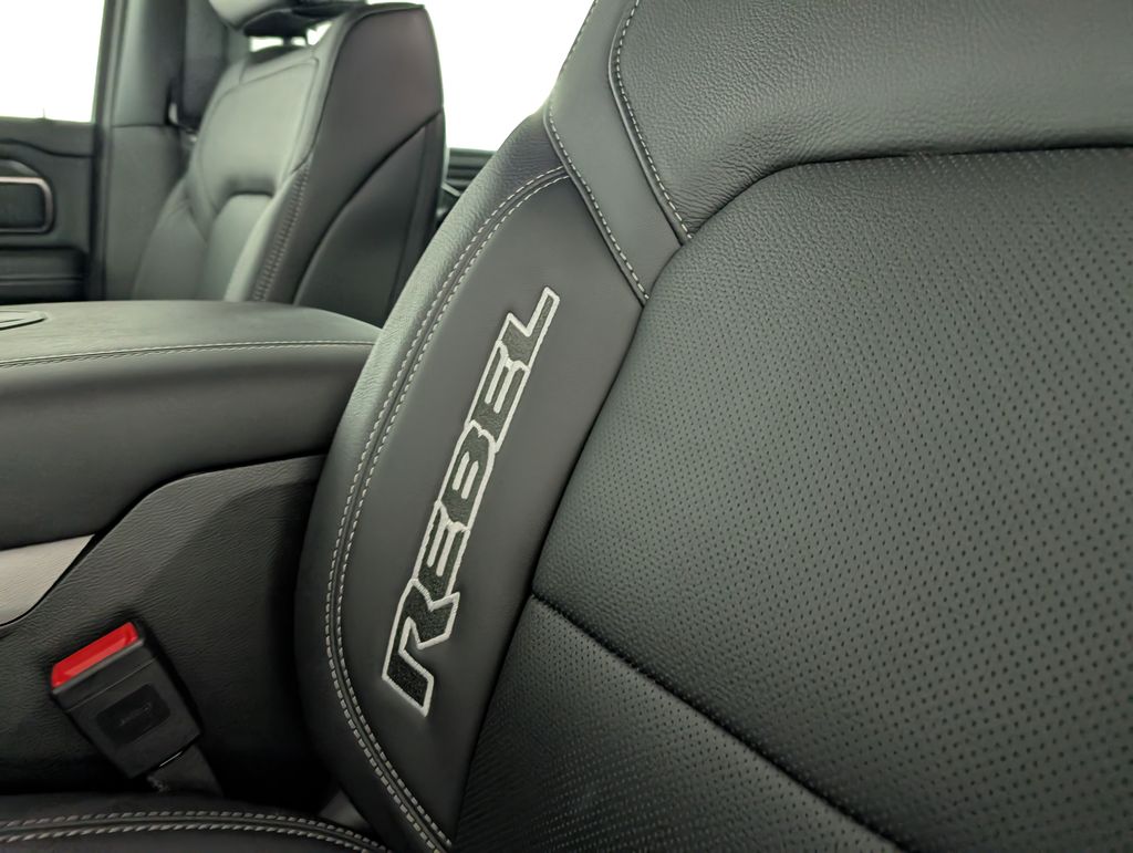 We look forward to serving you! Bed Utility Group (Exterior 115V AC Outlet, MOPAR 4 Adjustable Cargo Tie-Down Hooks, and MOPAR Spray In Bedliner), Quick Order Package 21W Rebel, Rebel Level 2 Equipment Group (115V Auxiliary Rear Power Outlet, 14.4" Touchscreen Display, 2-Door Passive Entry, Front Door Locks, 4G LTE Wi-Fi Hot Spot, Accent Color Door Handles, Accent Color Premium Power Mirrors, Accent Color Tailgate Handle, Apple CarPlay, Auto Power-Folding Mirrors, Auto-Dimming Exterior Driver Mirror, Black Painted Exterior Mirrors Caps, Connected Travel & Traffic Services, Connectivity - US/Canada, Convex Wide-Angle Exterior Mirror Insert, Disassociated Touchscreen Display, Driver Seat Memory, Dual Wireless Charging Pad, Exterior Mirrors Approach Lamps, Exterior Mirrors Courtesy Lamps, Exterior Mirrors w/Heating Element, Exterior Mirrors w/Memory, Exterior Mirrors w/Supplemental Signals, Front Passenger Interactive Display, Global Telematics Box Module (TBM), Google Android Auto, GPS Antenna Input, GPS Navigation, harman/kardon 19 Speaker Premium Sound, HD Radio, Heated Second Row Seats, Integrated Center Stack Radio, Integrated Voice Command w/Bluetooth, Media Hub w/2 Charge Only USBs, Off-Road Information Pages, Power 2-Way Passenger Lumbar Adjust, Power Adjust 8-Way Front Passenger Seat, Power Adjustable Pedals w/Memory, Power Tailgate, Proximity Approach/Departure Lamps, Radio: Uconnect 5 Nav w/14.4" Display, Radio/Driver Seat/Mirrors/Pedals Memory, Rain Sensitive Windshield Wipers, Rear Window Defroster, Security Alarm, SiriusXM Radio Service, SiriusXM w/360L, Smartphone As A Key Capable, and USB Host Flip), 10 Speakers, 3.92 Rear Axle Ratio, 33 Gallon Fuel Tank, 4 Way Front Headrests, 4-Wheel Disc Brakes, ABS brakes, Active Noise Control System, Air Conditioning, Alloy wheels, AM/FM radio: SiriusXM with 360L, Apple CarPlay/Android Auto, Auto High-beam Headlights, Auto-dimming Rear-View mirror, Automatic temperature control, Black Exterior Mirrors, Brake assist, Bucket Seats, Cloth/Vinyl Bucket Seats, Compass, Delay-off headlights, Driver door bin, Driver vanity mirror, Dual front impact airbags, Dual front side impact airbags, Electronic Stability Control, Front anti-roll bar, Front Bucket Seats, Front Center Armrest w/Storage, Front dual zone A/C, Front fog lights, Front License Plate Bracket, Front reading lights, Front Seat Back Map Pockets, Front wheel independent suspension, Full Length Upgraded Floor Console, Fully automatic headlights, Garage door transmitter, Heated door mirrors, Heated Front Seats, Heated front seats, Heated Steering Wheel, Heated steering wheel, Illuminated entry, Leather steering wheel, Low tire pressure warning, Manual Folding Exterior Mirrors, Navigation System, Occupant sensing airbag, Outside temperature display, Overhead airbag, Overhead console, Panic alarm, ParkView Rear Back-Up Camera, Passenger door bin, Passenger vanity mirror, Power 2-Way Driver Lumbar Adjust, Power Adjust 8-Way Driver Seat, Power door mirrors, Power driver seat, Power steering, Power windows, Radio data system, Radio: Uconnect 5 Nav w/12.0" Display, Rear 60/40 Folding Seat, Rear anti-roll bar, Rear seat center armrest, Rear step bumper, Remote keyless entry, Speed control, Split folding rear seat, Steering wheel mounted audio controls, Tachometer, Telescoping steering wheel, Tilt steering wheel, Traction control, Trailer Brake Control, Trip computer, Variably intermittent wipers, Voltmeter, and Wheels: 18" x 8.0" Painted Mid-Gloss BlacK. All customers may not qualify for all rebates. Price includes: $3500 - 2026 National Retail Consumer Cash . Exp. 12/01/2025