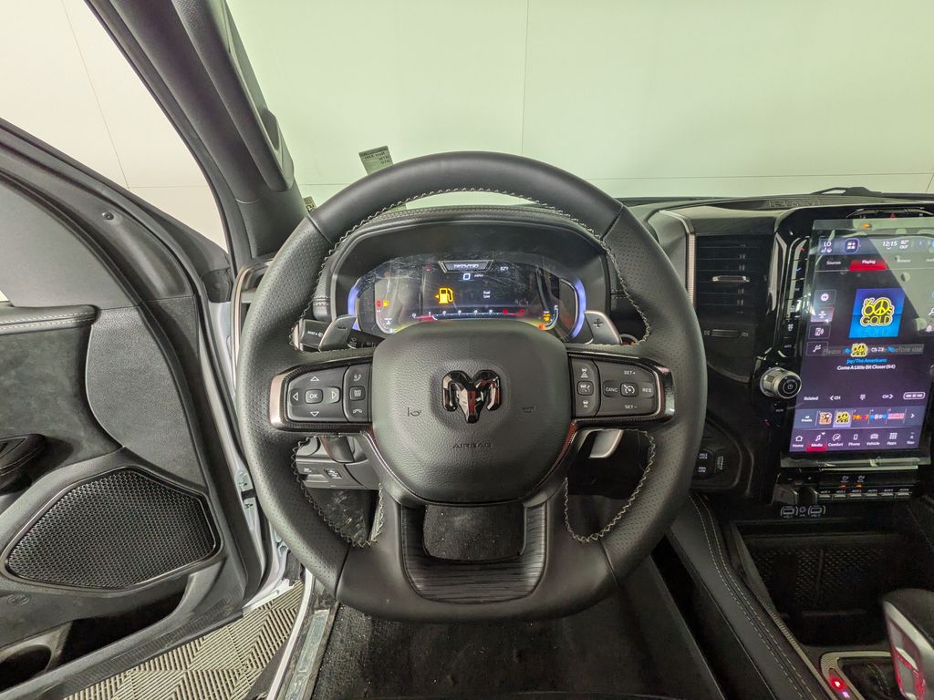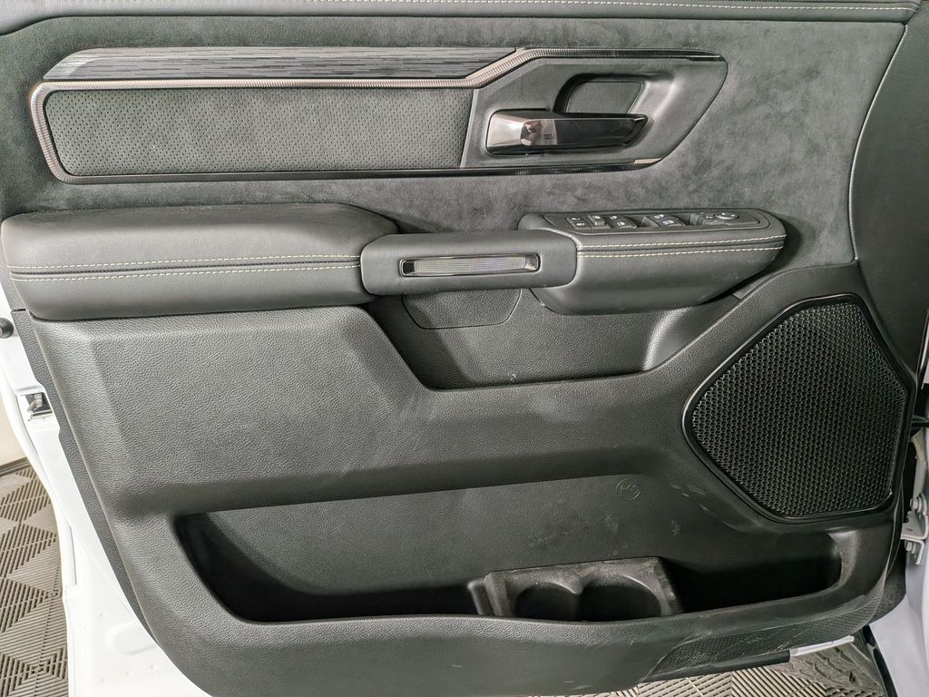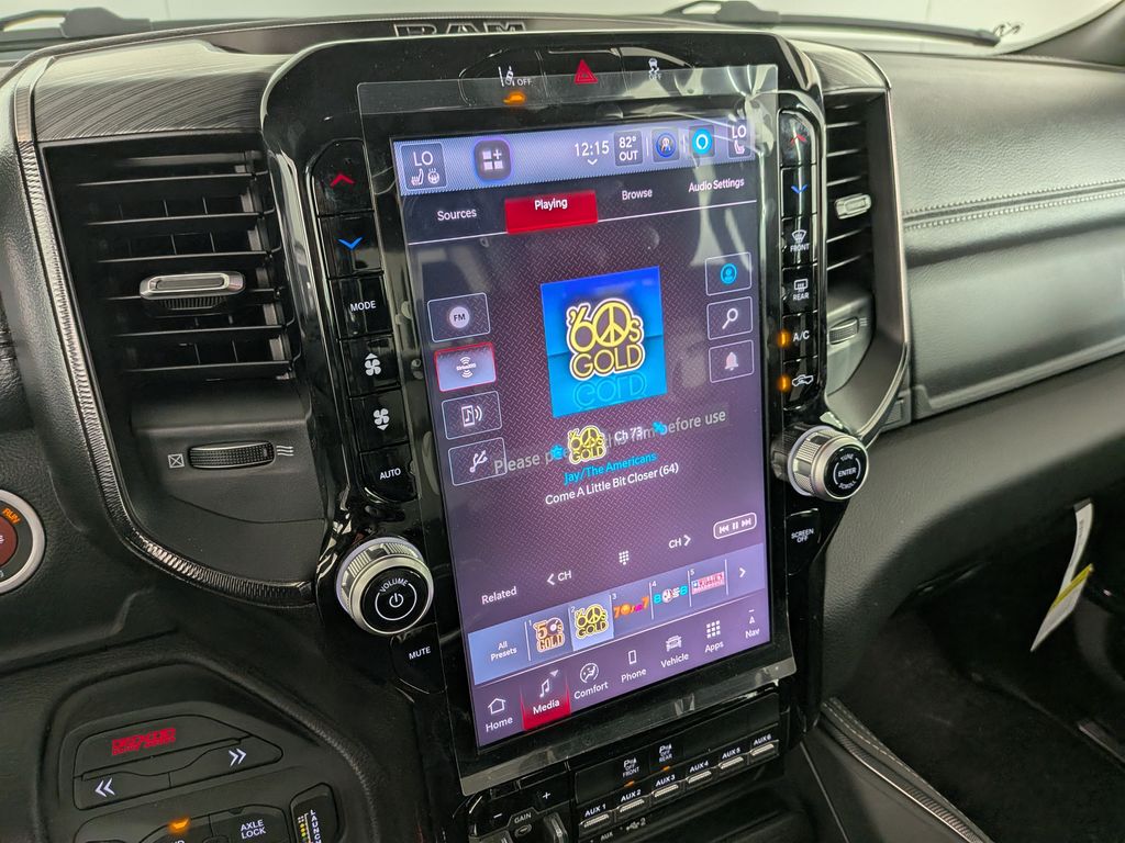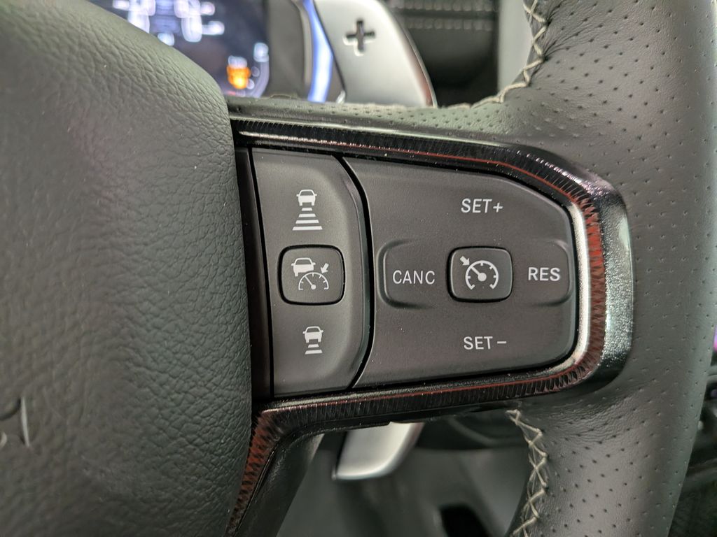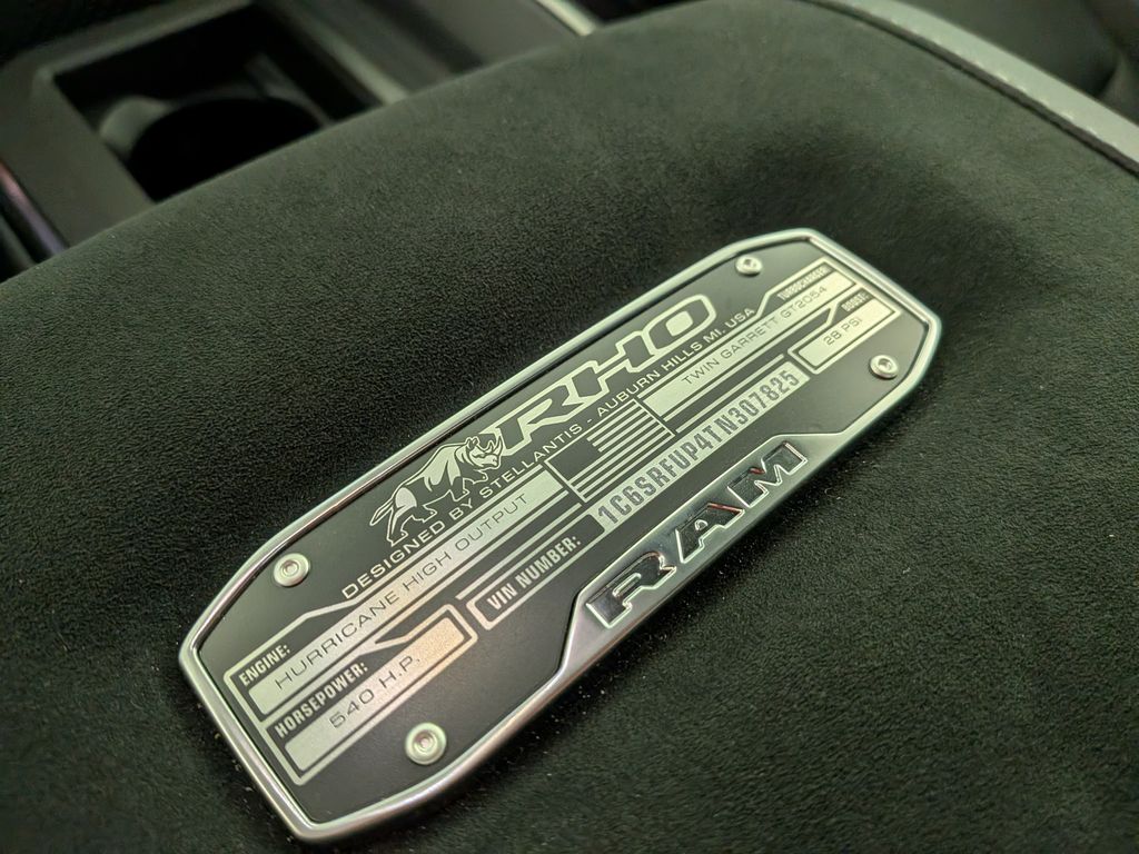 We look forward to serving you! Quick Order Package 22Y RHO, 10 Speakers, 3.92 Rear Axle Ratio, 4-Wheel Disc Brakes, 4G LTE Wi-Fi Hot Spot, ABS brakes, Adaptive suspension, Adjustable pedals, Air Conditioning, Alloy wheels, AM/FM radio, Apple CarPlay/Android Auto, Auto High-beam Headlights, Auto Power-Folding Mirrors, Auto-dimming door mirrors, Auto-Dimming Exterior Driver Mirror, Auto-dimming Rear-View mirror, Automatic temperature control, Brake assist, Compass, Connected Travel and Traffic Services, Connectivity - US/Canada, Delay-off headlights, Disassociated Touchscreen Display, Driver door bin, Driver vanity mirror, Dual front impact airbags, Dual front side impact airbags, Electronic Stability Control, Exterior Mirrors Courtesy Lamps, Exterior Mirrors with Heating Element, Exterior Mirrors with Supplemental Signals, Exterior Parking Camera Rear, Flareside Box, Front anti-roll bar, Front Bucket Seats, Front Center Armrest w/Storage, Front dual zone A/C, Front fog lights, Front License Plate Bracket, Front reading lights, Front wheel independent suspension, Fully automatic headlights, Garage door transmitter, GPS Navigation, HD Radio, Heated door mirrors, Heated front seats, Heated steering wheel, Illuminated entry, Integrated Center Stack Radio, Integrated Voice Command with Bluetooth, Leather Shift Knob, Leather steering wheel, Leather Trimmed Bucket Seats, Low tire pressure warning, Manufacturer's Statement of Origin, MOPAR Off-Road Style Running Boards, Navigation System, Occupant sensing airbag, Outside temperature display, Overhead airbag, Overhead console, Panic alarm, Passenger door bin, Passenger vanity mirror, Power door mirrors, Power driver seat, Power passenger seat, Power steering, Power windows, Radio data system, Radio: Uconnect 5 Navigation with 12.0" Display, Rear reading lights, Rear seat center armrest, Rear step bumper, Rear window defroster, Remote keyless entry, Security system, SiriusXM Radio Service, Speed control, Split folding rear seat, Sport steering wheel, Steering wheel mounted audio controls, Tachometer, Telescoping steering wheel, Tilt steering wheel, Traction control, Trip computer, Turn signal indicator mirrors, USB Host Flip, Variably intermittent wipers, Voltmeter, and Wheels: 18" x 9" Black Paint/Polish AluminuM.