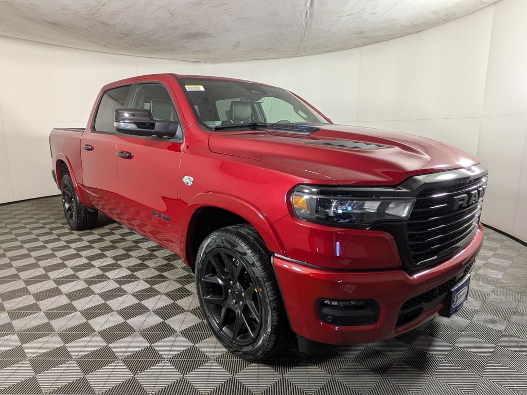 We look forward to serving you! Laramie Level 1 Equipment Group (Rain Sensitive Windshield Wipers and Remote Tailgate Release), Night Edition (Accent Color Door Handles, Accent Color Premium Power Mirrors, Accent Color Tailgate Handle, Anti-Spin Differential Rear Axle, Auto Power-Folding Mirrors, Auto-Dimming Exterior Driver Mirror, Black Exterior Truck Badging, Black Headlamp Bezels, Black Interior Accents, Black Painted Exterior Mirrors Caps, Black Tail Lamp Bezels, Body Color Front Bumper, Body Color Rear Bumper with Step Pads, Convex Wide-Angle Exterior Mirror Insert, Dual Exhaust with Black Tips, Exterior Mirrors Approach Lamps, Exterior Mirrors Courtesy Lamps, Exterior Mirrors with Heating Element, Exterior Mirrors with Memory, Exterior Mirrors with Supplemental Signals, Grille Surround 3 Black Texture 2 Black, Pirelli Brand Tires, Proximity Approach/Departure Lamps, RAM Grille Badge - Black, Sport Performance Hood, and Wheels: 22" x 9" Forged Aluminum), Quick Order Package 27H Laramie, 10 Speakers, 33 Gallon Fuel Tank, 4-Wheel Disc Brakes, 4G LTE Wi-Fi Hot Spot, ABS brakes, Active Noise Control System, Adjustable pedals, Air Conditioning, Alloy wheels, AM/FM radio: SiriusXM with 360L, Apple CarPlay/Android Auto, Audio memory, Auto High-beam Headlights, Auto-dimming door mirrors, Auto-dimming Rear-View mirror, Automatic temperature control, Brake assist, Bumpers: chrome, Chrome Exterior Mirrors, Compass, Connected Travel and Traffic Services, Connectivity - US/Canada, Delay-off headlights, Driver door bin, Driver vanity mirror, Dual front impact airbags, Dual front side impact airbags, Electronic Stability Control, Front anti-roll bar, Front Bucket Seats, Front Center Armrest w/Storage, Front dual zone A/C, Front fog lights, Front License Plate Bracket, Front reading lights, Front wheel independent suspension, Fully automatic headlights, Garage door transmitter, GPS Navigation, Heated door mirrors, Heated front seats, Heated rear seats, Heated steering wheel, Illuminated entry, Integrated Center Stack Radio, Integrated Voice Command with Bluetooth, Leather steering wheel, Leather Trimmed Bucket Seats, Low tire pressure warning, Manufacturer's Statement of Origin, Memory seat, MOPAR Front and Rear Rubber Floor Mats, Navigation System, Occupant sensing airbag, Off-Road Information Pages, Outside temperature display, Overhead airbag, Overhead console, Panic alarm, ParkView Rear Back-Up Camera, Passenger door bin, Passenger vanity mirror, Pedal memory, Power door mirrors, Power driver seat, Power passenger seat, Power steering, Power windows, Radio data system, Radio: Uconnect 5 Navigation with 12.0" Display, RAM Grille Badge - Chrome, Rear anti-roll bar, Rear reading lights, Rear seat center armrest, Rear step bumper, Remote keyless entry, Security system, SiriusXM Radio Service, SiriusXM with 360L, Speed control, Split folding rear seat, Steering wheel mounted audio controls, Tachometer, Telescoping steering wheel, Tilt steering wheel, Traction control, Trailer Brake Control, Trip computer, Turn signal indicator mirrors, USB Host Flip, Variably intermittent wipers, Ventilated front seats, Voltmeter, and Wheels: 20" x 9" Premium Paint/PolisH. All customers may not qualify for all rebates. Price includes: $3500 - 2026 National Retail Bonus Cash . Exp. 04/30/2026
