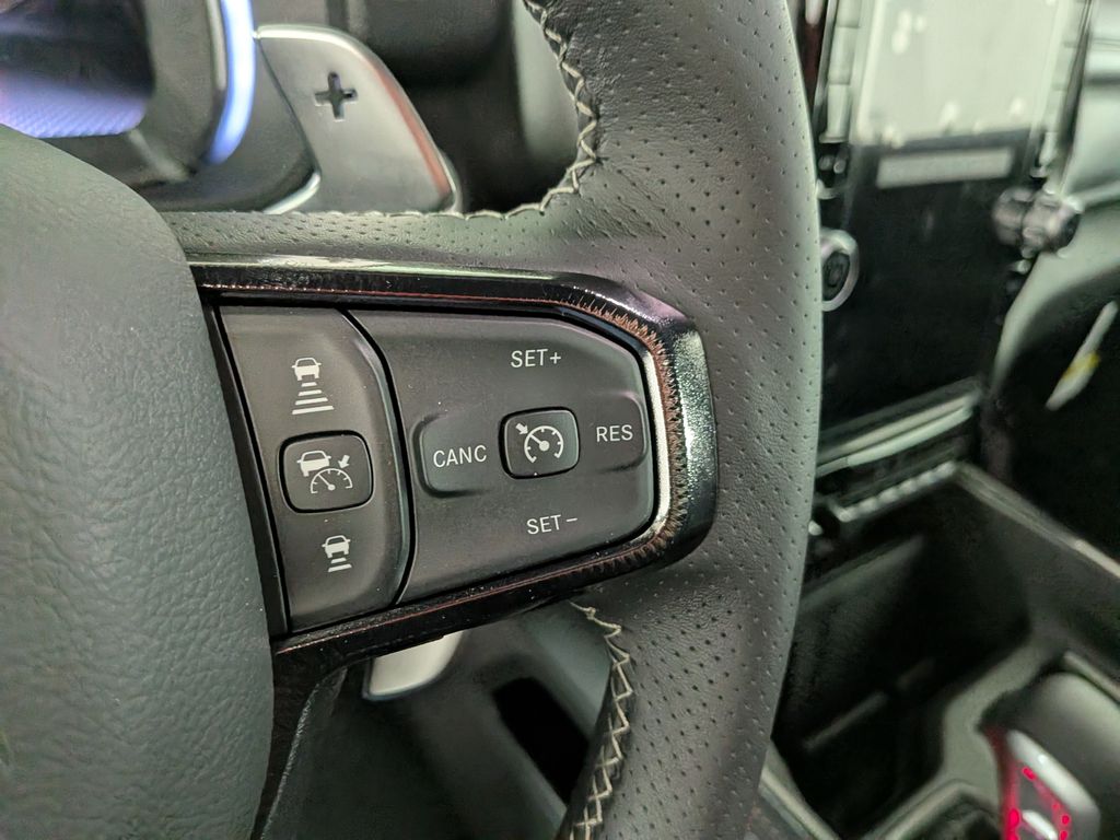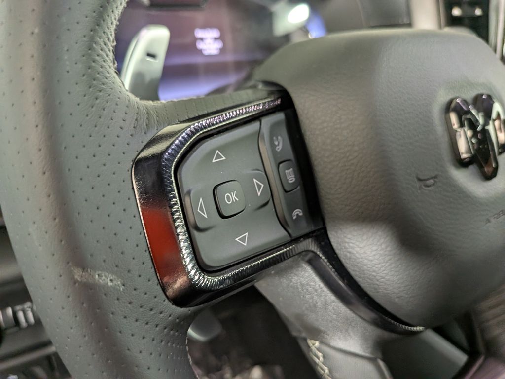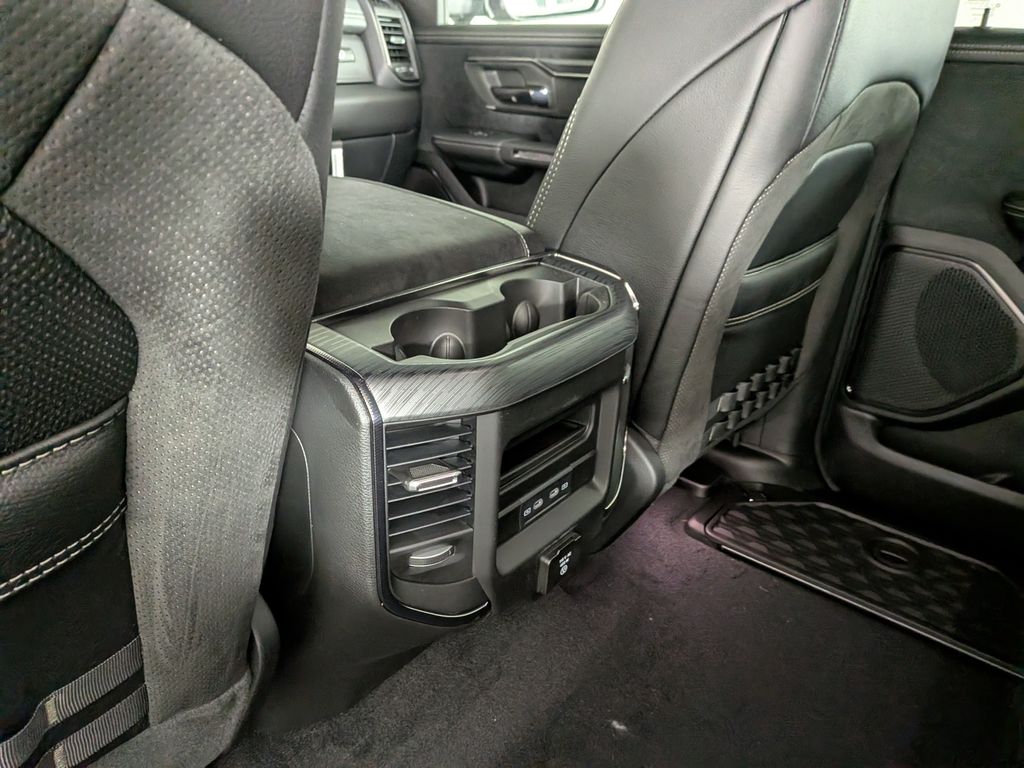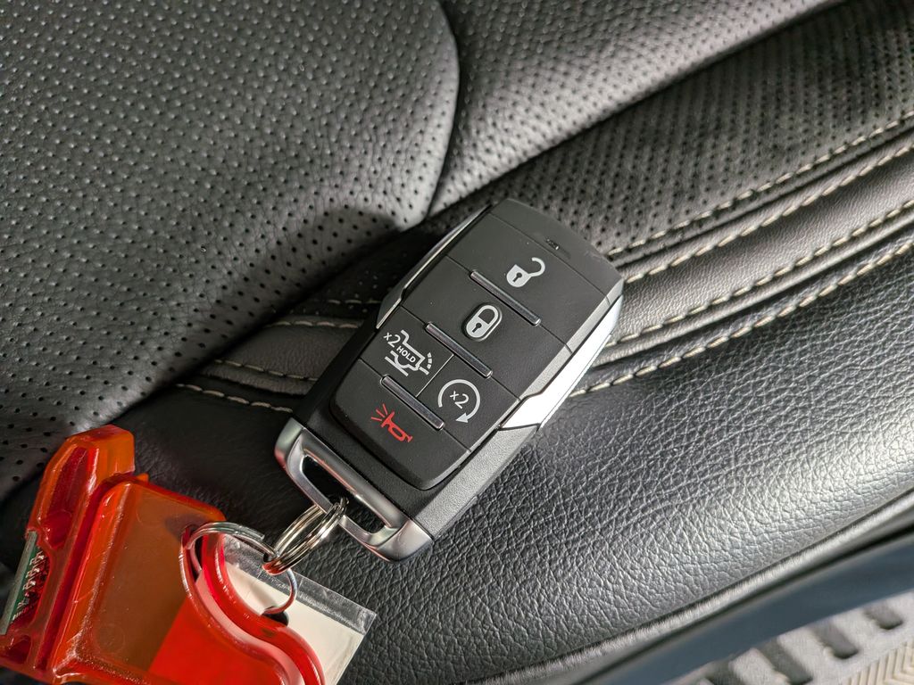 We look forward to serving you! Quick Order Package 22Y RHO, 10 Speakers, 3.92 Rear Axle Ratio, 4-Wheel Disc Brakes, 4G LTE Wi-Fi Hot Spot, ABS brakes, Adaptive suspension, Adjustable pedals, Air Conditioning, Alloy wheels, AM/FM radio, Apple CarPlay/Android Auto, Auto High-beam Headlights, Auto Power-Folding Mirrors, Auto-dimming door mirrors, Auto-Dimming Exterior Driver Mirror, Auto-dimming Rear-View mirror, Automatic temperature control, Brake assist, Compass, Connected Travel and Traffic Services, Connectivity - US/Canada, Delay-off headlights, Disassociated Touchscreen Display, Driver door bin, Driver vanity mirror, Dual front impact airbags, Dual front side impact airbags, Electronic Stability Control, Exterior Mirrors Courtesy Lamps, Exterior Mirrors with Heating Element, Exterior Mirrors with Supplemental Signals, Exterior Parking Camera Rear, Flareside Box, Front anti-roll bar, Front Bucket Seats, Front Center Armrest w/Storage, Front dual zone A/C, Front fog lights, Front License Plate Bracket, Front reading lights, Front wheel independent suspension, Fully automatic headlights, Garage door transmitter, GPS Navigation, HD Radio, Heated door mirrors, Heated front seats, Heated steering wheel, Illuminated entry, Integrated Center Stack Radio, Integrated Voice Command with Bluetooth, Leather Shift Knob, Leather steering wheel, Leather Trimmed Bucket Seats, Low tire pressure warning, Manufacturer's Statement of Origin, MOPAR Off-Road Style Running Boards, Navigation System, Occupant sensing airbag, Outside temperature display, Overhead airbag, Overhead console, Panic alarm, Passenger door bin, Passenger vanity mirror, Power door mirrors, Power driver seat, Power passenger seat, Power steering, Power windows, Radio data system, Radio: Uconnect 5 Navigation with 12.0" Display, Rear reading lights, Rear seat center armrest, Rear step bumper, Rear window defroster, Remote keyless entry, Security system, SiriusXM Radio Service, Speed control, Split folding rear seat, Sport steering wheel, Steering wheel mounted audio controls, Tachometer, Telescoping steering wheel, Tilt steering wheel, Traction control, Trip computer, Turn signal indicator mirrors, USB Host Flip, Variably intermittent wipers, Voltmeter, and Wheels: 18" x 9" Black Paint/Polish AluminuM.