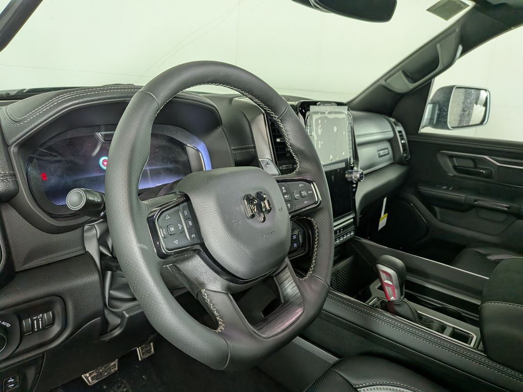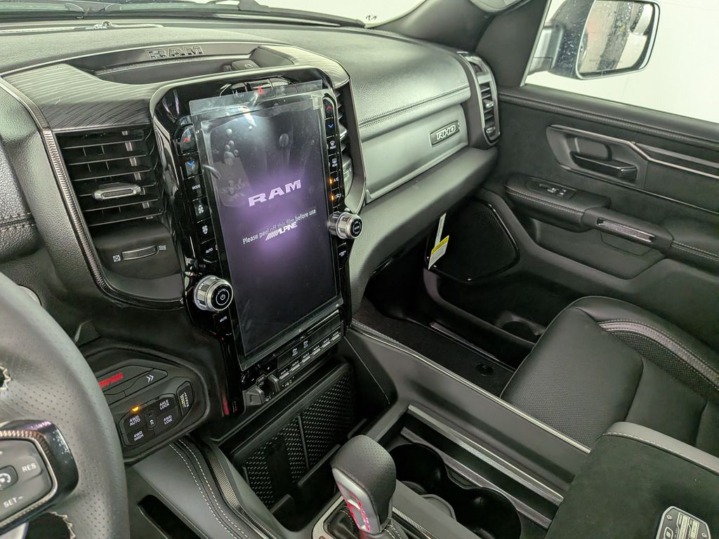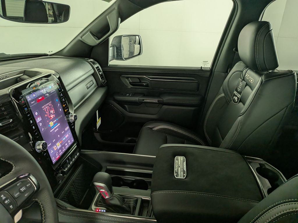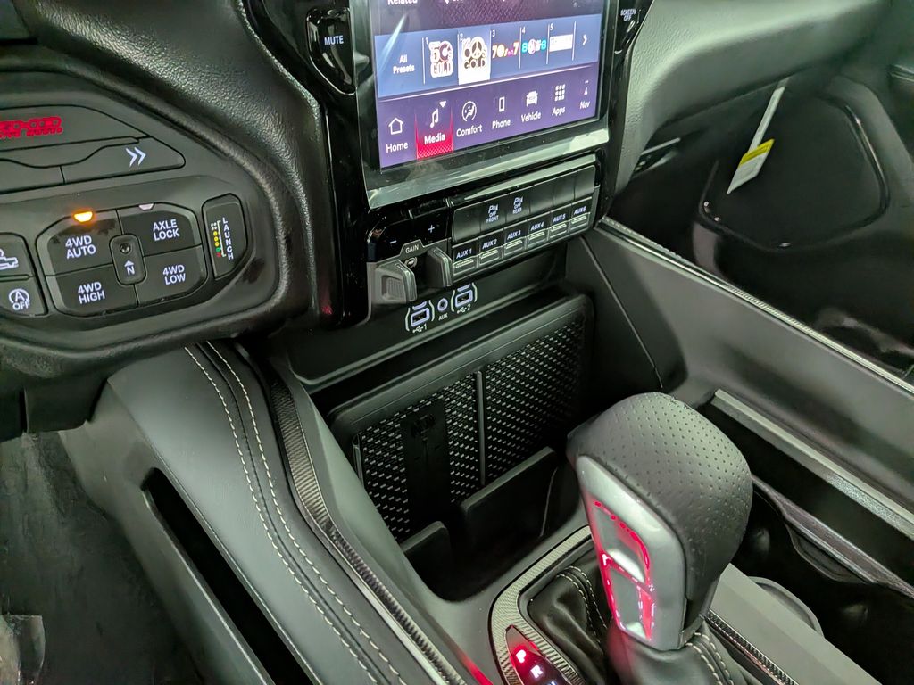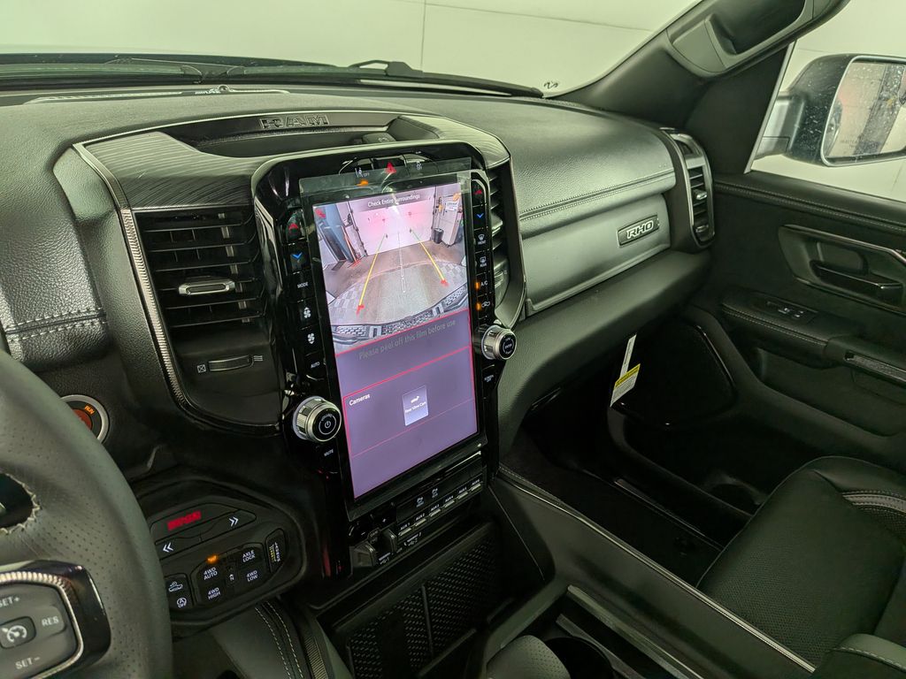 We look forward to serving you! Quick Order Package 22Y RHO, 10 Speakers, 3.92 Rear Axle Ratio, 4-Wheel Disc Brakes, 4G LTE Wi-Fi Hot Spot, ABS brakes, Adaptive suspension, Adjustable pedals, Air Conditioning, Alloy wheels, AM/FM radio, Apple CarPlay/Android Auto, Auto High-beam Headlights, Auto Power-Folding Mirrors, Auto-dimming door mirrors, Auto-Dimming Exterior Driver Mirror, Auto-dimming Rear-View mirror, Automatic temperature control, Brake assist, Compass, Connected Travel and Traffic Services, Connectivity - US/Canada, Delay-off headlights, Disassociated Touchscreen Display, Driver door bin, Driver vanity mirror, Dual front impact airbags, Dual front side impact airbags, Electronic Stability Control, Exterior Mirrors Courtesy Lamps, Exterior Mirrors with Heating Element, Exterior Mirrors with Supplemental Signals, Exterior Parking Camera Rear, Flareside Box, Front anti-roll bar, Front Bucket Seats, Front Center Armrest w/Storage, Front dual zone A/C, Front fog lights, Front License Plate Bracket, Front reading lights, Front wheel independent suspension, Fully automatic headlights, Garage door transmitter, GPS Navigation, HD Radio, Heated door mirrors, Heated front seats, Heated steering wheel, Illuminated entry, Integrated Center Stack Radio, Integrated Voice Command with Bluetooth, Leather Shift Knob, Leather steering wheel, Leather Trimmed Bucket Seats, Low tire pressure warning, Manufacturer's Statement of Origin, MOPAR Off-Road Style Running Boards, Navigation System, Occupant sensing airbag, Outside temperature display, Overhead airbag, Overhead console, Panic alarm, Passenger door bin, Passenger vanity mirror, Power door mirrors, Power driver seat, Power passenger seat, Power steering, Power windows, Radio data system, Radio: Uconnect 5 Navigation with 12.0" Display, Rear reading lights, Rear seat center armrest, Rear step bumper, Rear window defroster, Remote keyless entry, Security system, SiriusXM Radio Service, Speed control, Split folding rear seat, Sport steering wheel, Steering wheel mounted audio controls, Tachometer, Telescoping steering wheel, Tilt steering wheel, Traction control, Trip computer, Turn signal indicator mirrors, USB Host Flip, Variably intermittent wipers, Voltmeter, and Wheels: 18" x 9" Black Paint/Polish AluminuM.
