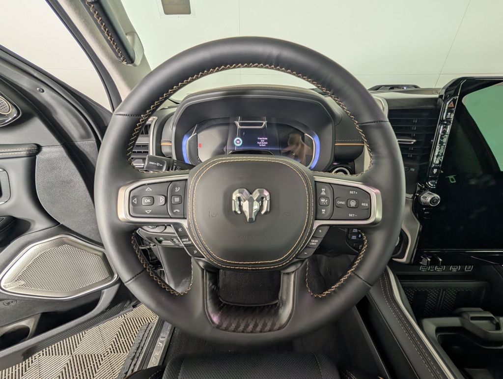 We look forward to serving you! Bed Utility Group (Exterior 115V AC Outlet, MOPAR 4 Adjustable Cargo Tie-Down Hooks, and Truck Bed Cargo Divider), Quick Order Package 22V Tungsten, 12-Way/1-Way Trailer Connector, 3.92 Rear Axle Ratio, 4-Wheel Disc Brakes, ABS brakes, Adjustable pedals, Air Conditioning, Alloy wheels, AM/FM radio, Apple CarPlay/Android Auto, Audio memory, Auto High-beam Headlights, Auto Power-Folding Mirrors, Auto-dimming door mirrors, Auto-Dimming Exterior Driver Mirror, Auto-dimming Rear-View mirror, Auto-leveling suspension, Automatic temperature control, Bodyside moldings, Brake assist, Bumpers: body-color, Chrome Exterior Mirrors, Compass, Delay-off headlights, Driver door bin, Driver vanity mirror, Dual front impact airbags, Dual front side impact airbags, E-Locker Rear Axle, Electronic Stability Control, Exterior Mirrors Courtesy Lamps, Exterior Mirrors w/Heating Element, Exterior Mirrors w/Memory, Exterior Mirrors w/Supplemental Signals, Exterior Parking Camera Rear, Front anti-roll bar, Front Bucket Seats, Front Center Armrest w/Storage, Front dual zone A/C, Front fog lights, Front License Plate Bracket, Front reading lights, Front wheel independent suspension, Fully automatic headlights, Garage door transmitter, Heads-Up Display, Heated door mirrors, Heated front seats, Heated rear seats, Heated steering wheel, Illuminated entry, Leather steering wheel, Low tire pressure warning, Memory seat, Navigation System, Occupant sensing airbag, Outside temperature display, Overhead airbag, Overhead console, Panic alarm, Passenger door bin, Passenger vanity mirror, Pedal memory, Power adjustable front head restraints, Power door mirrors, Power driver seat, Power moonroof, Power passenger seat, Power steering, Power windows, Premium Leather Bucket Seats, Radio data system, Radio: Uconnect 5 Nav w/14.4" Display, Rain sensing wipers, Rear anti-roll bar, Rear reading lights, Rear seat center armrest, Rear step bumper, Rear window defroster, Remote keyless entry, Security system, Speed control, Split folding rear seat, Steering wheel mounted audio controls, Tachometer, Telescoping steering wheel, Tilt steering wheel, Traction control, Trailer Brake Control, Trip computer, Turn signal indicator mirrors, Variably intermittent wipers, Ventilated front seats, Ventilated rear seats, Voltmeter, and Wheels: 22" x 9" Polish/Painted w/InsertS.