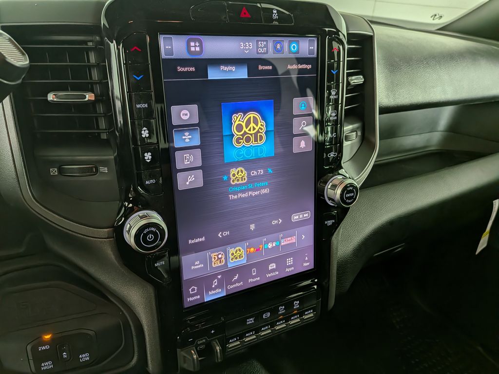 We look forward to serving you! Bed Utility Group (LED Bed Lighting, MOPAR Deployable Bed Step, and MOPAR Spray in Bedliner), Cold Weather Group (Engine Block Heater and MOPAR Winter Front Grille Cover), Quick Order Package 24A Tradesman, Tradesman Level 2 Equipment Group (115-Volt Auxiliary Front Power Outlet, 12" Touchscreen Display, 2 Way Rear Headrest Seat, 4 Way Front Headrests, 40/20/40 Split Bench Seat, 400W Inverter, 4G LTE Wi-Fi Hot Spot, Air Conditioning ATC with Dual Zone Control, Alexa Built-in, Anti-Spin Differential Rear Axle, Apple CarPlay, Auto-Dimming Rear-View Mirror, Black Exterior Mirrors, Bright Front Bumper, Bright Rear Bumper, Carpet Floor Covering, Center Hub, Chrome Grille Surround, Cloth 40/20/40 Bench Seat, Connected Travel and Traffic Services, Connectivity - US/Canada, Disassociated Touchscreen Display, Emergency Vehicle Alert System (EVAS), Exterior 115V AC Outlet, Exterior Mirrors Courtesy Lamps, Exterior Mirrors with Heating Element, Exterior Mirrors with Supplemental Signals, For Details, Visit DriveUconnect.com, For More Info, Call 800-643-2112, Front and Rear Floor Mats, Front Armrest with Cupholders, Global Telematics Box Module, Google Android Auto, GPS Antenna Input, GPS Navigation, HD Radio, Integrated Voice Command with Bluetooth, Manual Adjust 4-Way Driver Seat, Manual Adjust 4-Way Front Passenger Seat, Manual Folding Exterior Mirrors, Manual Telescoping Mirrors, Matte Black Mesh Grille with Chrome, Mirror Running Lights, Mopar Black Tubular Side Steps, Off-Road Info Pages, ParkSense Front/Rear Park Assist System, Power Adjust Mirrors, Power Heated Folding Telescope Mirrors, Power-Adjustable Convex Aux Mirrors, Radio: Uconnect 5 Navigation with 12.0" Display, Rear Folding Seat, Rear Power Sliding Window, Remote USB Port - Charge Only, Selectable Tire Fill Alert, SiriusXM Radio Service, SiriusXM with 360L, Storage Tray, Tinted Acoustic Windshield Glass, Trailer Tow Pages, and Wheels: 18" x 8.0" Steel Chrome Clad), 4-Wheel Disc Brakes, 50 Gallon Fuel Tank, 5th Wheel/Gooseneck Towing Prep Group, 6 Speakers, ABS brakes, Air Conditioning, AM/FM radio: SiriusXM, Apple CarPlay/Android Auto, Black Wheel Center Hub, Brake assist, Compass, Dash Pass Thru Wire Circuits, Delay-off headlights, Delete Deployable Bed Step, Driver door bin, Dual front impact airbags, Dual front side impact airbags, Electronic Stability Control, Front anti-roll bar, Front Center Armrest w/Storage, Front fog lights, Front License Plate Bracket, Front reading lights, Fully automatic headlights, Illuminated entry, Instrument Panel Mounted Auxiliary Switches, Low tire pressure warning, Manufacturer's Statement of Origin, MOPAR Front and Rear Rubber Floor Mats, Occupant sensing airbag, Outside temperature display, Overhead airbag, Overhead console, Panic alarm, ParkView Rear Back-Up Camera, Passenger door bin, Passenger vanity mirror, Power steering, Power windows, Radio data system, Radio: Uconnect 5 with 8.4" Display, Rear anti-roll bar, Rear step bumper, Rear window defroster, Remote keyless entry, Speed control, Tachometer, Tilt steering wheel, Traction control, Variably intermittent wipers, Voltmeter, and Wheels: 17" x 7.5" Black Steel StyleD. All customers may not qualify for all rebates. Price includes: $1000 - 2026 National Bonus Cash . Exp. 02/02/2026