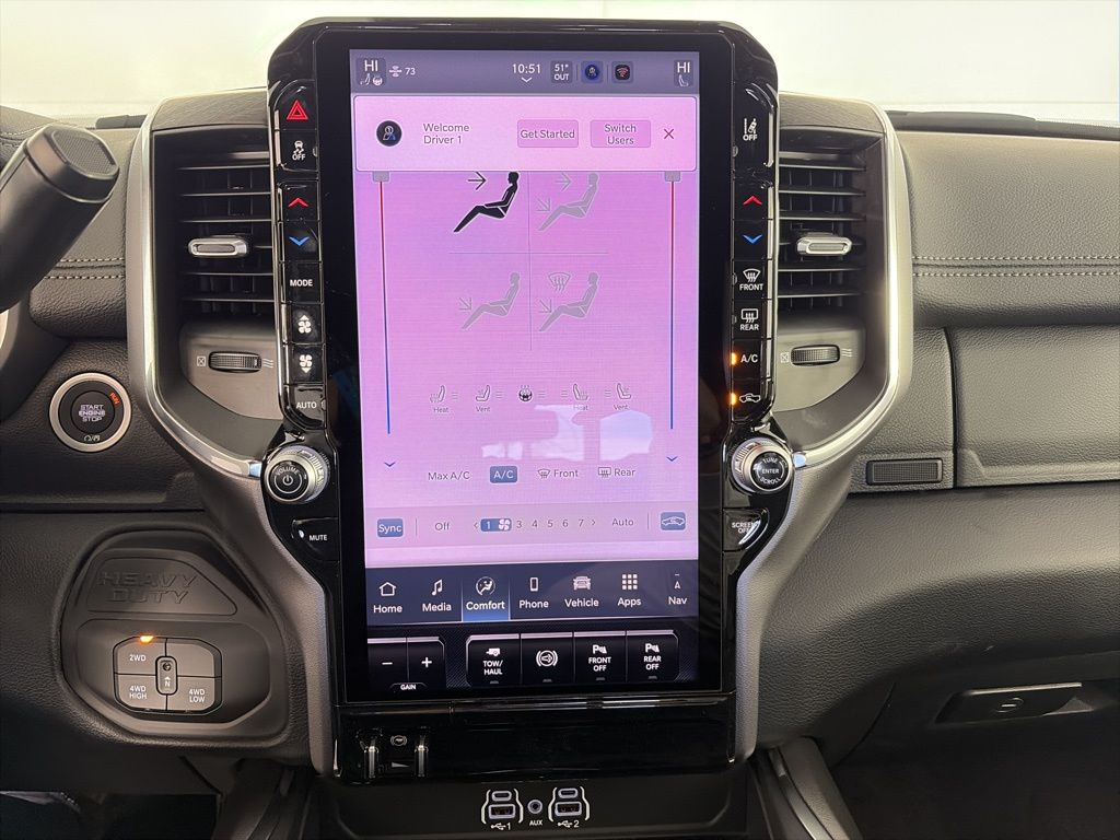 We look forward to serving you! Cold Weather Group (Engine Block Heater and MOPAR Winter Front Grille Cover), Laramie Level 2 Plus Equipment Group (#1 Seat Foam Cushion, 115V Auxiliary Rear Power Outlet, 14.4" Touchscreen Display, 2 Way Rear Headrest Seat, 4 Way Front Headrests, 4G LTE Wi-Fi Hot Spot, Active Lane Management System, Adaptive Steering System, Anti-Spin Differential Rear Axle, Apple CarPlay, Auto Dim Exterior Mirror, Auto High Beam Headlamp Control, Auto Power-Folding Mirrors, Auto-Dimming Exterior Passenger Mirror, Bucket Seats, Chrome Exterior Mirrors, Connectivity - US/Canada, Disassociated Touchscreen Display, Drowsy Driver Detection, Dual Wireless Charging Pad, Emergency Vehicle Alert System (EVAS), Exterior Mirrors Courtesy Lamps, Folding Flat Load Floor Storage, For Details, Visit DriveUconnect.com, For More Info, Call 800-643-2112, Front Seat Back Map Pockets, Full Length Upgraded Floor Console, Google Android Auto, GPS Antenna Input, GPS Navigation, HD Radio, Heated Front Seats, Heated Steering Wheel, High Back Seats, Leather Trimmed Bucket Seats, LED Bed Lighting, Mirror Running Lights, MOPAR Deployable Bed Step, Off-Road Info Pages, Power 2-Way Driver Lumbar Adjust, Power 2-Way Passenger Lumbar Adjust, Power Adjust 8-Way Driver Seat, Power Adjust 8-Way Front Passenger Seat, Power Adjust Mirrors, Power Deployable Running Boards, Power Telescoping Mirrors, Power-Adjustable Convex Aux Mirrors, Radio/Driver Seat/Mirrors/Pedals Memory, Rain Sensitive Windshield Wipers, Rear 60/40 Folding Seat, Remote Tailgate Release, Selectable Tire Fill Alert, SiriusXM Radio Service, Traffic Sign Recognition, Trailer Tow Pages, and Ventilated Front Seats), Night Edition (Black Exterior Mirrors, Black Exterior Truck Badging, Black Wheel Center Hub, Body Color Grille-Surround, Gloss Black Grille Billets/Accents, Sport Performance Hood, and Wheels: 20" x 8.0" Black Painted Aluminum), Quick Order Package 24H Laramie, Towing Technology Group (Surround View Camera System, Trailer Reverse Guidance, and Trailer Tire Pressure Monitoring System), 10 Speakers, 4-Wheel Disc Brakes, 5th Wheel/Gooseneck Towing Prep Group, ABS brakes, Air Conditioning, Alloy wheels, AM/FM radio: SiriusXM with 360L, Apple CarPlay/Android Auto, Auto-dimming Rear-View mirror, Automatic temperature control, Brake assist, Bumpers: body-color, Clearance Lamps, Compass, Delay-off headlights, Driver door bin, Driver vanity mirror, Dual front impact airbags, Dual front side impact airbags, Electronic Stability Control, Front anti-roll bar, Front Center Armrest w/Storage, Front dual zone A/C, Front fog lights, Front License Plate Bracket, Front reading lights, Fully automatic headlights, Garage door transmitter, Heated door mirrors, Heated front seats, Heated steering wheel, Illuminated entry, Leather Trim 40/20/40 Bench Seat, Low tire pressure warning, Manufacturer's Statement of Origin, Navigation System, Occupant sensing airbag, Outside temperature display, Overhead airbag, Overhead console, Panic alarm, ParkView Rear Back-Up Camera, Passenger door bin, Passenger vanity mirror, Power door mirrors, Power driver seat, Power passenger seat, Power steering, Power Sunroof, Power windows, Radio data system, Rear anti-roll bar, Rear reading lights, Rear seat center armrest, Rear step bumper, Rear window defroster, Remote keyless entry, Security system, Speed control, Split folding rear seat, Steering wheel mounted audio controls, Tachometer, Tilt steering wheel, Traction control, Trip computer, Turn signal indicator mirrors, Variably intermittent wipe All customers may not qualify for all rebates. Price includes: $1000 - 2026 National Bonus Cash . Exp