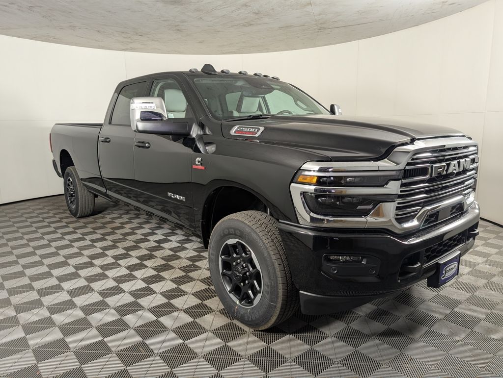 We look forward to serving you! Cold Weather Group (Engine Block Heater and MOPAR Winter Front Grille Cover), Laramie Level 1 Plus Equipment Group (#1 Seat Foam Cushion, 115V Auxiliary Rear Power Outlet, 2 Way Rear Headrest Seat, 2nd Row In Floor Storage Bins, 4 Way Front Headrests, Active Lane Management System, Adaptive Steering System, Anti-Spin Differential Rear Axle, Auto Adjust In Reverse Exterior Mirrors, Auto Dim Exterior Mirror, Auto High Beam Headlamp Control, Auto Power-Folding Mirrors, Auto-Dimming Exterior Passenger Mirror, Bucket Seats, Chrome Exterior Mirrors, CTR Stop Lamp w/Cargo View Camera, Drowsy Driver Detection, Dual Wireless Charging Pad, Exterior Mirrors Courtesy Lamps, Exterior Mirrors w/Heating Element, Exterior Mirrors w/Memory, Exterior Mirrors w/Supplemental Signals, Foam Bottle Insert (Door Trim Panel), Folding Flat Load Floor Storage, Forward & Reverse Utility Lights, Front Seat Back Map Pockets, Full Length Upgraded Floor Console, Heated Front Seats, Heated Second Row Seats, Heated Steering Wheel, High Back Seats, Leather Trimmed Bucket Seats, LED Bed Lighting, Mirror Running Lights, MOPAR Deployable Bed Step, MOPAR Spray In Bedliner, Power 2-Way Driver Lumbar Adjust, Power 2-Way Passenger Lumbar Adjust, Power Adjust 8-Way Driver Seat, Power Adjust 8-Way Front Passenger Seat, Power Adjust Mirrors, Power Adjustable Pedals w/Memory, Power Heated Fold Telescopic Mirrors w/Memory, Power Telescoping Mirrors, Power-Adjustable Convex Aux Mirrors, Radio/Driver Seat/Mirrors/Pedals Memory, Rain Sensitive Windshield Wipers, Rear 60/40 Folding Seat, Remote Tailgate Release, Traffic Sign Recognition, and Ventilated Front Seats), Quick Order Package 24H Laramie, Towing Technology Group (Surround View Camera System, Trailer Reverse Guidance, and Trailer Tire Pressure Monitoring System), 10 Speakers, 4-Wheel Disc Brakes, 4G LTE Wi-Fi Hot Spot, 5th Wheel/Gooseneck Towing Prep Group, ABS brakes, Air Conditioning, Alexa Built-In, Alloy wheels, AM/FM radio: SiriusXM with 360L, Apple CarPlay, Apple CarPlay/Android Auto, Auto-dimming Rear-View mirror, Automatic temperature control, Black Wheel Center Hub, Brake assist, Bumpers: body-color, Clearance Lamps, Compass, Connected Travel & Traffic Services, Connectivity - US/Canada, Delay-off headlights, Disassociated Touchscreen Display, Driver door bin, Driver vanity mirror, Dual front impact airbags, Dual front side impact airbags, Electronic Stability Control, Emergency Vehicle Alert System (EVAS), For Details, Visit DriveUconnect.com, For More Info, Call 800-643-2112, Front anti-roll bar, Front Center Armrest w/Storage, Front dual zone A/C, Front fog lights, Front License Plate Bracket, Front reading lights, Fully automatic headlights, Garage door transmitter, Global Telematics Box Module (TBM), Google Android Auto, GPS Antenna Input, GPS Navigation, HD Radio, Heated door mirrors, Heated front seats, Heated steering wheel, Illuminated entry, Integrated Voice Command w/Bluetooth, Leather Trim 40/20/40 Bench Seat, Low tire pressure warning, Manufacturer's Statement of Origin, Navigation System, Occupant sensing airbag, Off-Road Info Pages, Outside temperature display, Overhead airbag, Overhead console, Panic alarm, ParkView Rear Back-Up Camera, Passenger door bin, Passenger vanity mirror, Power door mirrors, Power driver seat, Power passenger seat, Power steering, Power windows, Radio data system, Radio: Uconnect 5 Nav w/12.0" Display All customers may not qualify for all rebates. Price includes: $1000 - 2026 National Bonus Cash . Exp. 12/01/2025 $2000 - 2026 National Holiday Select Inventory Bonus Cash.