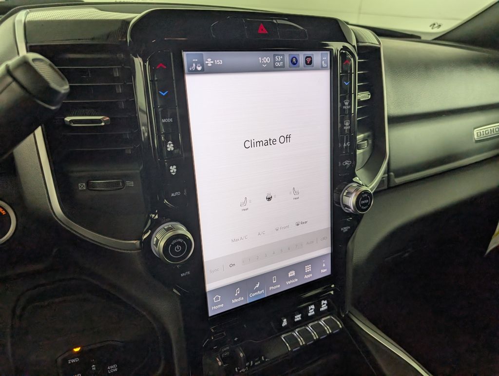 We look forward to serving you! Big Horn Level 1 Plus Equipment Group (12" Touchscreen Display, 2 Way Rear Headrest Seat, 2nd Row In Floor Storage Bins, 4 Way Front Headrests, 40/20/40 Split Bench Seat, 4G LTE Wi-Fi Hot Spot, 9 Alpine Speakers w/Subwoofer, Air Conditioning ATC w/Dual Zone Control, Alexa Built-In, Anti-Spin Differential Rear Axle, Apple CarPlay, Auto Power-Folding Mirrors, Auto-Dimming Rear-View Mirror, Black Exterior Mirrors, Connected Travel & Traffic Services, Connectivity - US/Canada, Disassociated Touchscreen Display, Dual Glove Boxes, Emergency Vehicle Alert System (EVAS), Exterior Mirrors Courtesy Lamps, Exterior Mirrors w/Heating Element, Exterior Mirrors w/Supplemental Signals, Foam Bottle Insert (Door Trim Panel), Folding Flat Load Floor Storage, Footwell Courtesy Lamp, For Details, Visit DriveUconnect.com, For More Info, Call 800-643-2112, Forward & Reverse Utility Lights, Front Armrest w/Cupholders, Front Center Seat Cushion Storage, Front Seat Back Map Pockets, Global Telematics Box Module (TBM), Glove Box Lamp, Google Android Auto, GPS Antenna Input, GPS Navigation, HD Radio, Integrated Voice Command w/Bluetooth, LED Bed Lighting, Locking Lower Glove Box, Luxury Steering Wheel, Manual Adjust 4-Way Front Passenger Seat, Mirror Running Lights, MOPAR Deployable Bed Step, MOPAR Spray In Bedliner, Off-Road Info Pages, Power 2-Way Driver Lumbar Adjust, Power Adjust 8-Way Driver Seat, Power Adjust Mirrors, Power Heated Folding Telescopic Mirrors, Power Telescoping Mirrors, Power-Adjustable Convex Aux Mirrors, Premium Cloth 40/20/40 Bench Seat, Radio: Uconnect 5 Nav w/12.0" Display, Rear 60/40 Folding Seat, Rear Dome w/On/Off Switch Lamp, Remote Start System, Remote USB Port - Charge Only, Selectable Tire Fill Alert, SiriusXM Radio Service, SiriusXM w/360L, Steering Wheel Mounted Audio Controls, Storage Tray, and Trailer Tow Pages), Heated Seats & Wheel Group (Heated Front Seats and Heated Steering Wheel), Night Edition (Black Exterior Truck Badging, Black Interior Accents, Black Wheel Center Hub, Body Color Grille-Surround, Gloss Black Nostrils/Mic Black Grille, Painted Front Bumper, Painted Rear Bumper, and Wheels: 20" x 8.0" Black Painted Aluminum), Quick Order Package 2UZ Big Horn, 3.73 Axle Ratio, 4-Wheel Disc Brakes, 6 Speakers, ABS brakes, Air Conditioning, Alloy wheels, AM/FM radio: SiriusXM, Apple CarPlay/Android Auto, Brake assist, Bumpers: chrome, Center Hub, Clearance Lamps, Cloth 40/20/40 Bench Seat, Compass, Delay-off headlights, Driver door bin, Dual front impact airbags, Dual front side impact airbags, Electronic Stability Control, Front anti-roll bar, Front Center Armrest w/Storage, Front fog lights, Front License Plate Bracket, Front reading lights, Fully automatic headlights, Heated door mirrors, Illuminated entry, Low tire pressure warning, Manual Adjust 4-Way Driver Seat, MOPAR Front & Rear Rubber Floor Mats, Occupant sensing airbag, Outside temperature display, Overhead airbag, Overhead console, Panic alarm, ParkView Rear Back-Up Camera, Passenger door bin, Passenger vanity mirror, Power door mirrors, Power steering, Power windows, Radio data system, Radio: Uconnect 5 w/8.4" Display, Rear anti-roll bar, Rear Folding Seat, Rear seat center armrest, Rear step bumper, Rear window defroster, Remote keyless entry, Security system, Speed control, Tachometer, Tilt steering wheel, Traction control, Trip computer, Turn signal indicator mirrors, Variably intermittent wipers, Voltmeter, and Wheels: 18" x 8.0" Polished AluminuM. All customers may not qualify for all rebates. Price includes: $1000 - 2026 National Bonus Cash . Exp. 12/01/2025
